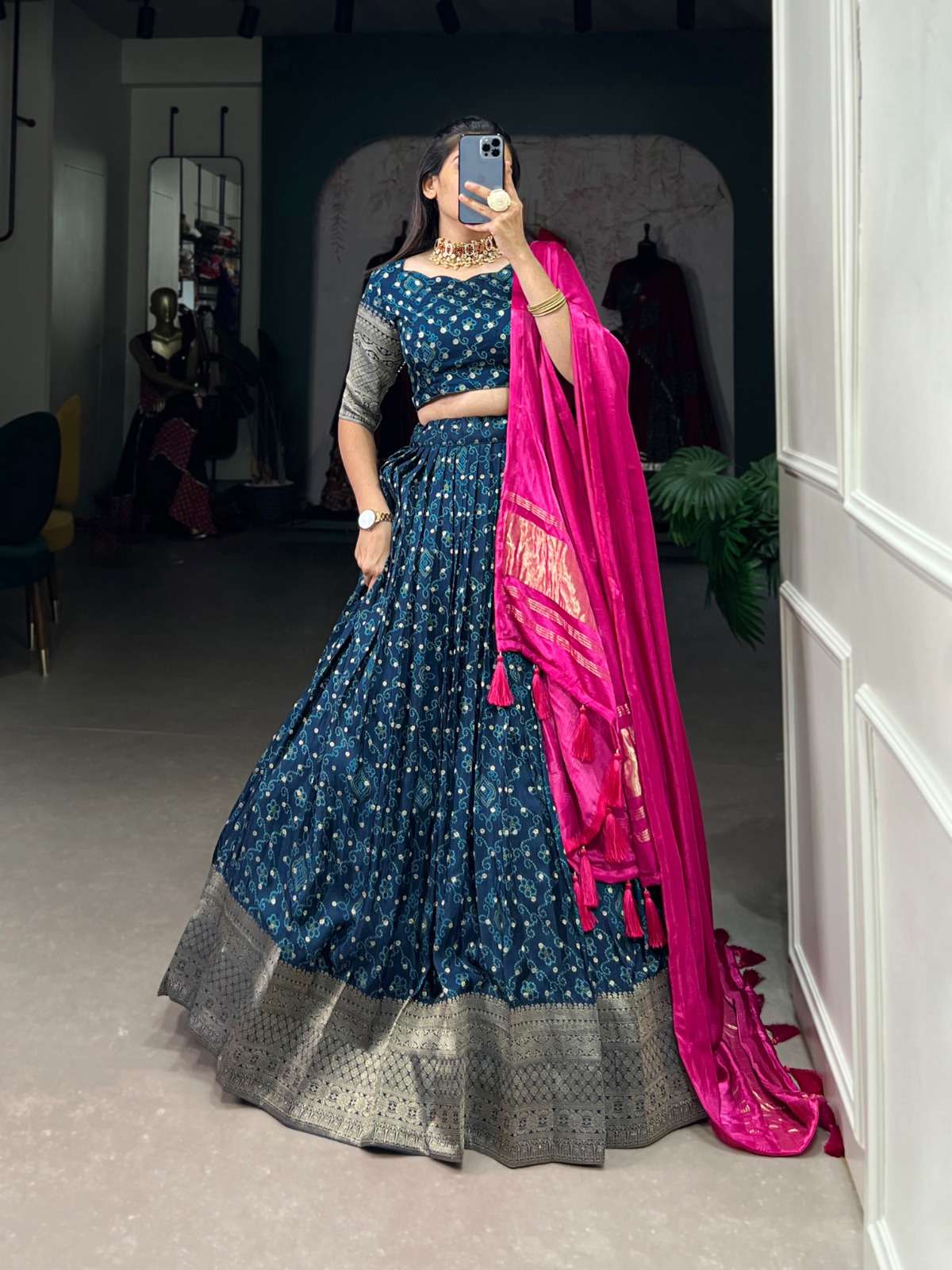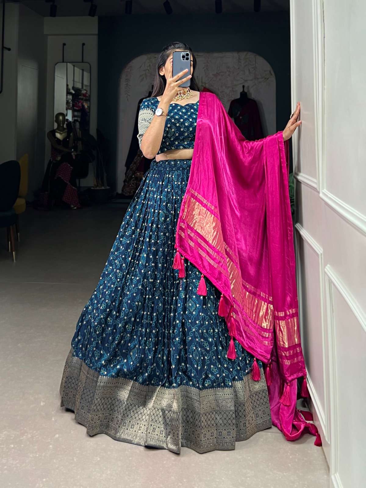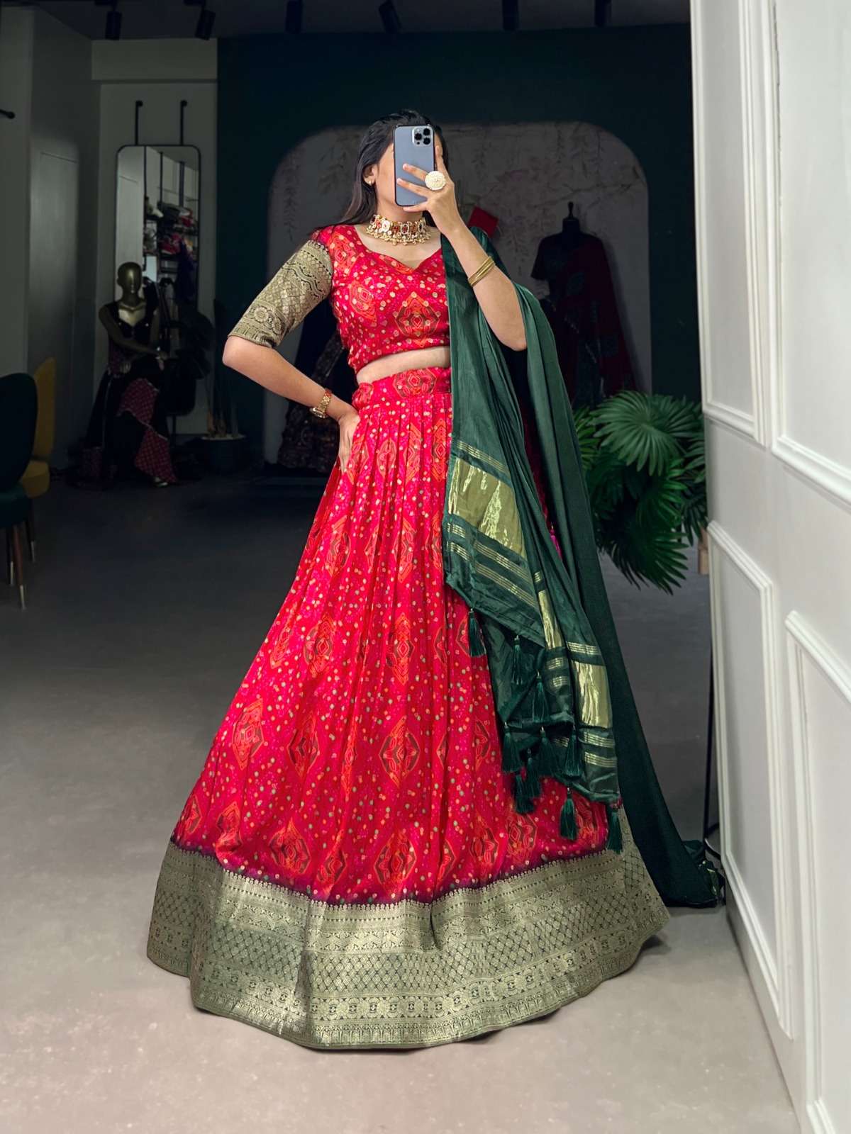 pr lnb1905 traditional print stitched lehenga with unstitch blouse dupatta