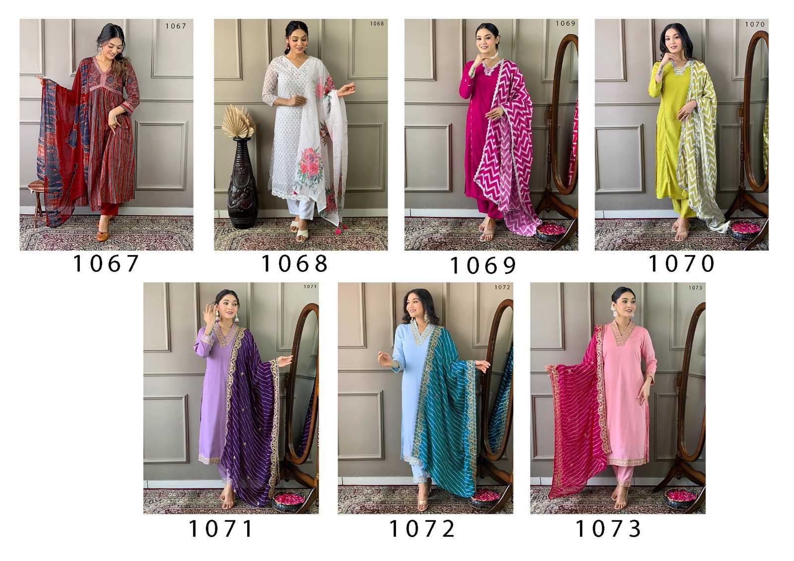Traditional elegance. Catalog Name: - Tanisha vol 11. Top Fabric Details: - Bottom Fabric:- Work: - Size:-M (38)/ L (40), XL (42), XXL (44). Weight: - 1 kg. GST: - 5%. Rate:- |