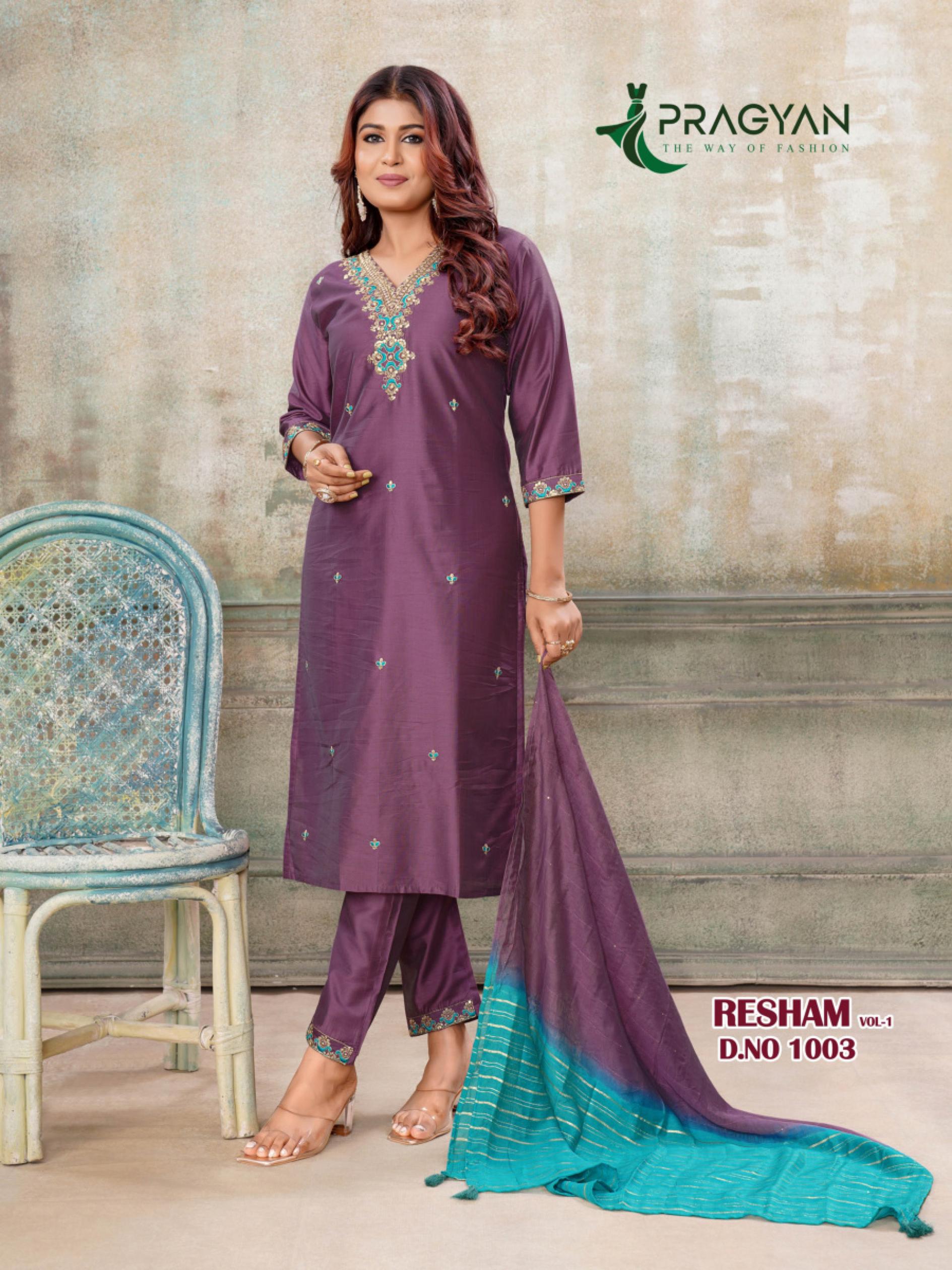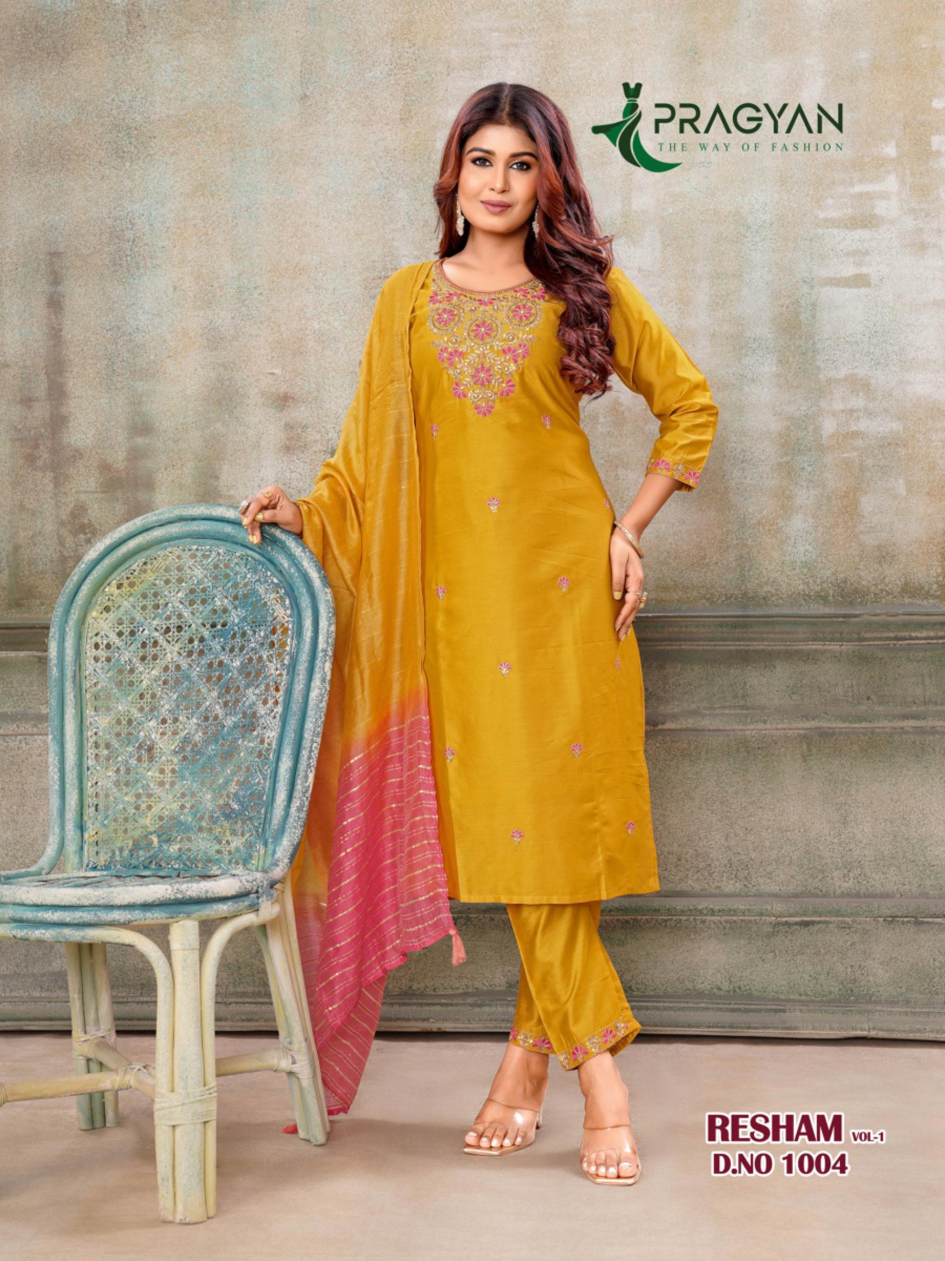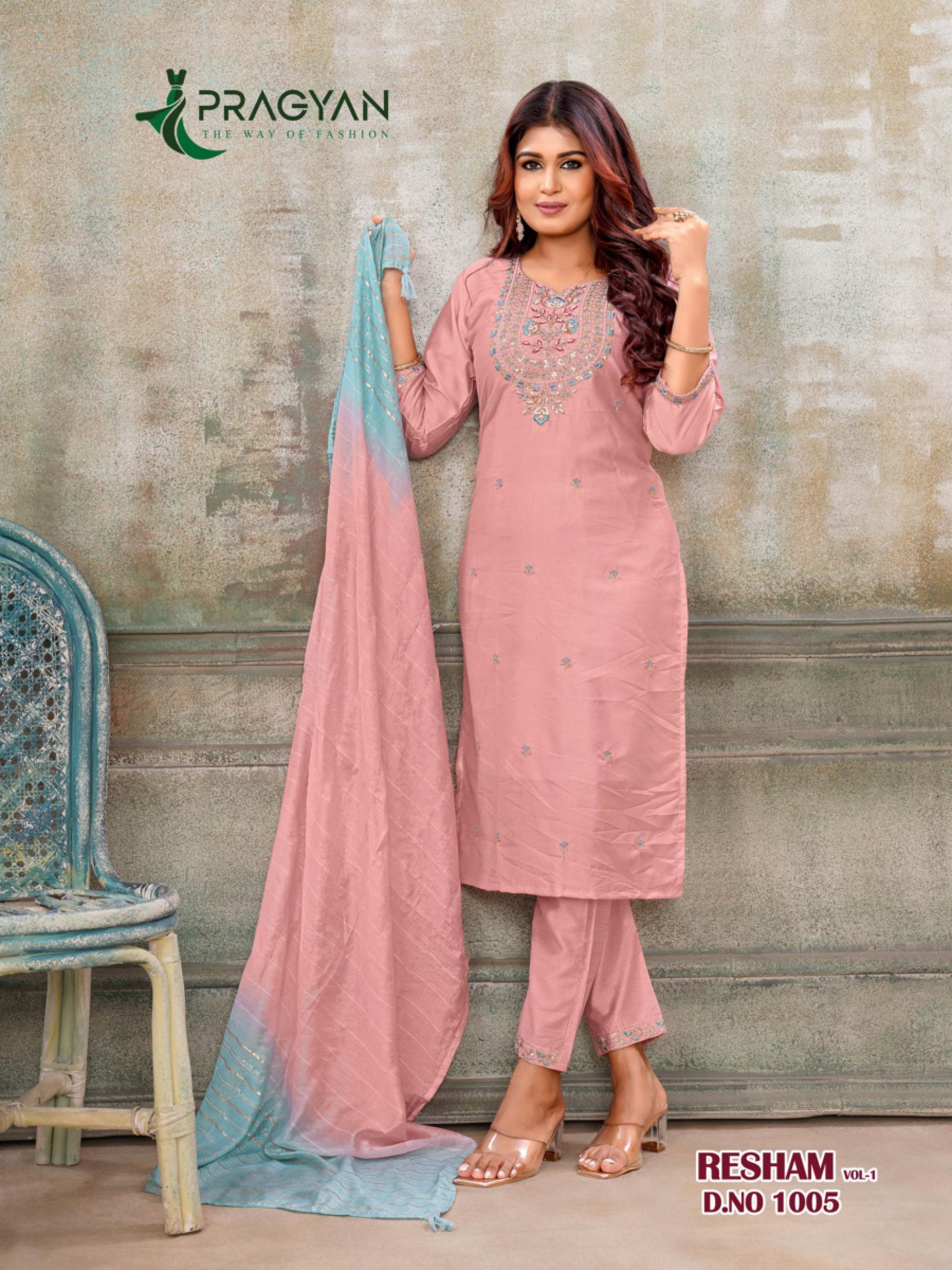 pragyan resham vol 1 chanderi fully stitch stylish suit for womens