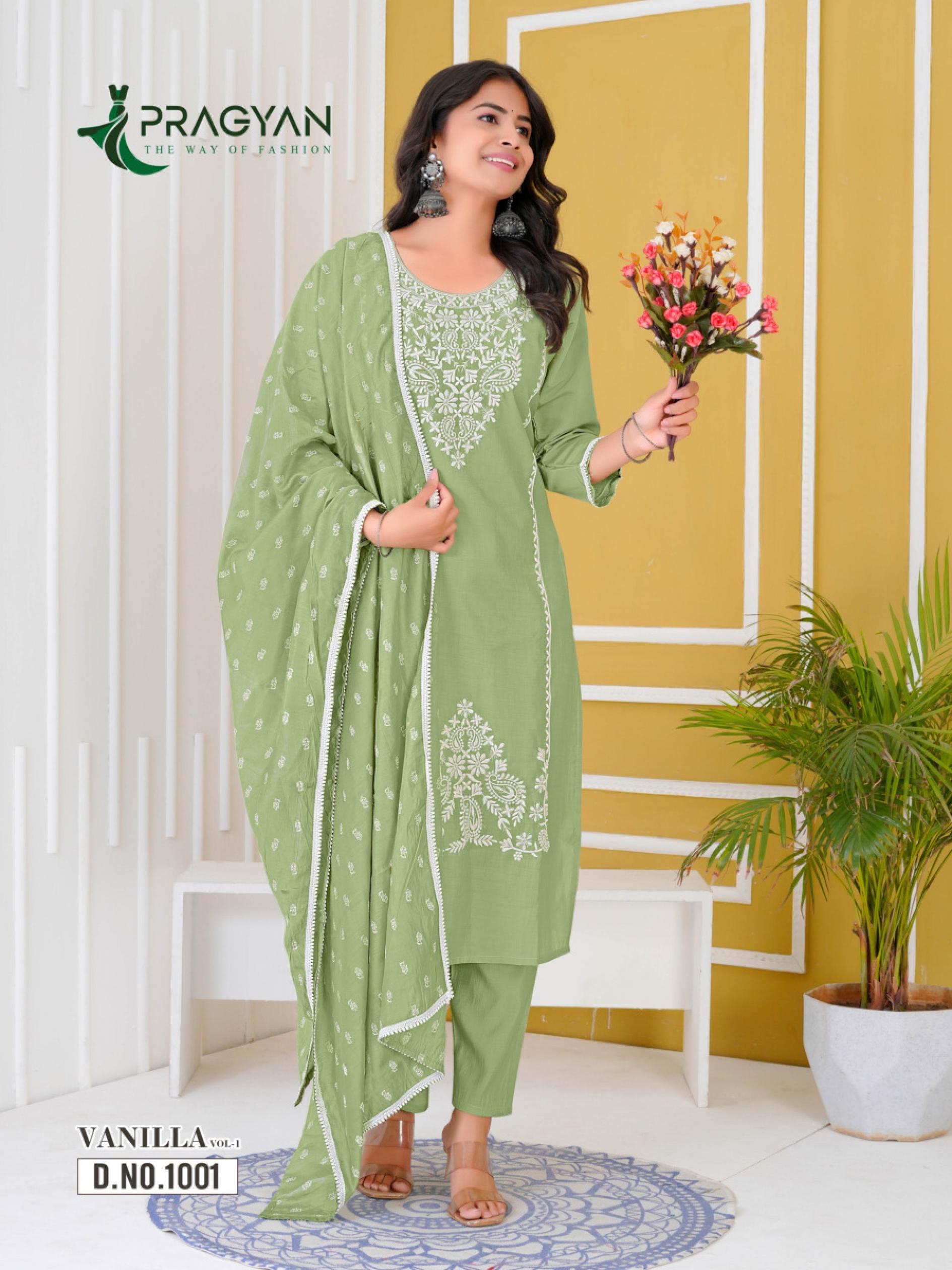 pragyan vanilla vol 1 roman silk fully stitch attractive 3pcs dress