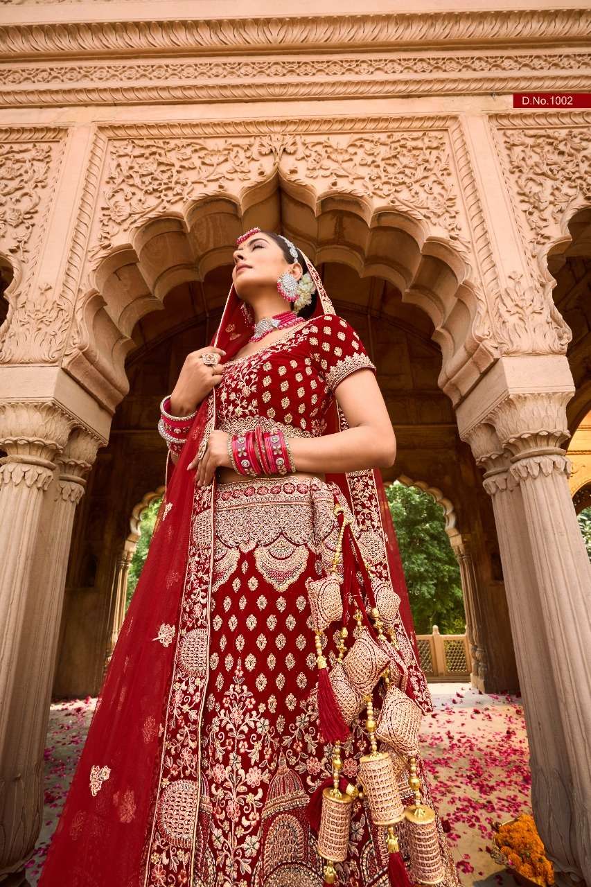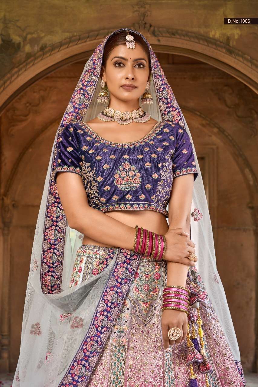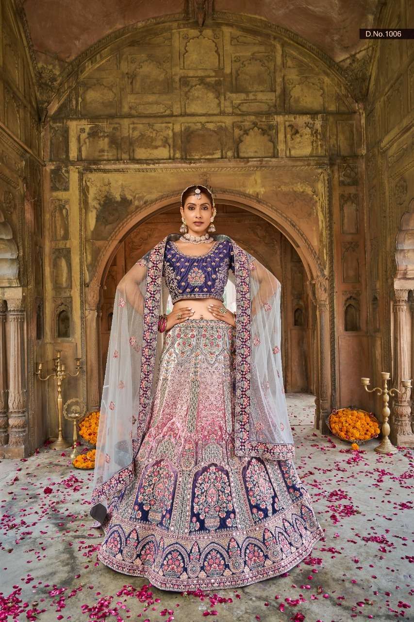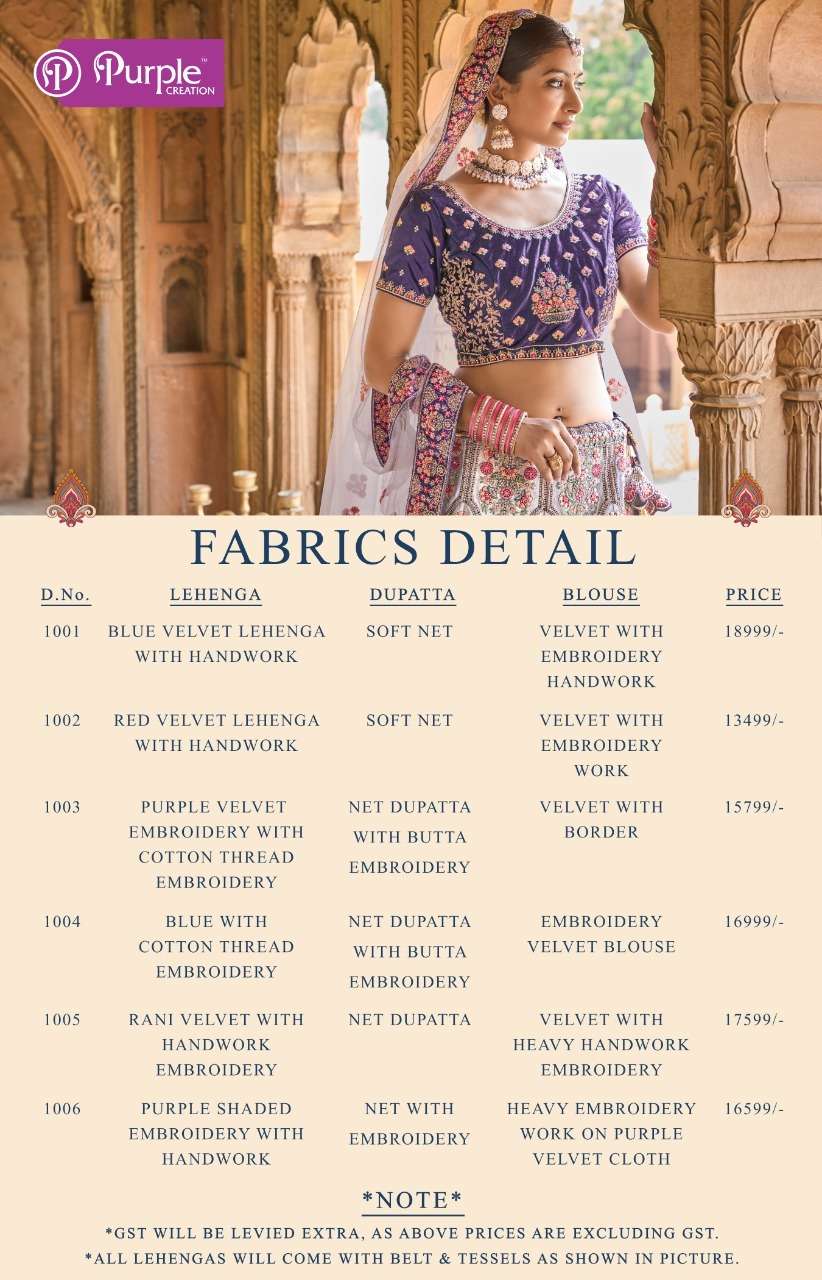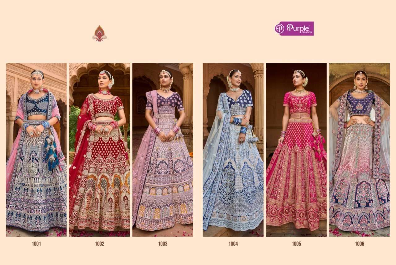 purple creation 1001-1006 series velvet heavy bridal lehengas wholesale