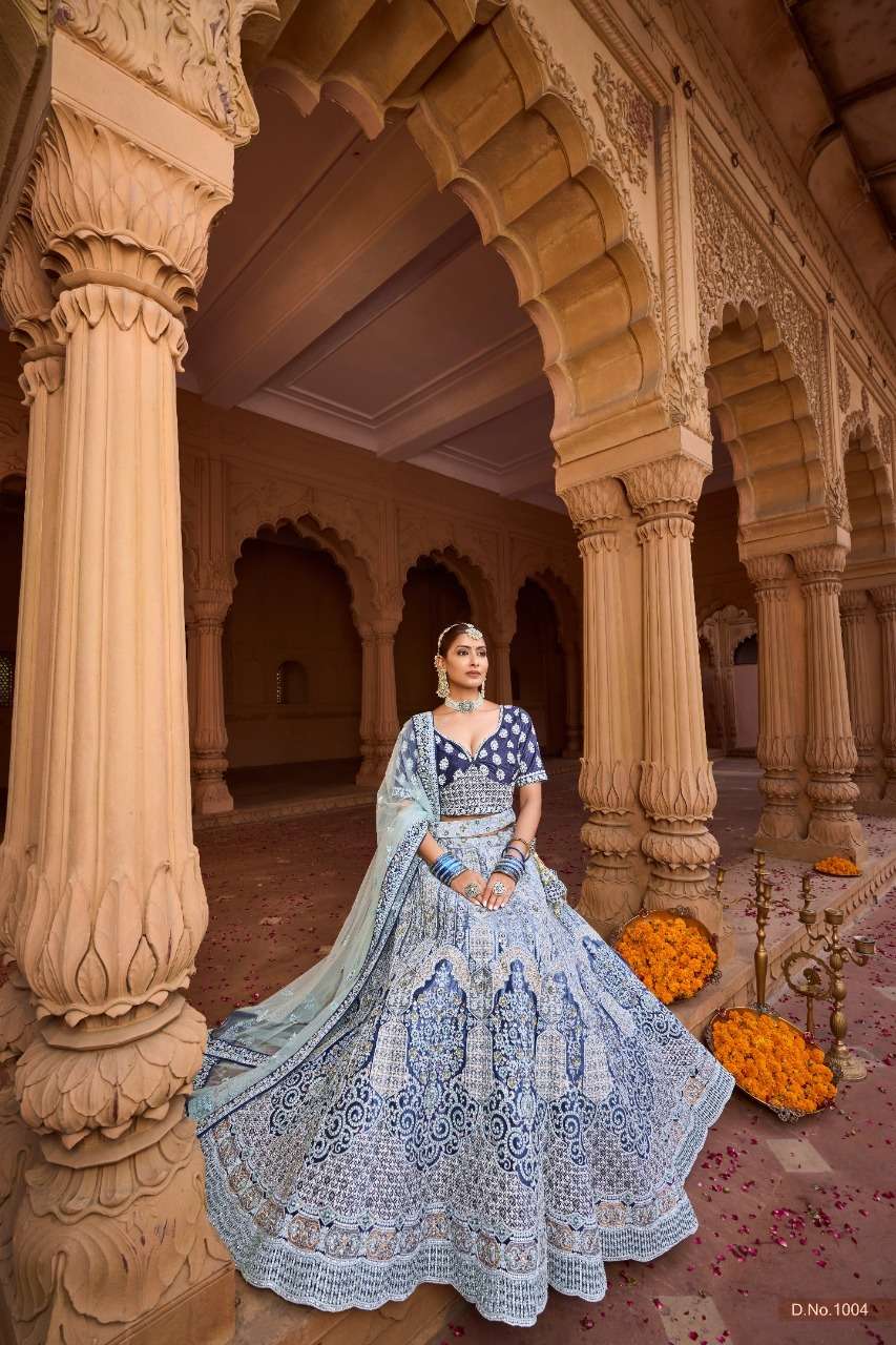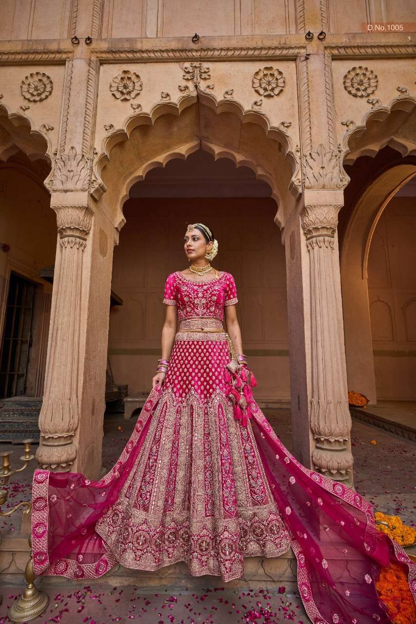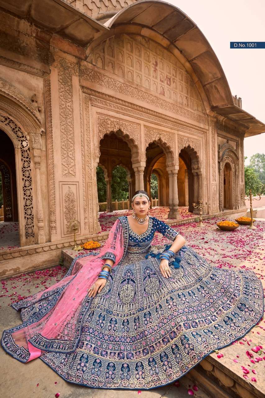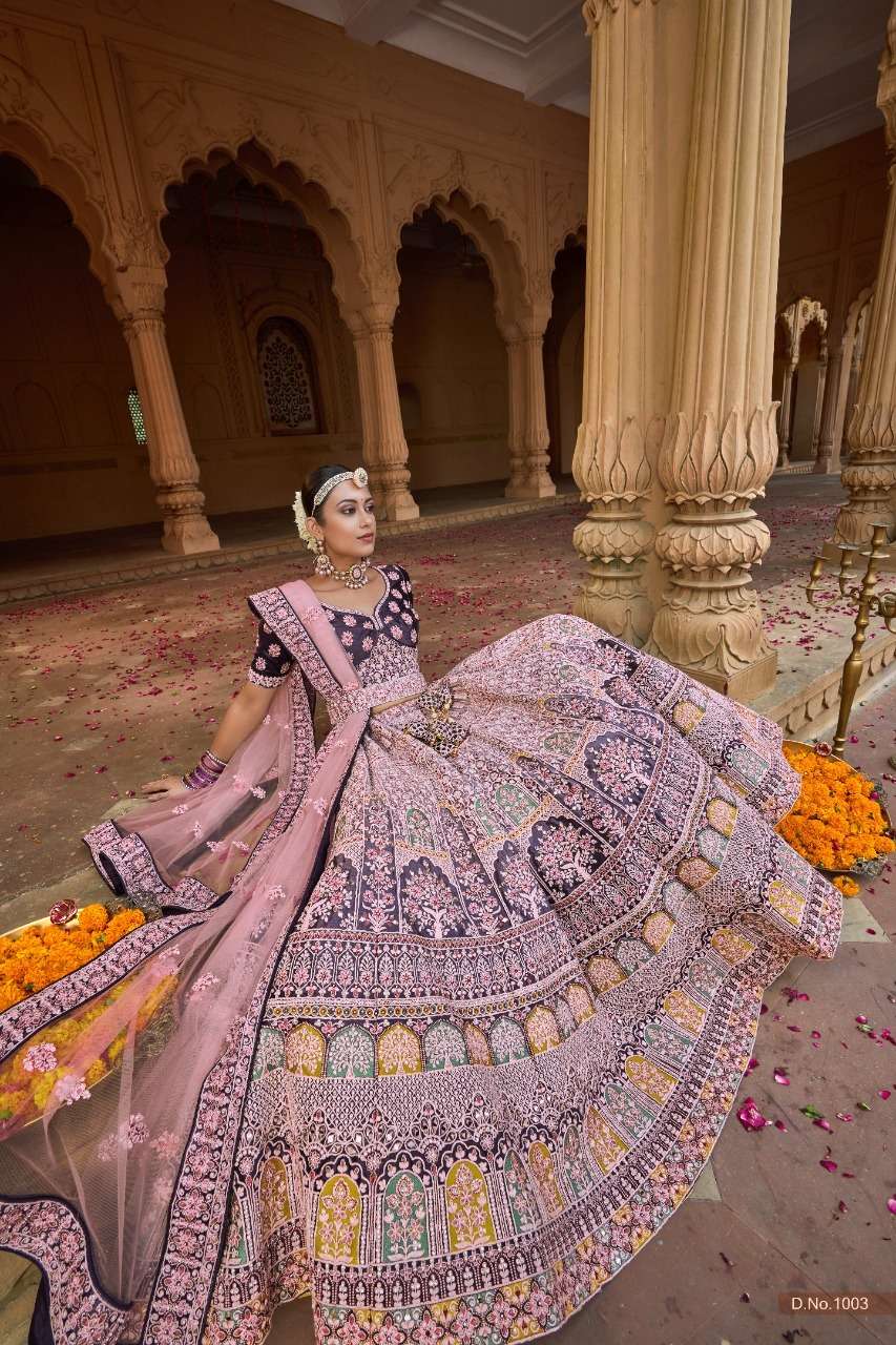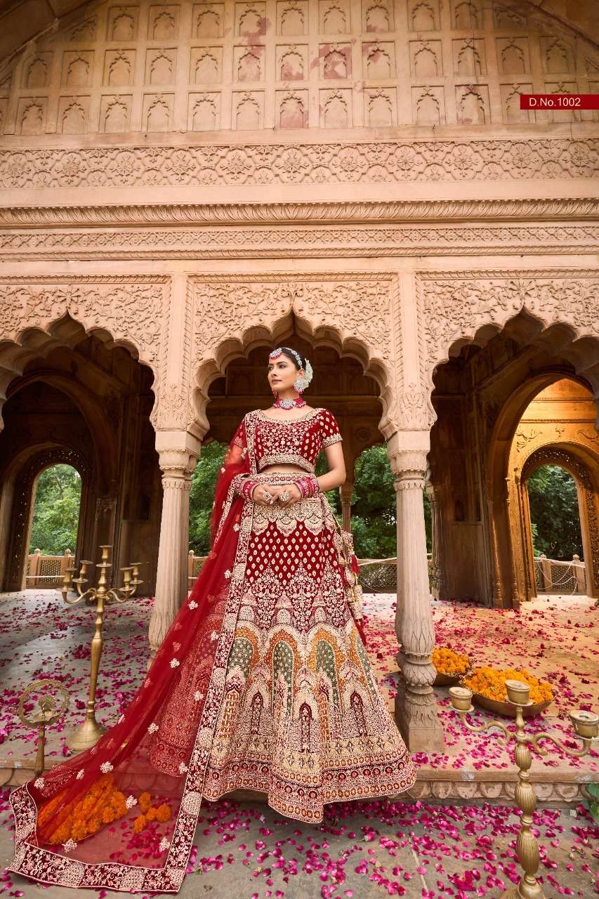 purple creation 1001-1006 series velvet heavy bridal lehengas wholesale