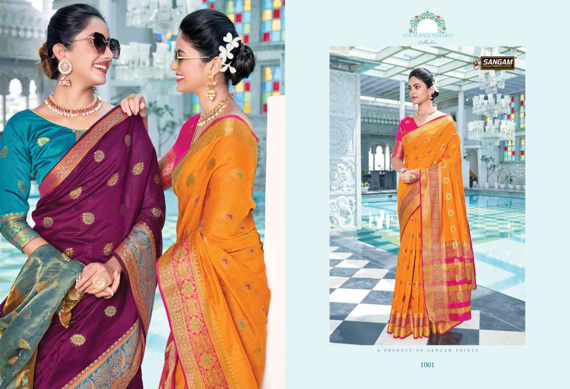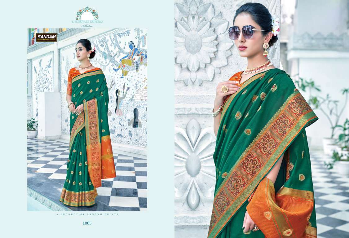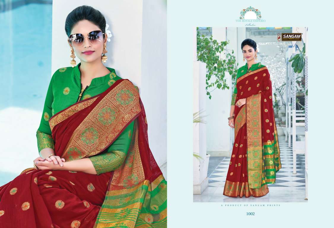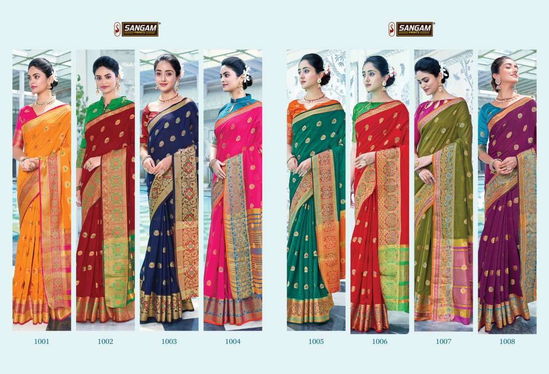 Radha Rani By Sangam Prints Fancy Cotton Handloom Silk Sari Supplier