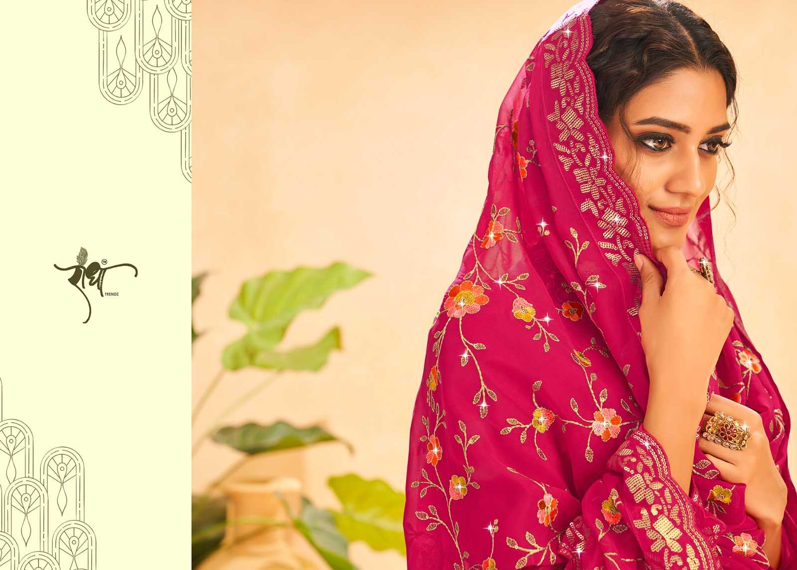 BRAND: RADHA TRENDZ CATLOG TOP: REAL ORGANZA WITH HEAVY EMBROIDARY WORK INNER :HEAVY SANTUN BOTTOM : HEAVY SANTUN DUPATTA: HEAVY ORGANZA WITH HEAVY EMBROIDARY WORK RATE:1895/- per pcs |