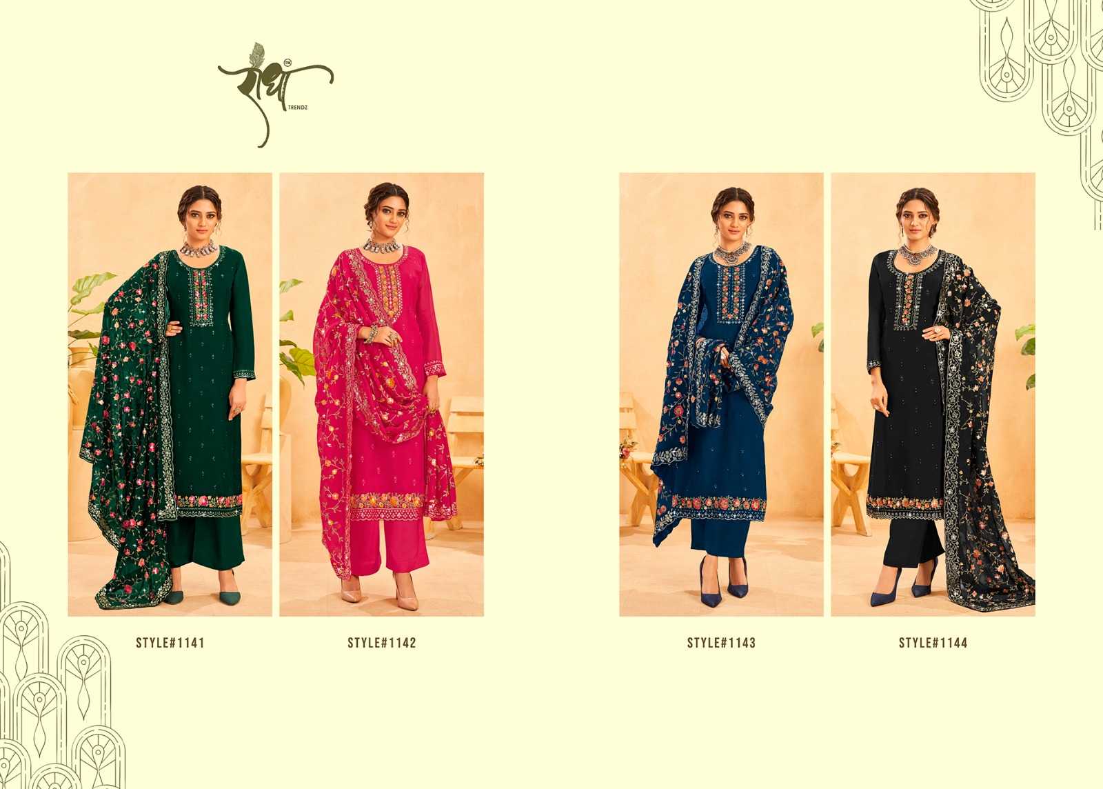 Radha Trendz Presents Latest Collection Launched on 11-10-2023. Presenting Beautiful collection of 4 PCS with Unstitched .