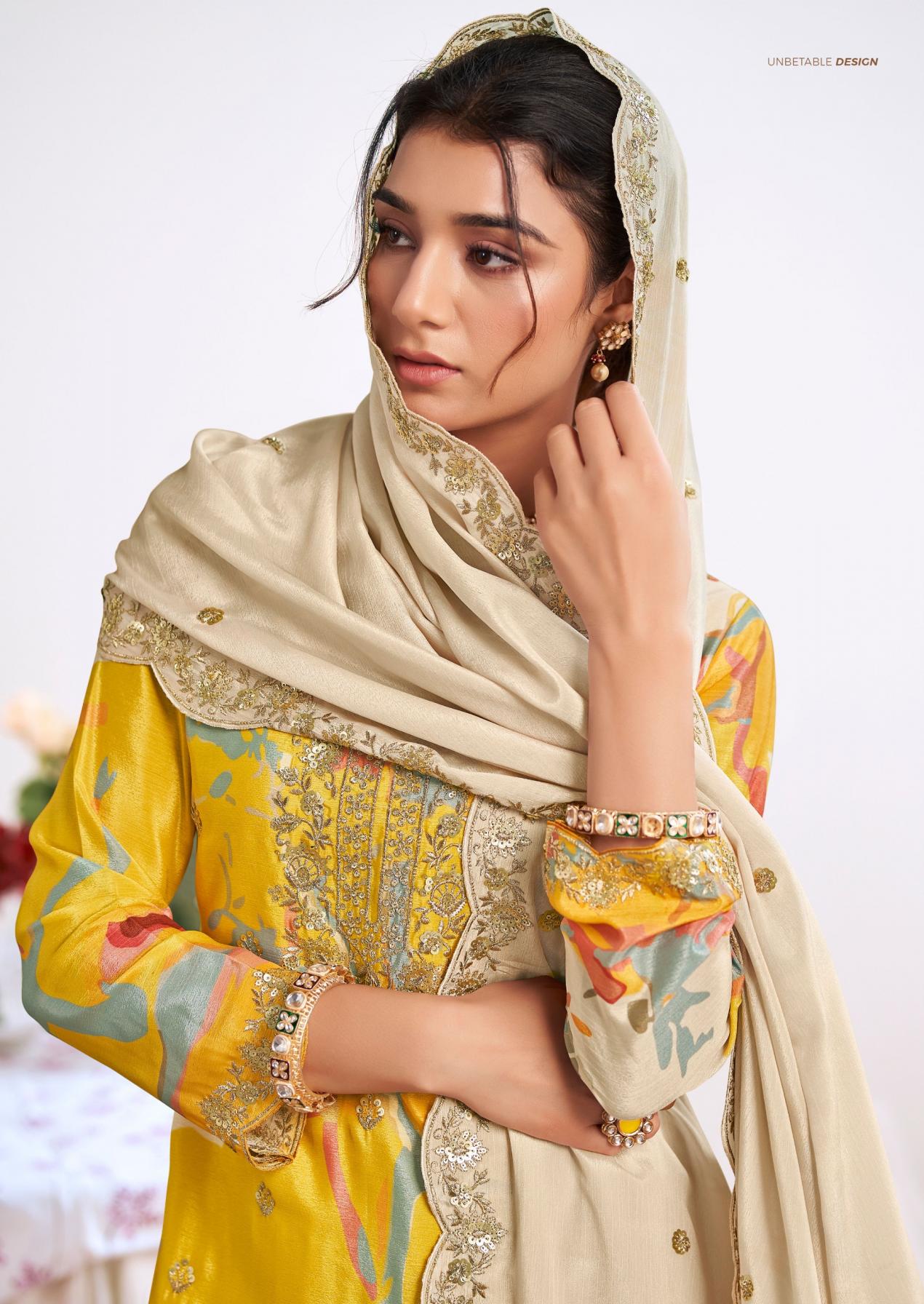 BRAND: RADHA TRENDZ CATLOG TOP: HEAVY PREMIUM CHINON WITH HEAVY EMBROIDARY WORK. (FREE SIZE STITCHED) BOTTOM : HEAVY PREMIUM CHINON WITH DIGITAL PRINT & EMBROIDARY WORK (FREE SIZE STITCHED) DUPATTA: PURE ORGANZA WITH HEAVY EMBROIDARY WORK & FANCY LATKAN RATE: 1951/- NOTE : FREE SIZE STITCHED SUIT |