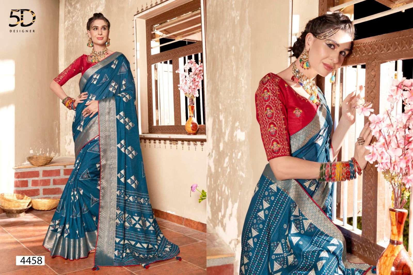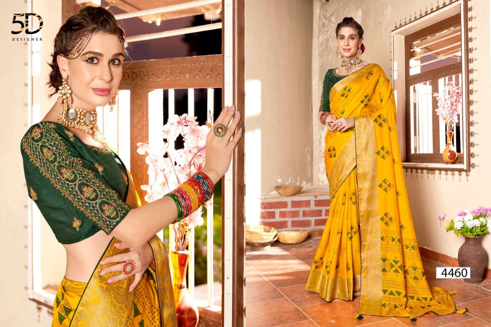 radhe vol 2 by 5d designer amazing festive wear saree with designer blouse peice