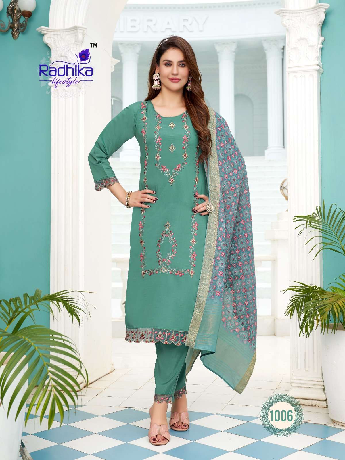 radhika lifestyle kasturi vol 1 beautiful work readymade salwar kameez with digital muslin dupatta