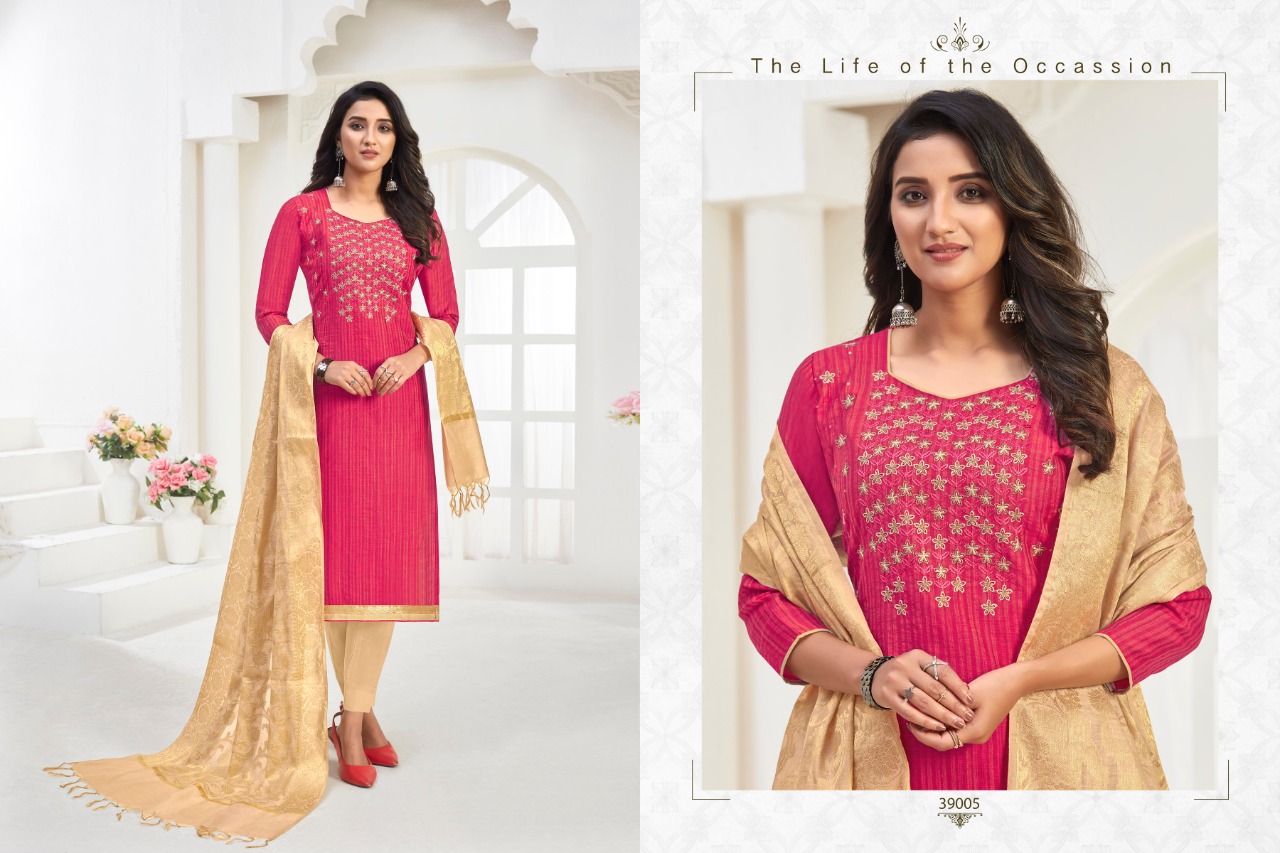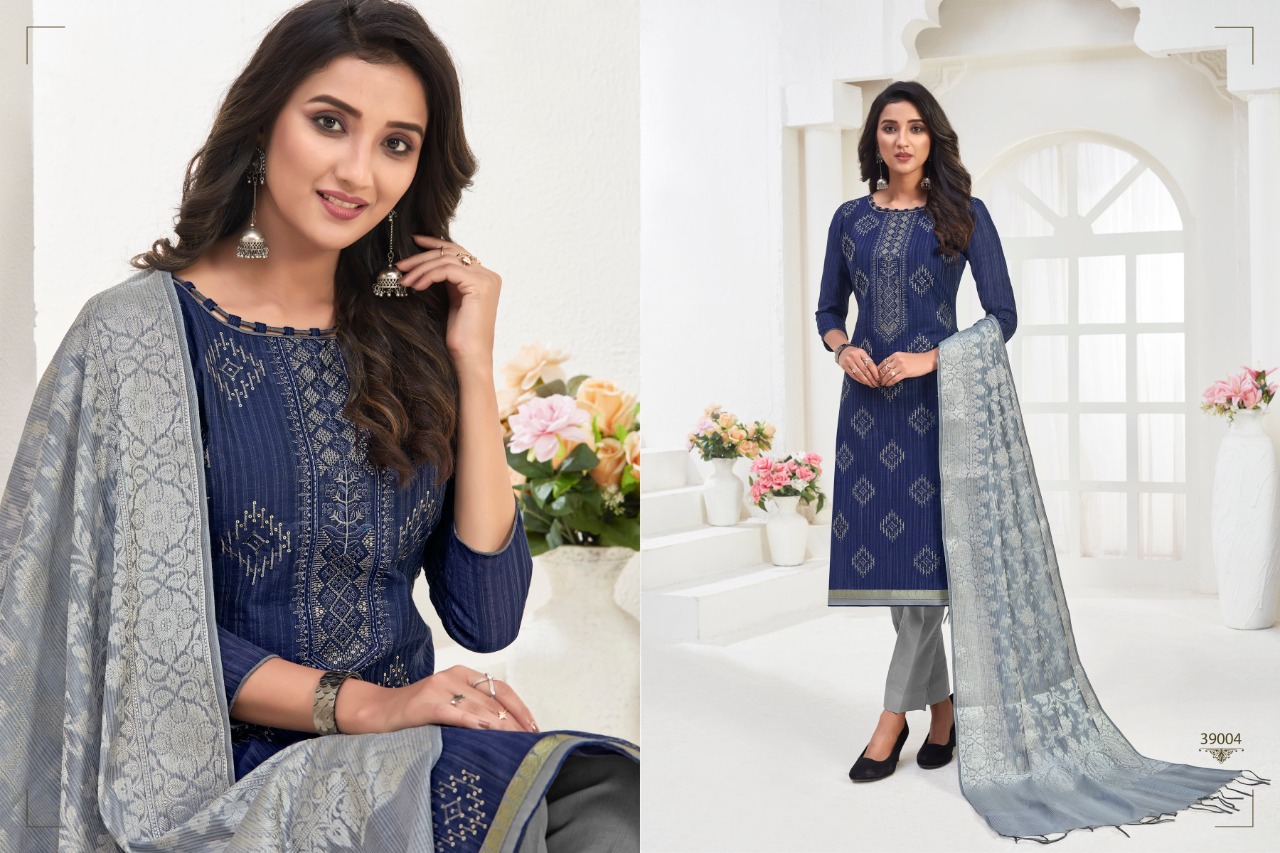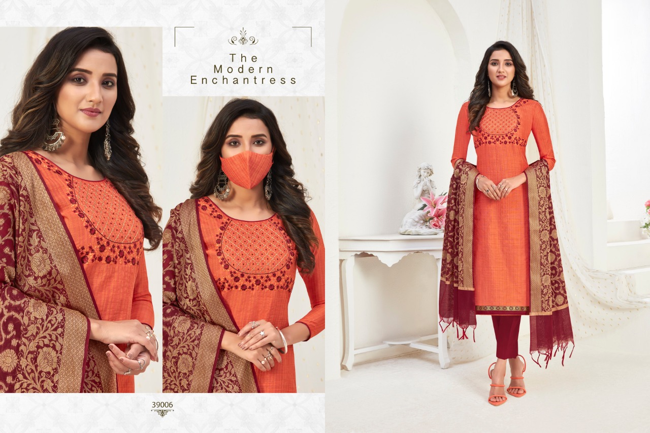 NYKAA Vol-2 (WITH MASK) - A exclusive embroidery work and fancy banaras jecord dupatta range. Top: South Cotton Self Stripes With embroidery work, Cut-2.40 mts approx. Dupatta: Exclusive Banaras Jacquard Dupatta, Cut-2.30 mts approx. Bottom: Cotton Cut-2.50 mts approx. Rate- 731 per pcs . Set to set. GST 5 Percent Extra. Delivery from tomorrow Total Suit cut-7.20mts approx Regards, Raghav Royals |