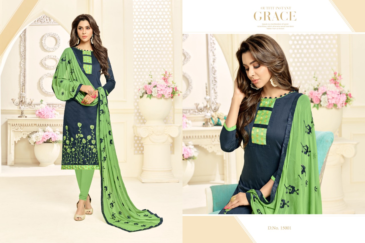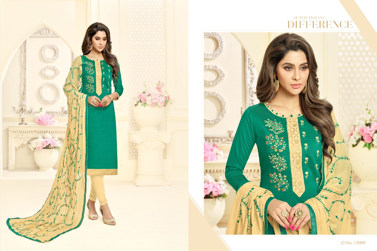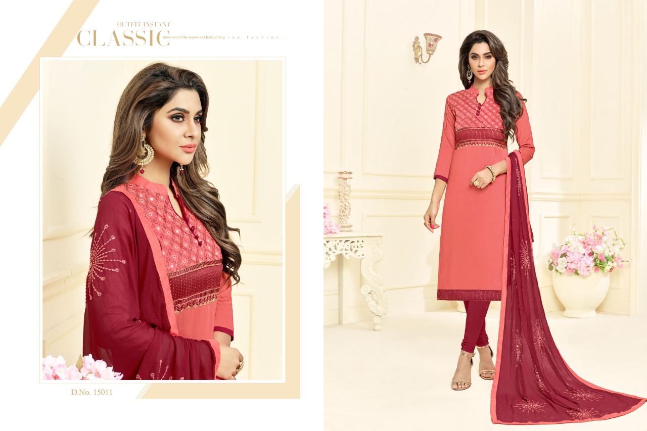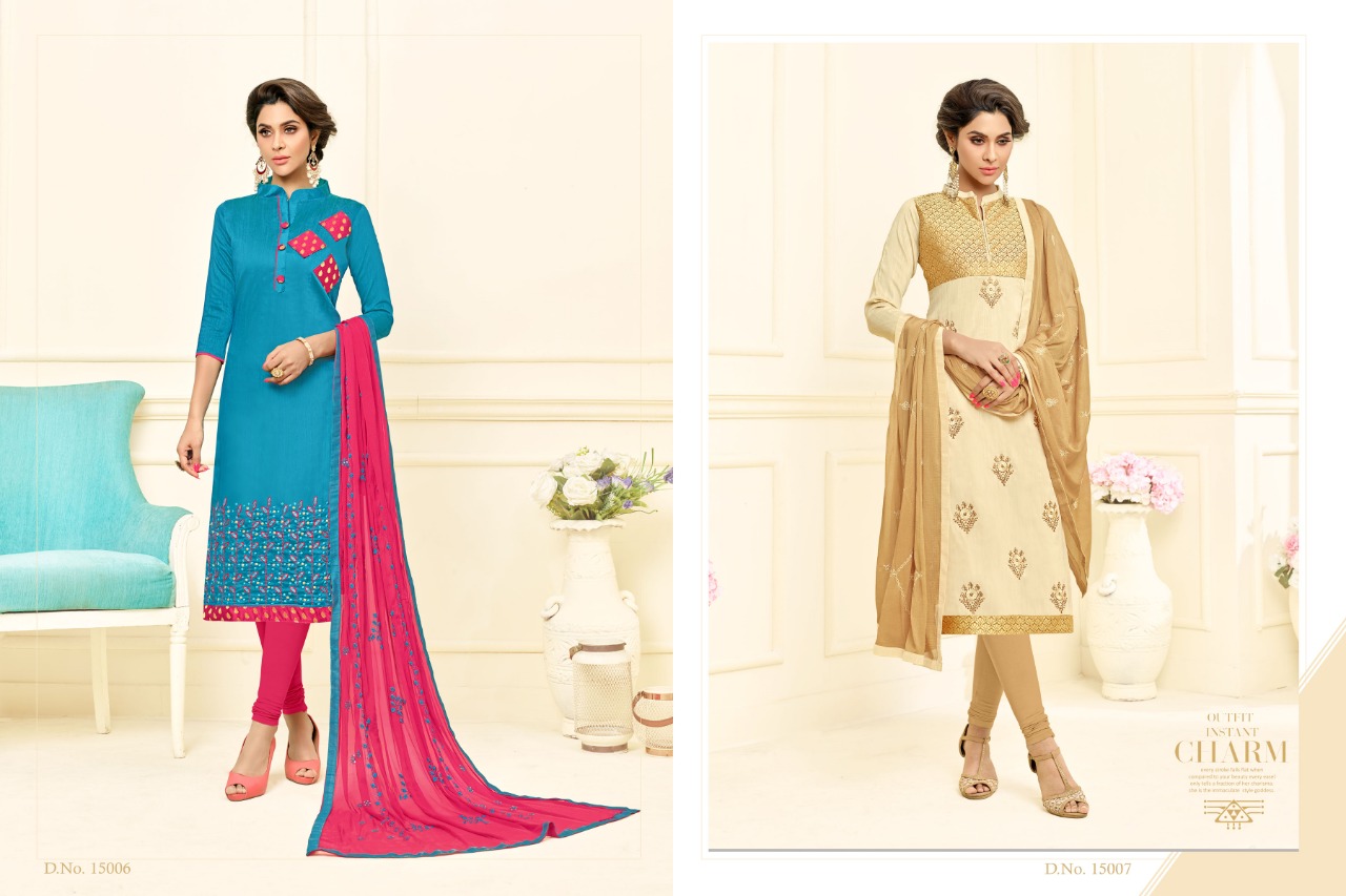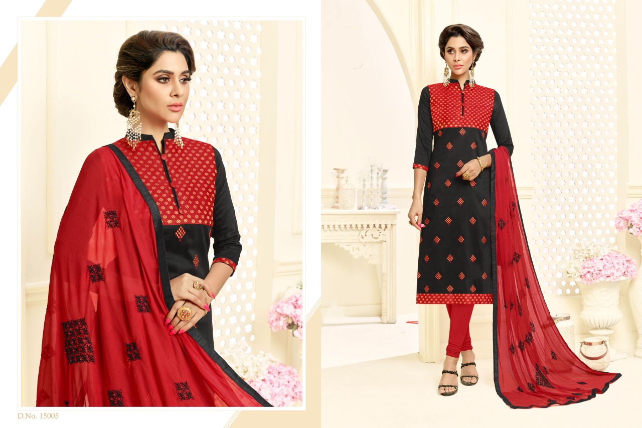 RAGHAV ROYALS PRESENT M O N A L I S A - Designer embroidery tops with jecord and exclusive embroidery work dupattas. Top: Cotton Long Slub with embroidery work and jecord cutting-pasting. Dupatta: Najnin heavy embroidery work. Bottom: Cotton @625/- |