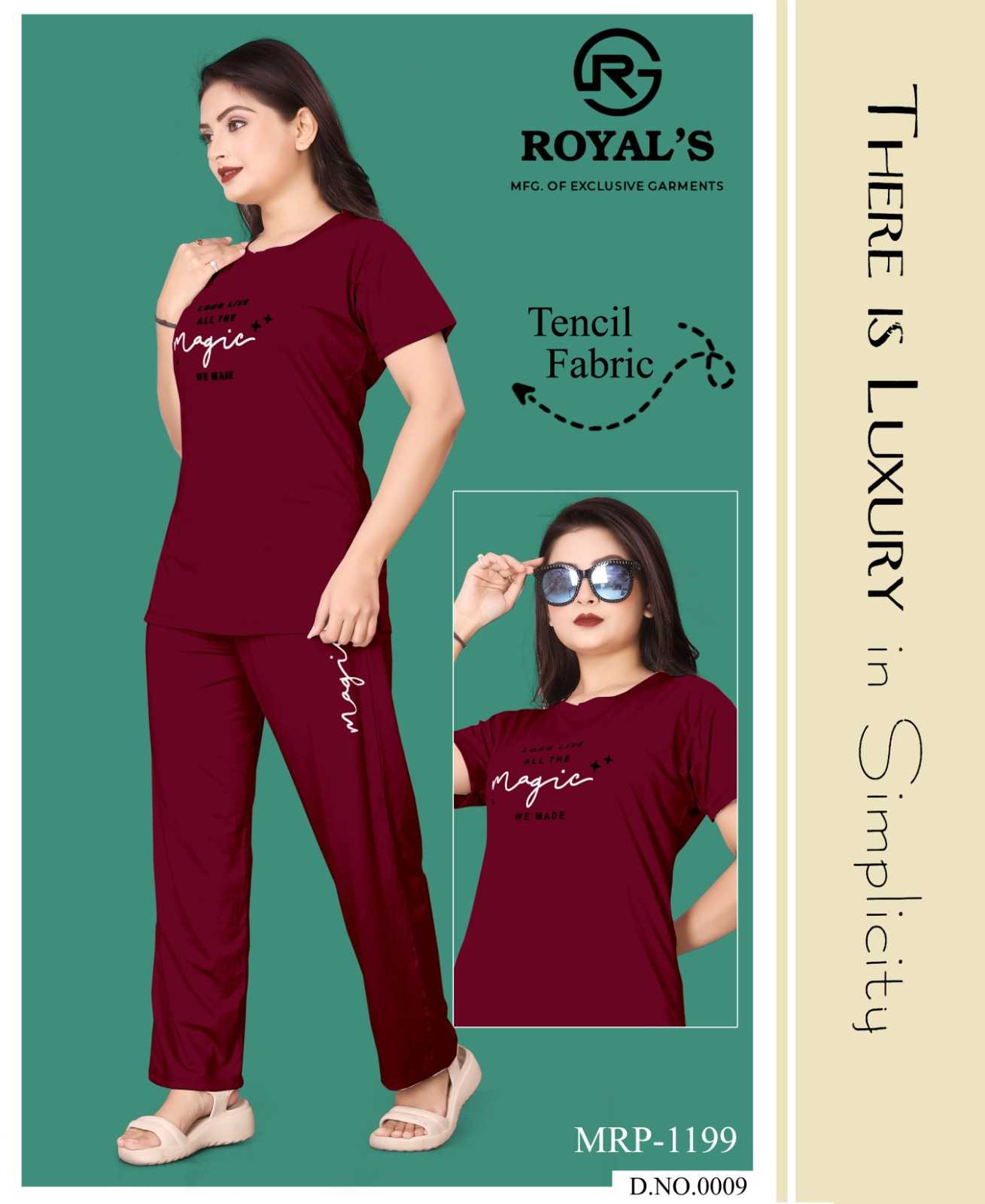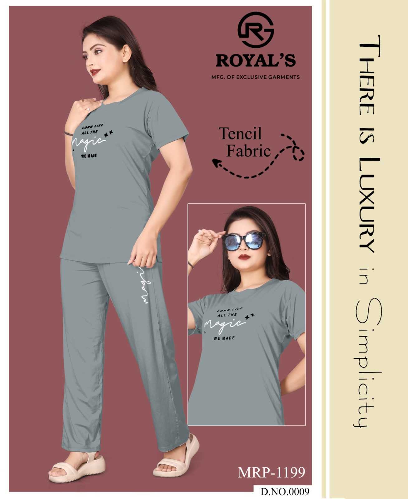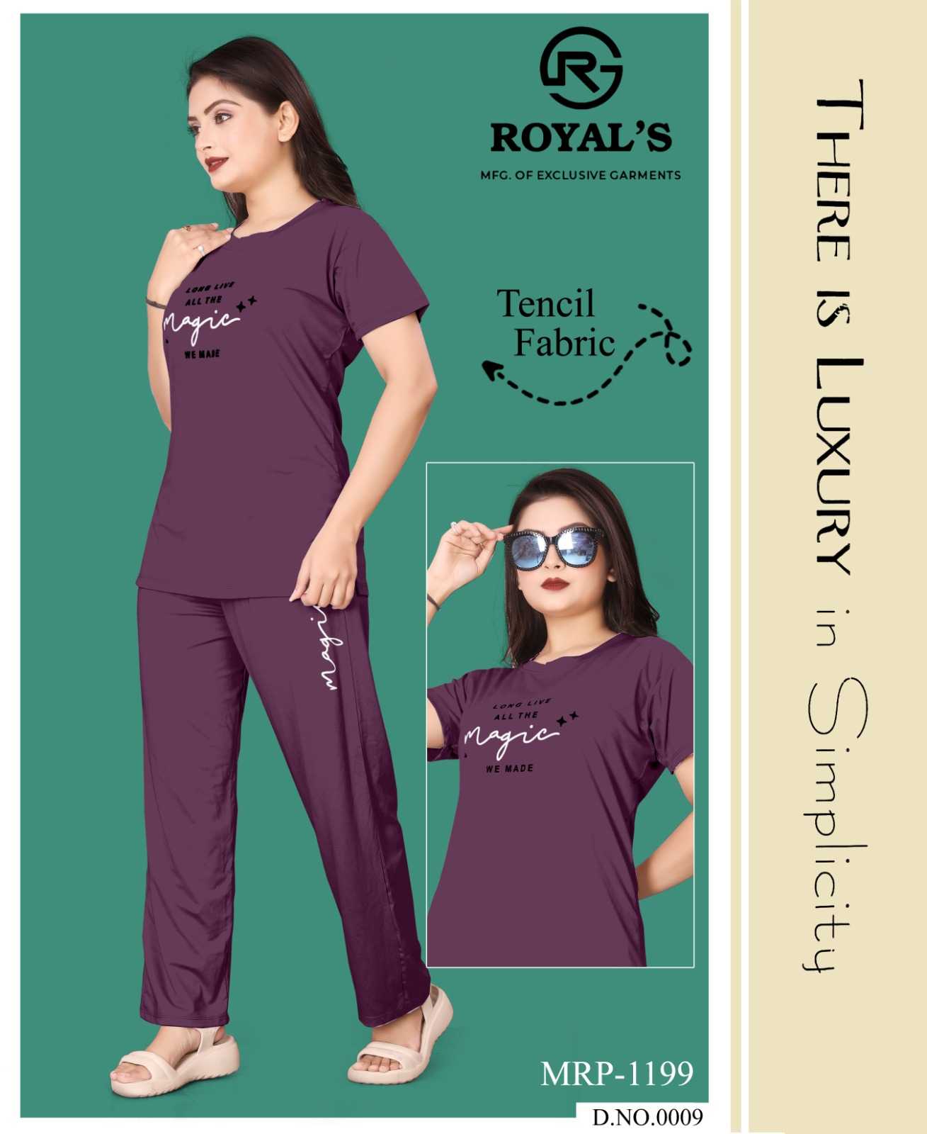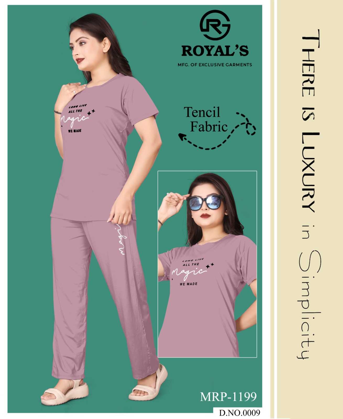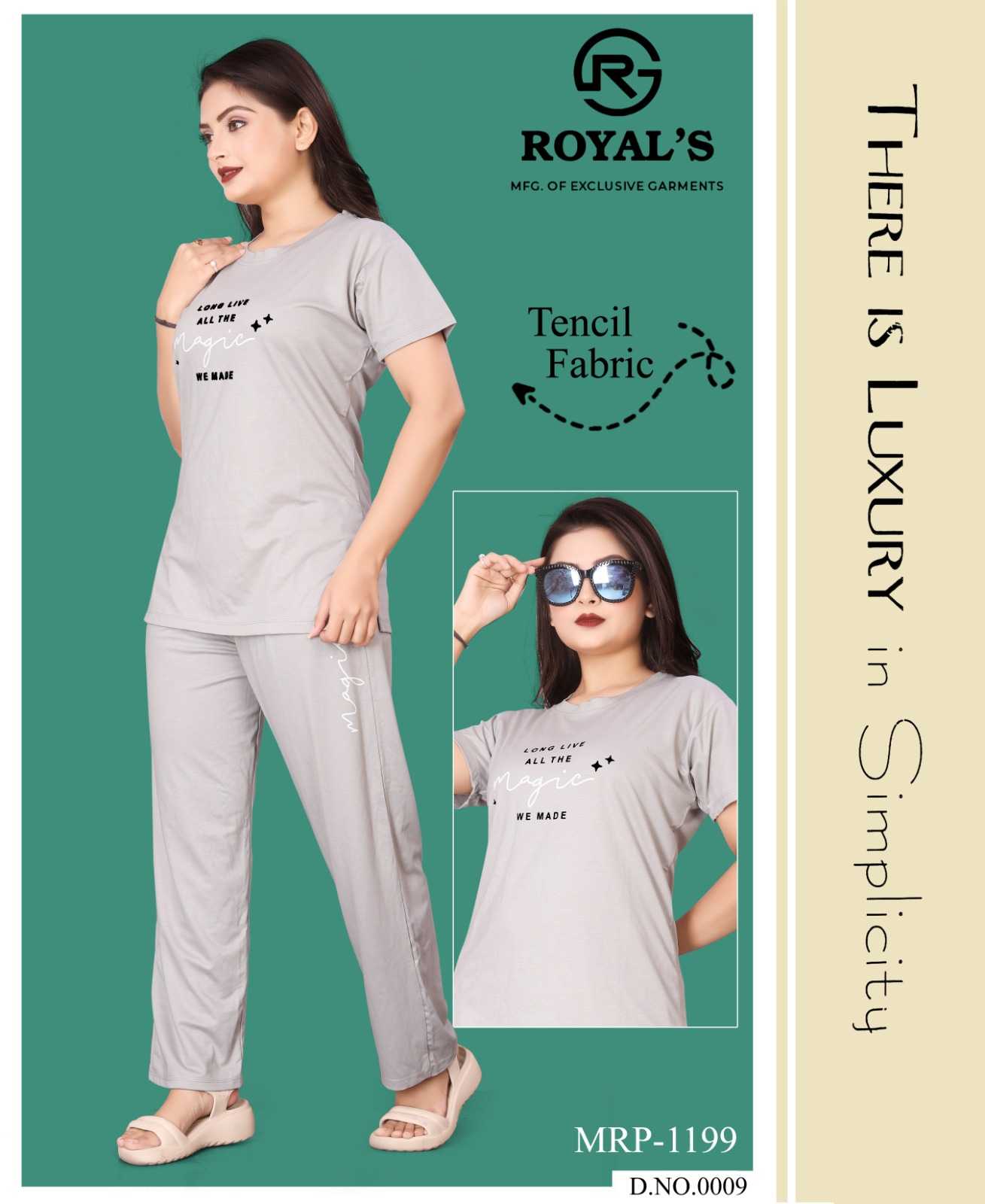 raghav royals presents tencil 0009 new design fancy lycra full stitch night suit