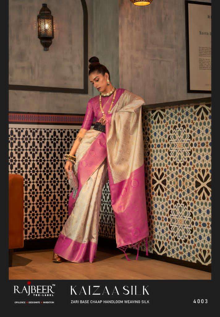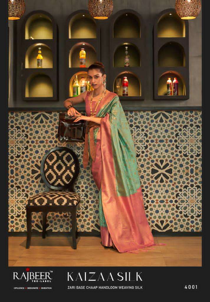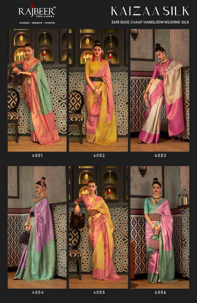 rajbeer surat kaizaa silk 4001-4006 zari chaap weaving silk saris wholesale store