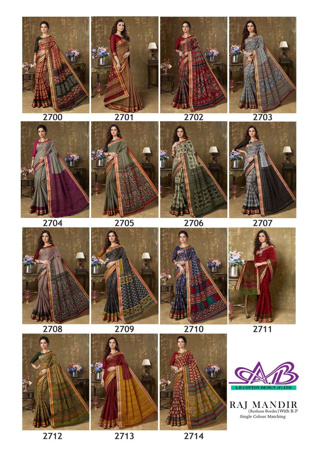 rajmandir resham border by ab cotton design single colour matching saree collection