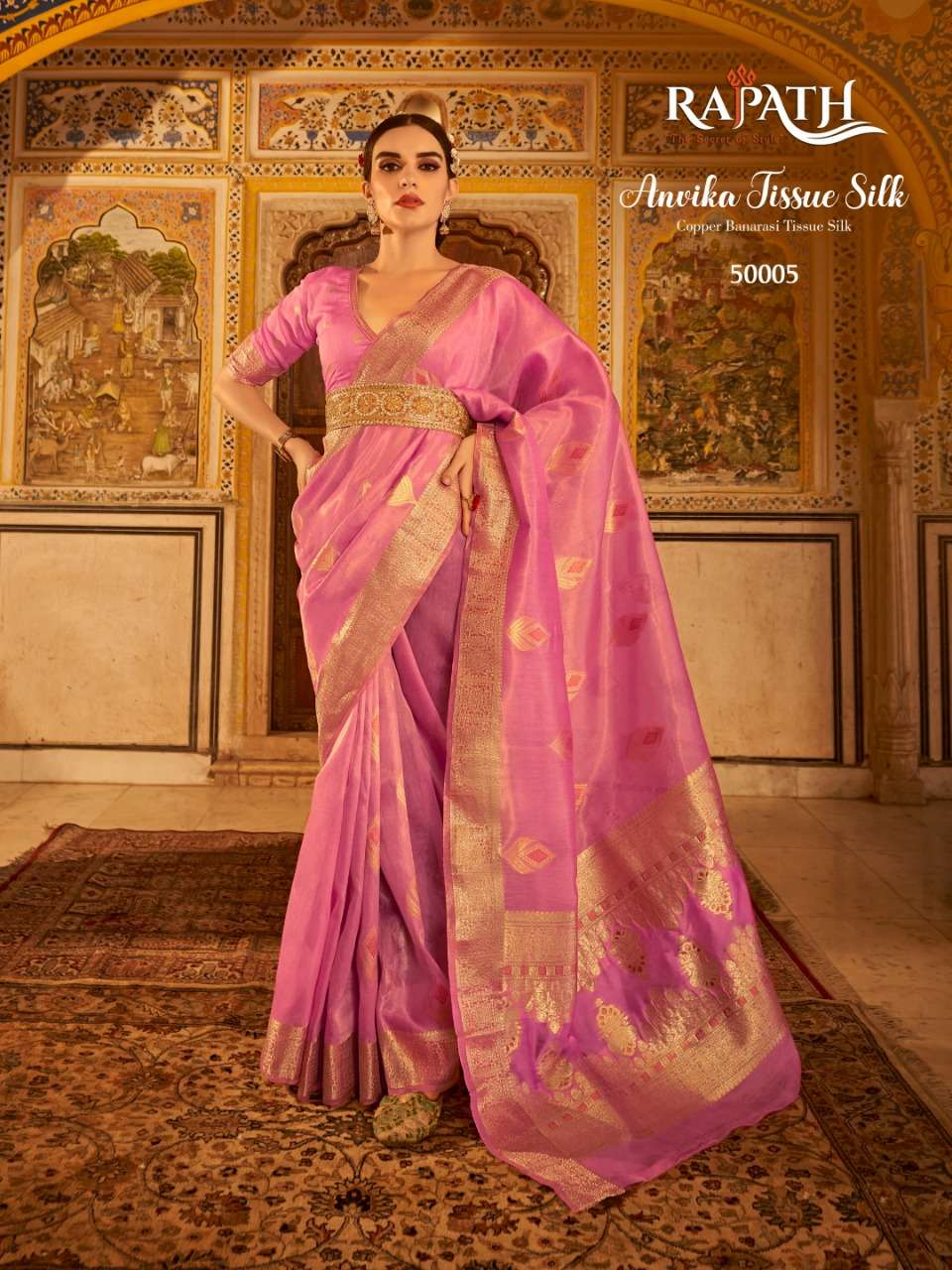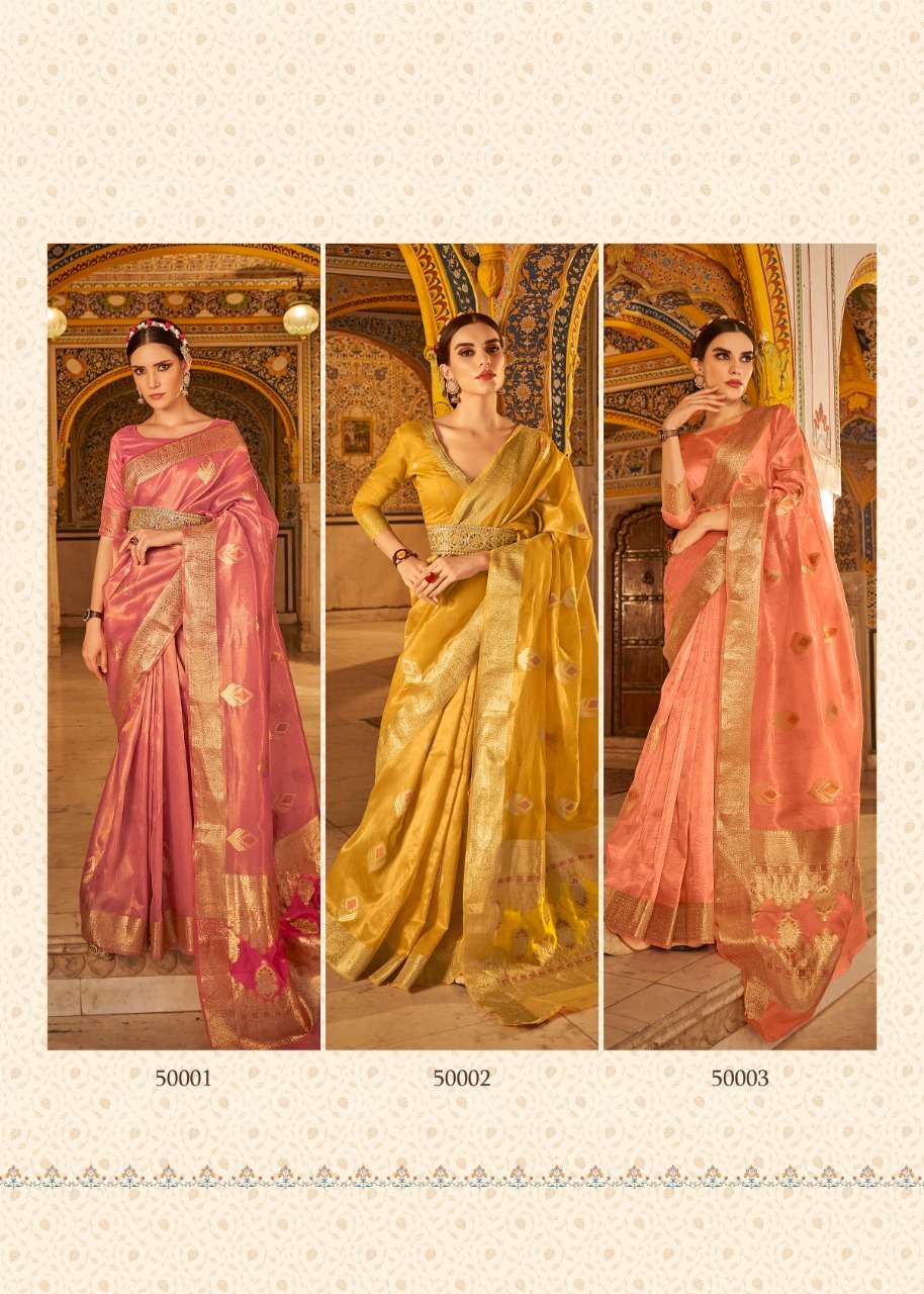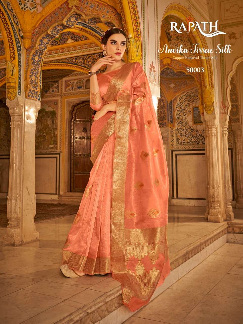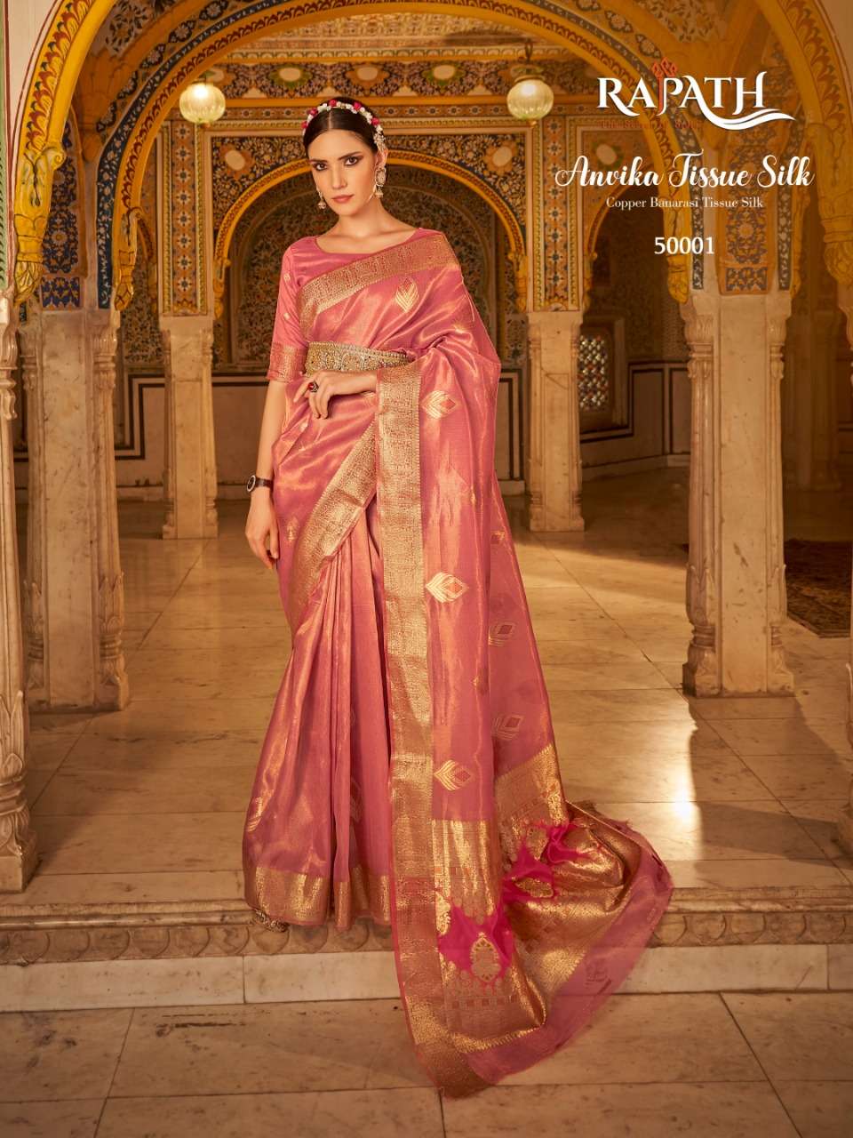 rajpath anvika tissue silk gold & copper zari with banarasi pallu sarees