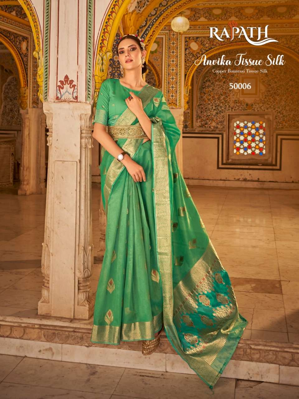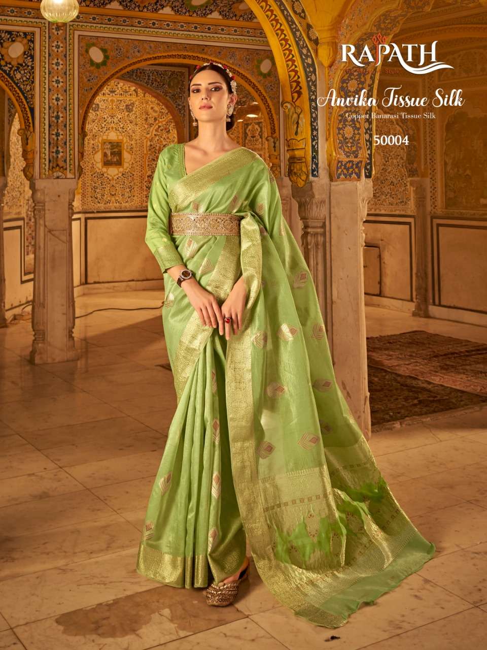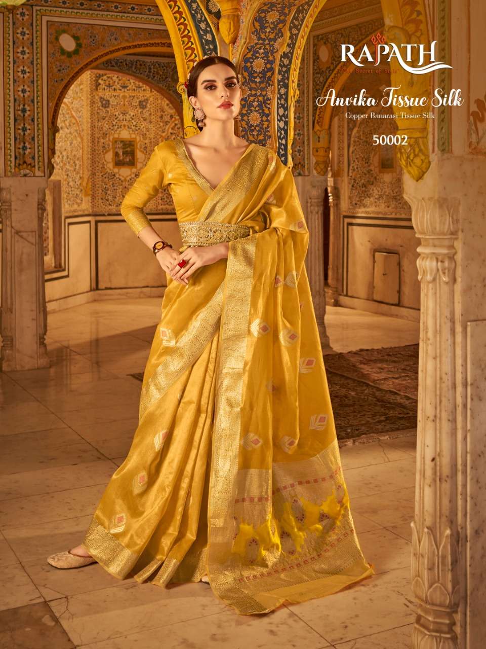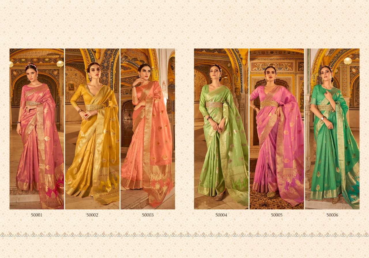 rajpath anvika tissue silk gold & copper zari with banarasi pallu sarees