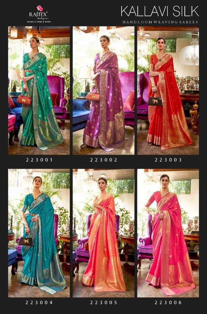 rajtex kallavi silk 223001-223006 series silk festival wear saree wholesaler