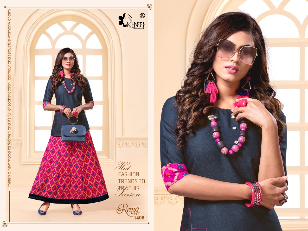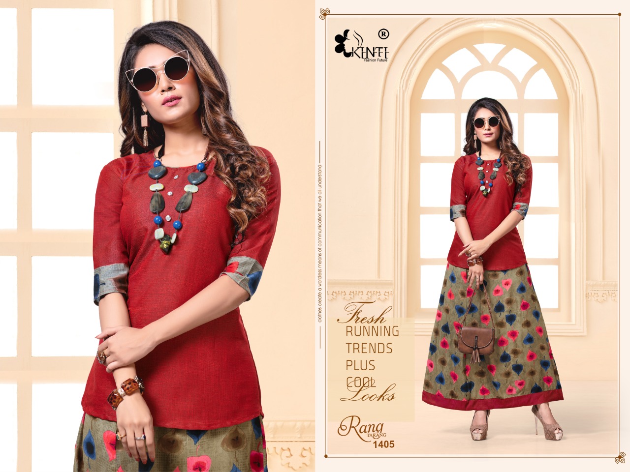 By KINTi ® Skirt and Top Top Fabric. : Reyon two tone Style. : Short Stiching Patterns Height : 28 Skirt Fabric. : Reyon Print 14kg Style. : Kali Pattern Length. : 40(approx) Sizes : M L XL Designs : 10 Rate :- 399 + GST FRIDAY DELIVERY |