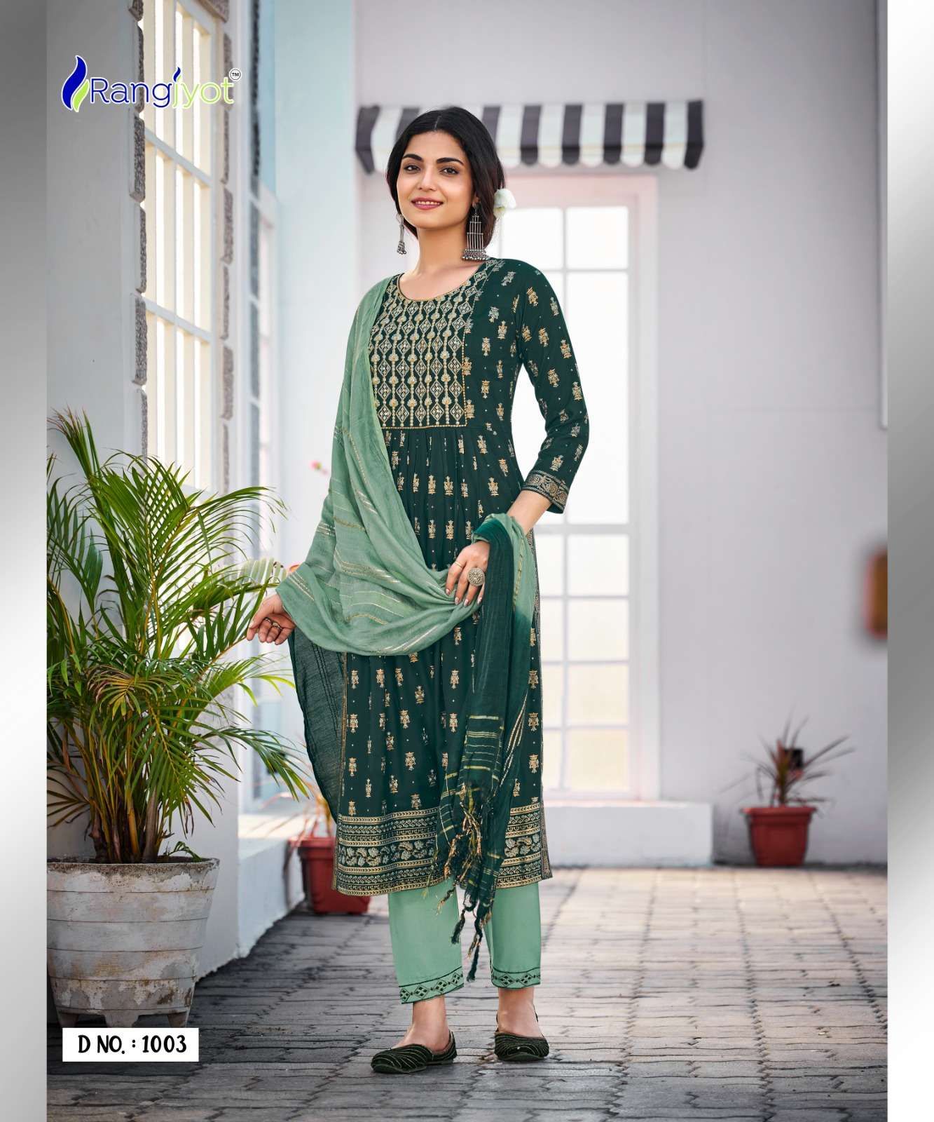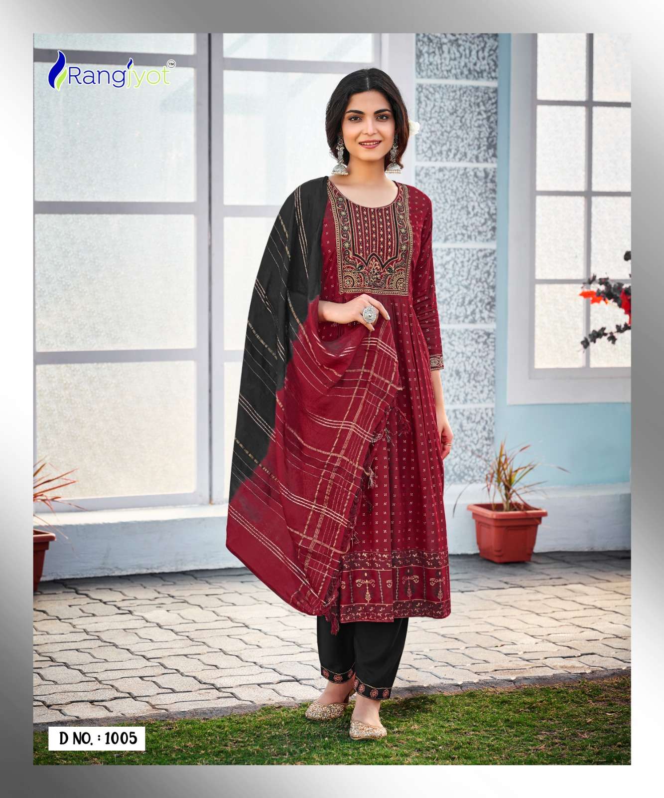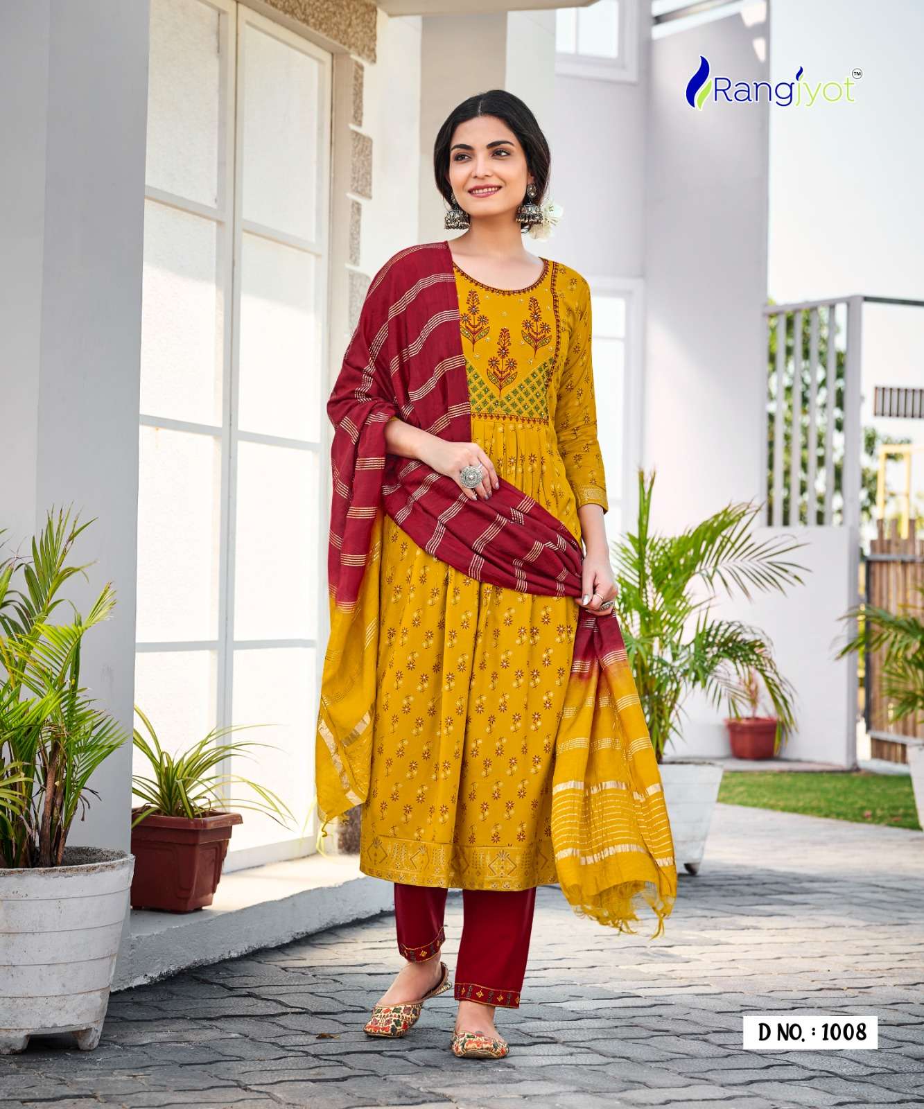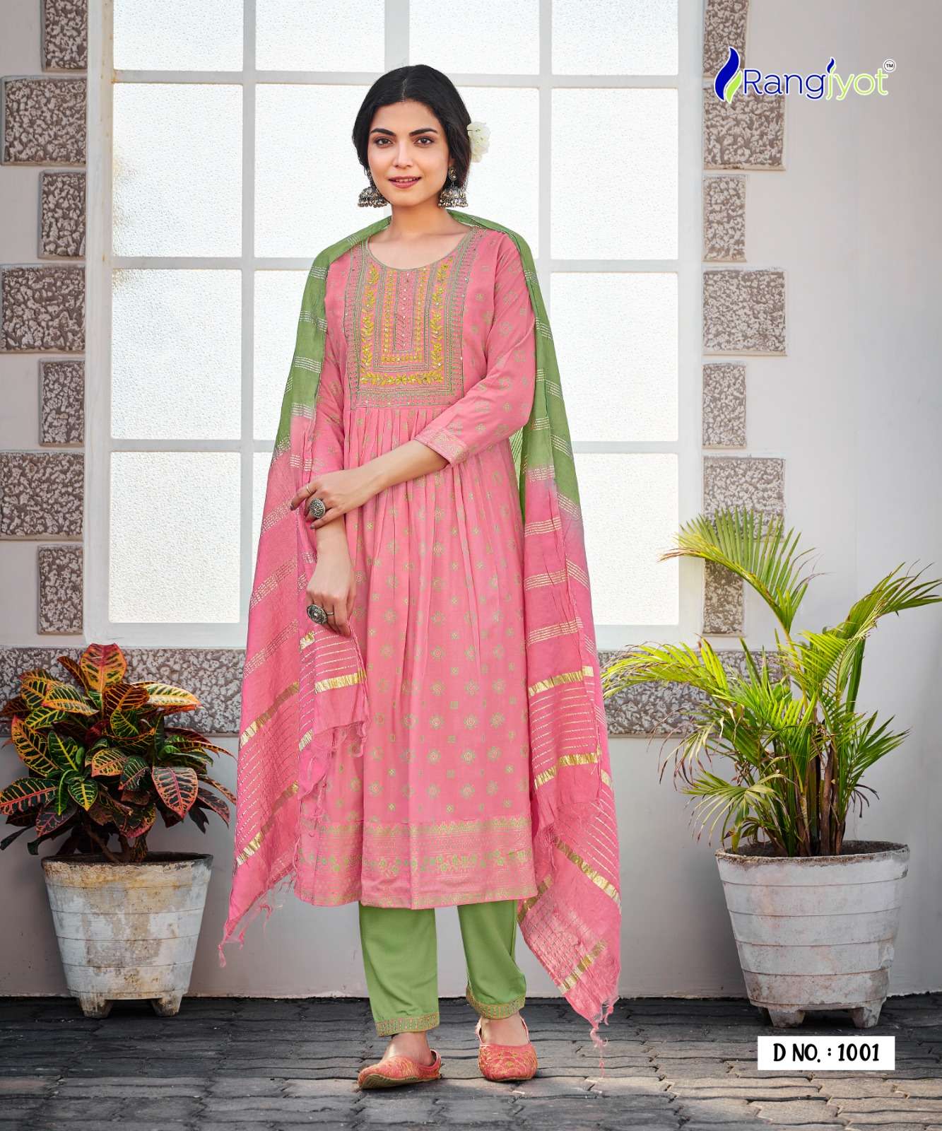 rangjyot present rang manch vol 2 readymade rayon kurta with pant and dupatta set