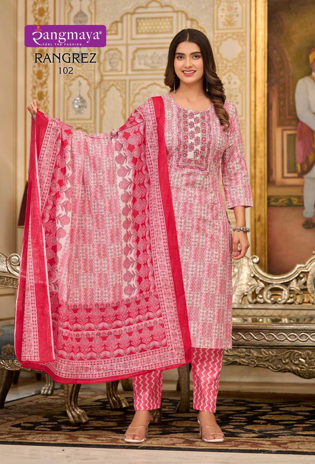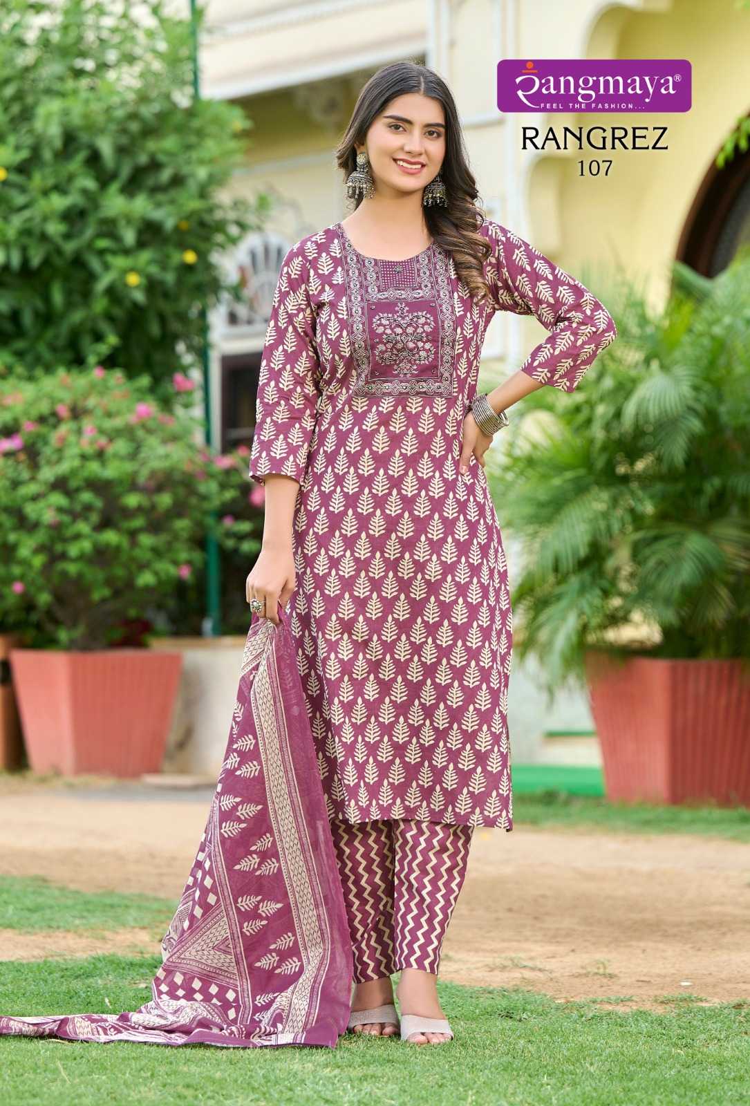 rangmaya present rangrez cotton comfortable readymade kurti pant with duppata