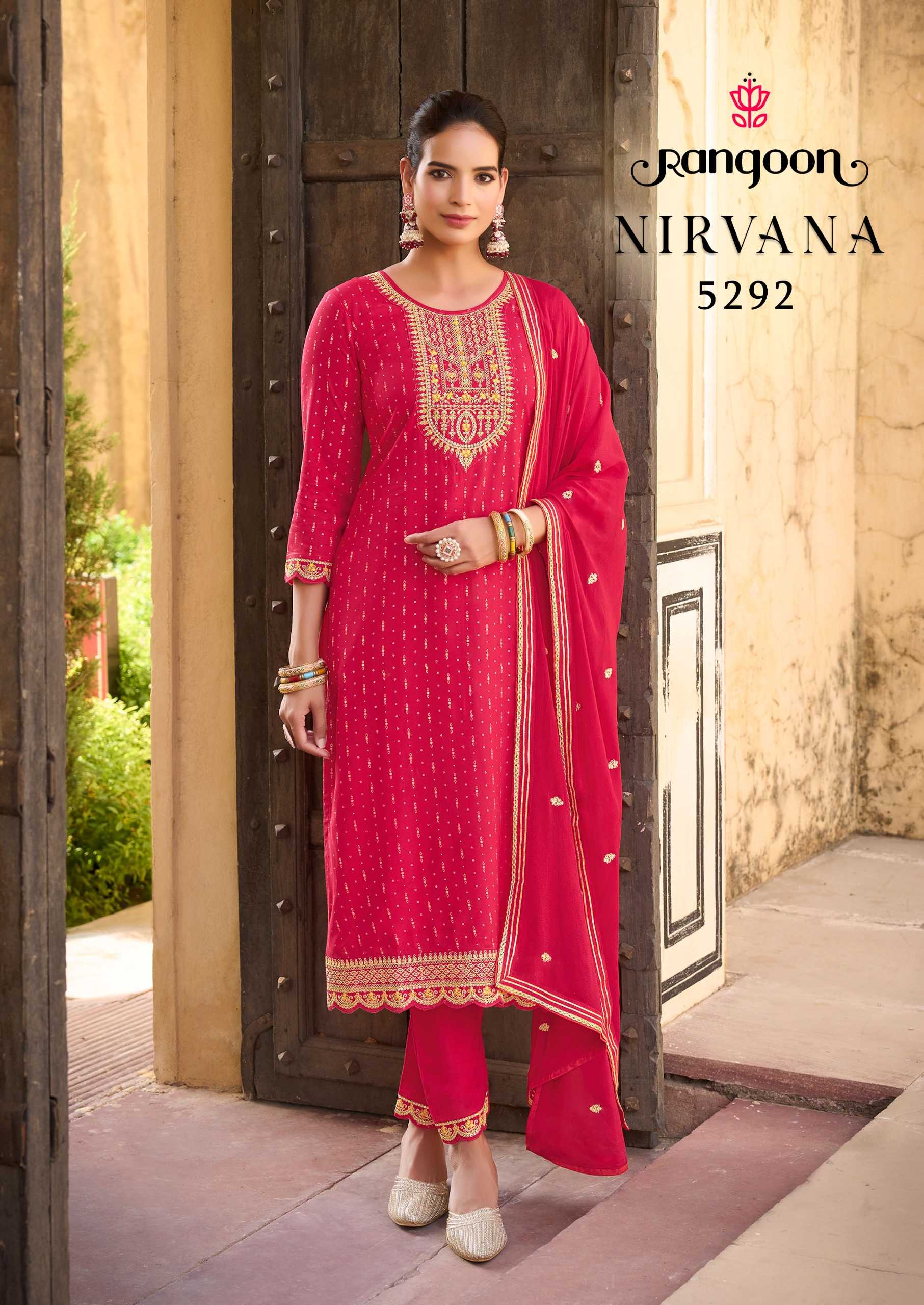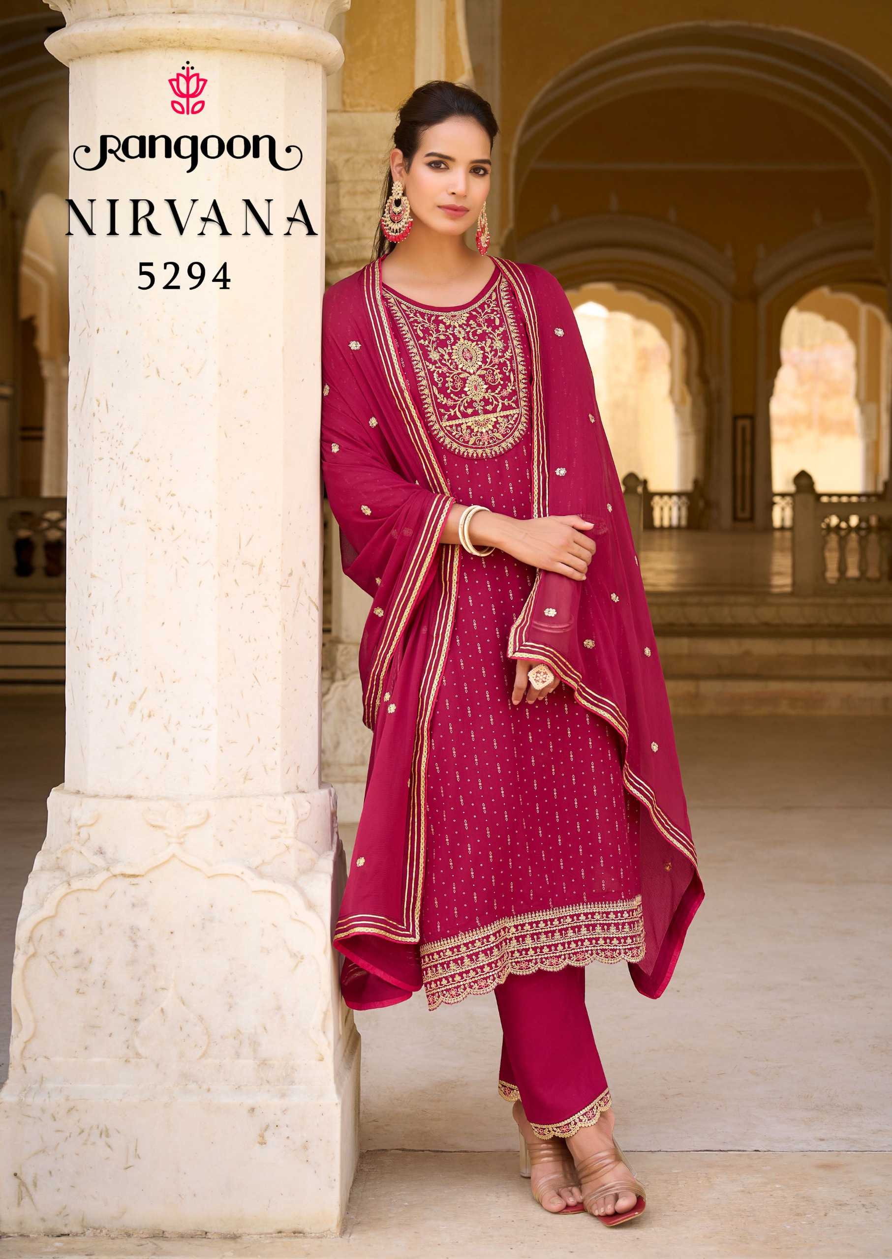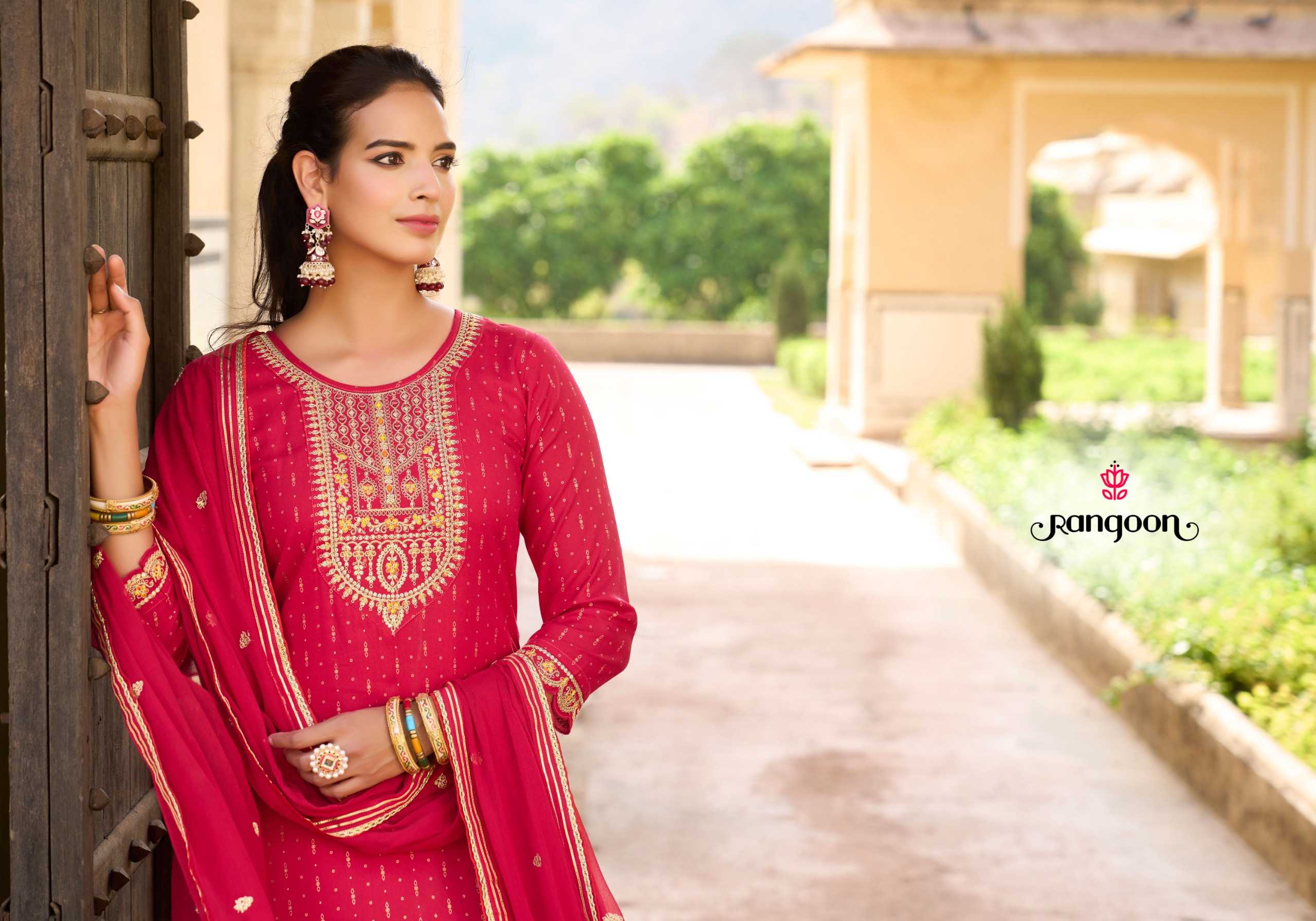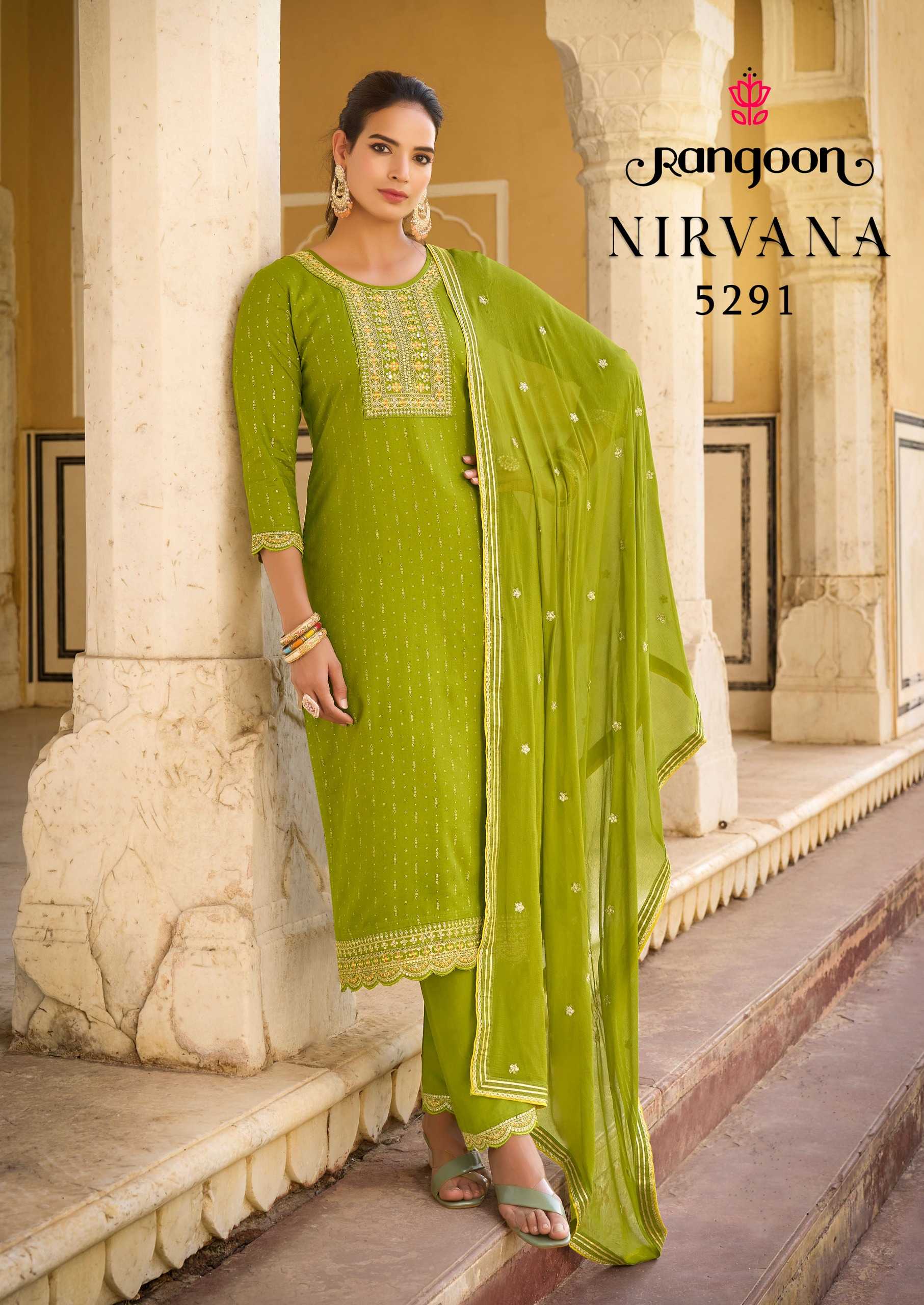 rangoon nirvana rayon embroidery work readymade occasion wear kurti pant dupatta