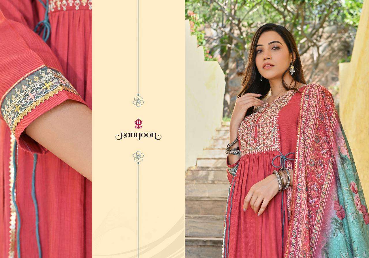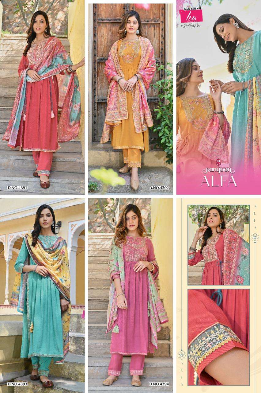 rangoon present alfa readymade 3pcs suits amazing work kurti pant and digital dupatta