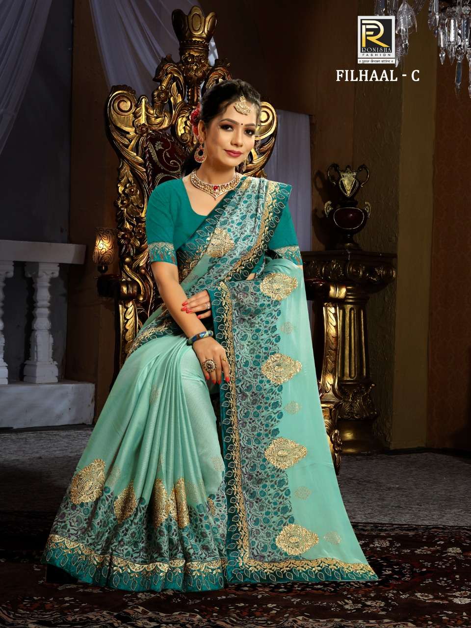 Ranjna Saree Filhaal Digital Print Fancy Work 3d Siroski Diamond Party Wear Saree Collection