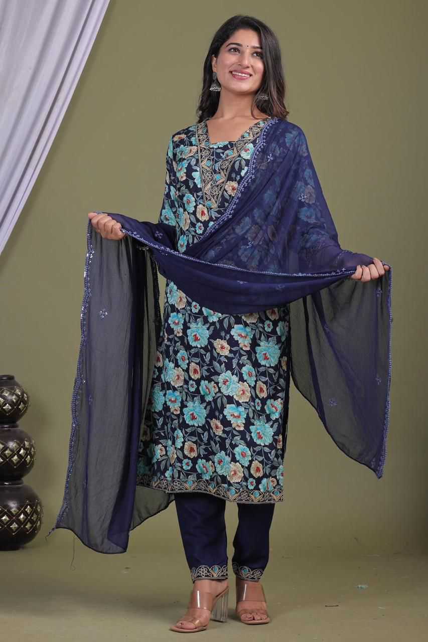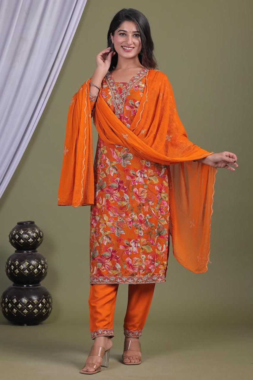 rayon foil print 3 pc top bottom and chiffon cutwork dupatta combo set