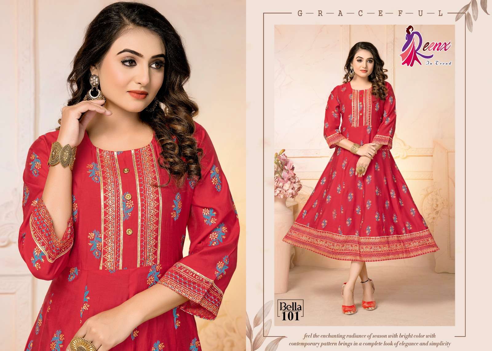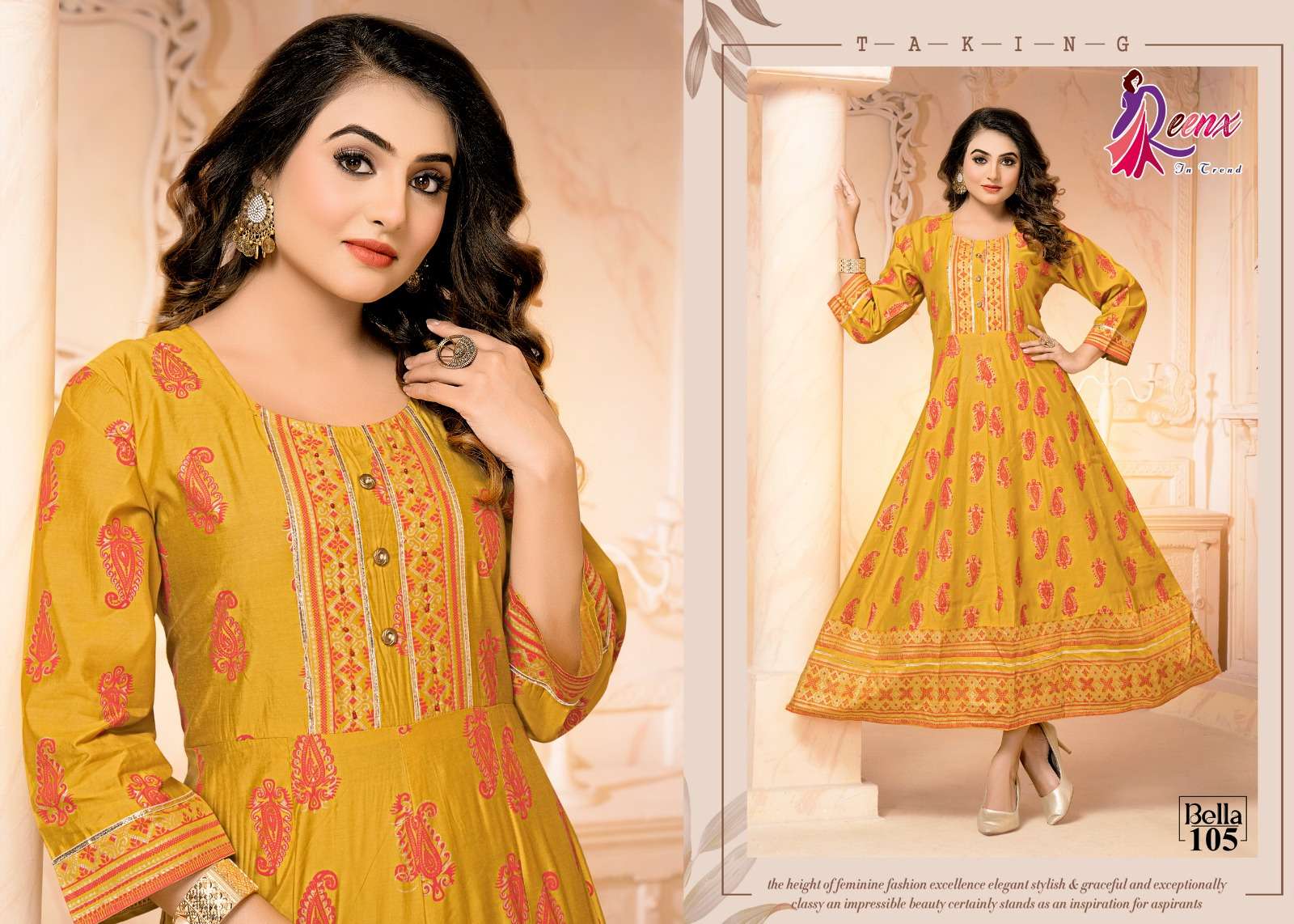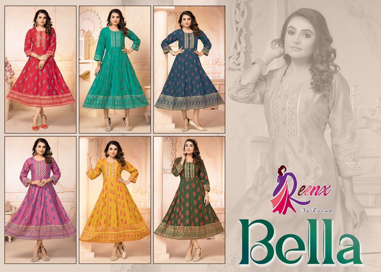 reenx present bella fancy anarkali touch kurti supplier