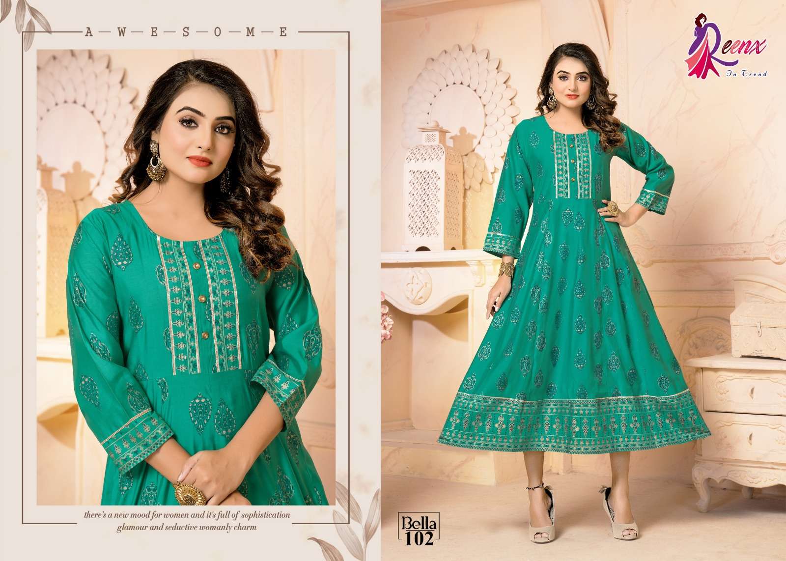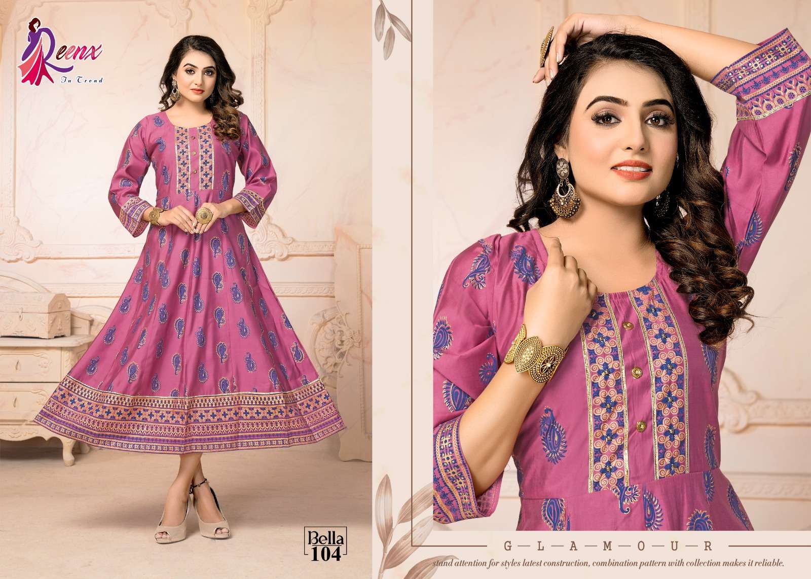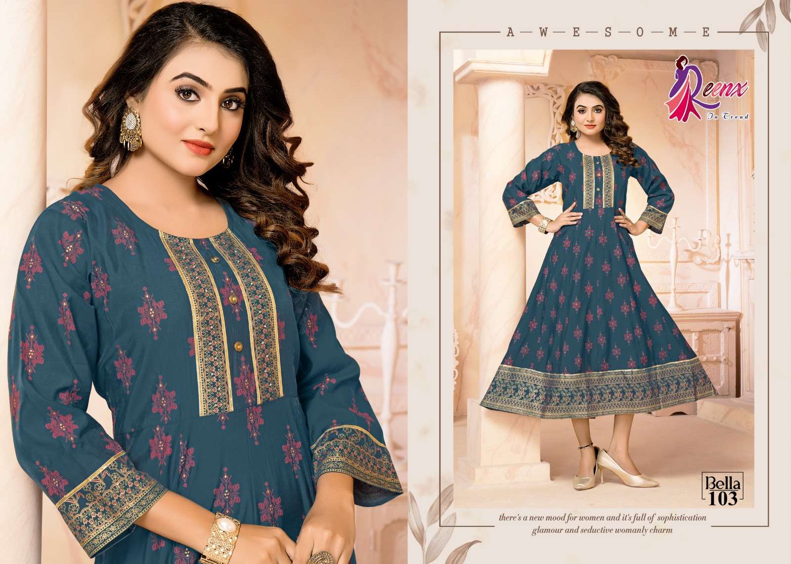 reenx present bella fancy anarkali touch kurti supplier