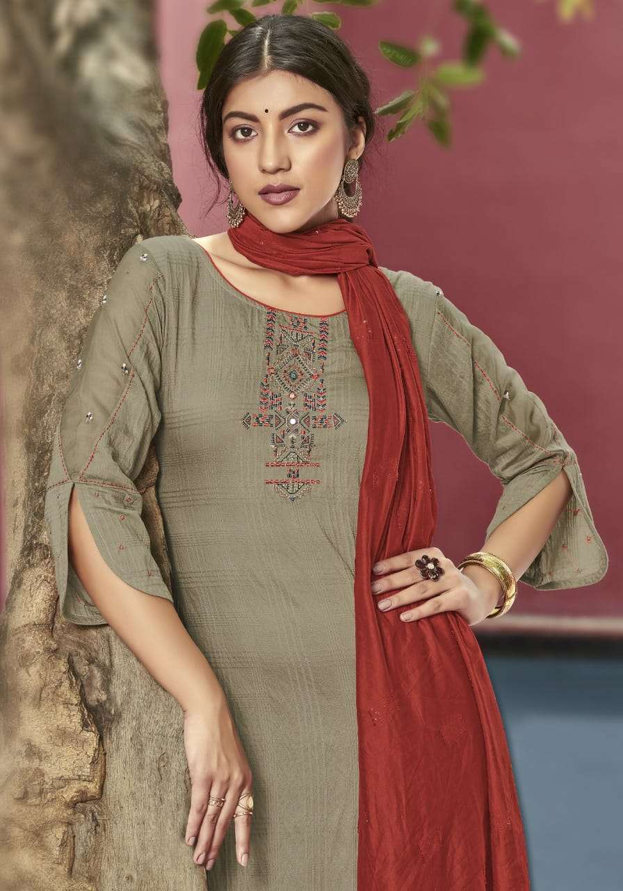 Koodee â® Our awesome hit series in Kurti Pant With Dupatta Sets For Upcoming Festival Season Brand Name : KOODEE Catalog : Renu-1 Designs : 6 Fabric:- Top:- Nylon Viscose Stripe Pattern With Khatli Work Bottom :- Cotton Slub Lycra With Stylish Embroidery Work Duppata :- Nylon Viscose With Sequence Weaving Work: Embroidery + Khatli Work Size : S(36),M(38), L(40), XL(42), 2XL(44), 3XL(46) Dispatching :- Ready to Ship  Rate :- 1095+ 5% gst |