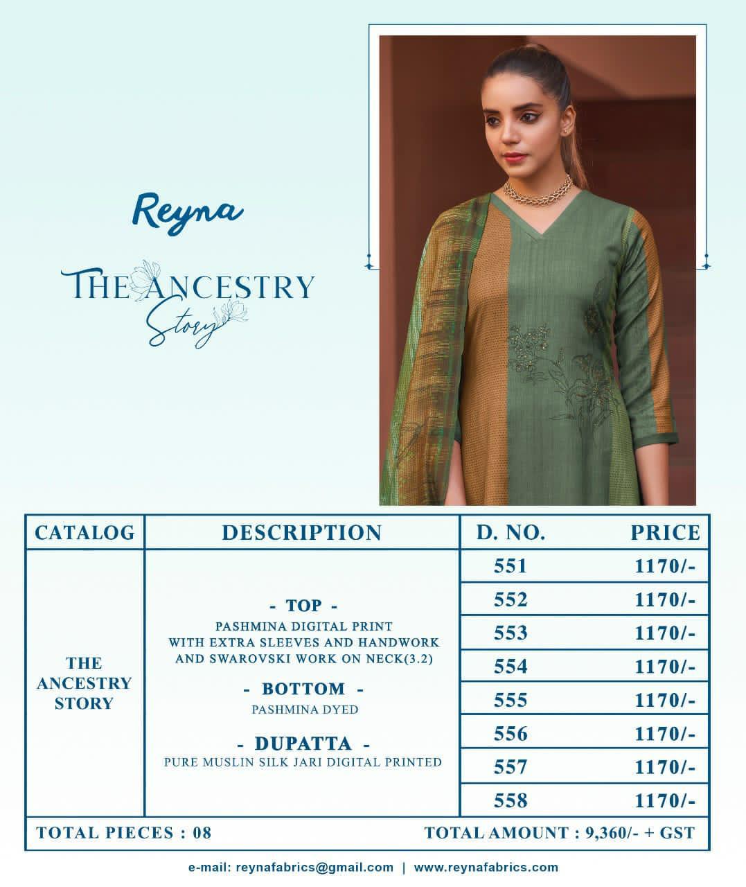Reyna Presents The Ancestry Story Pashmina Woolen Heavy Collections Suits