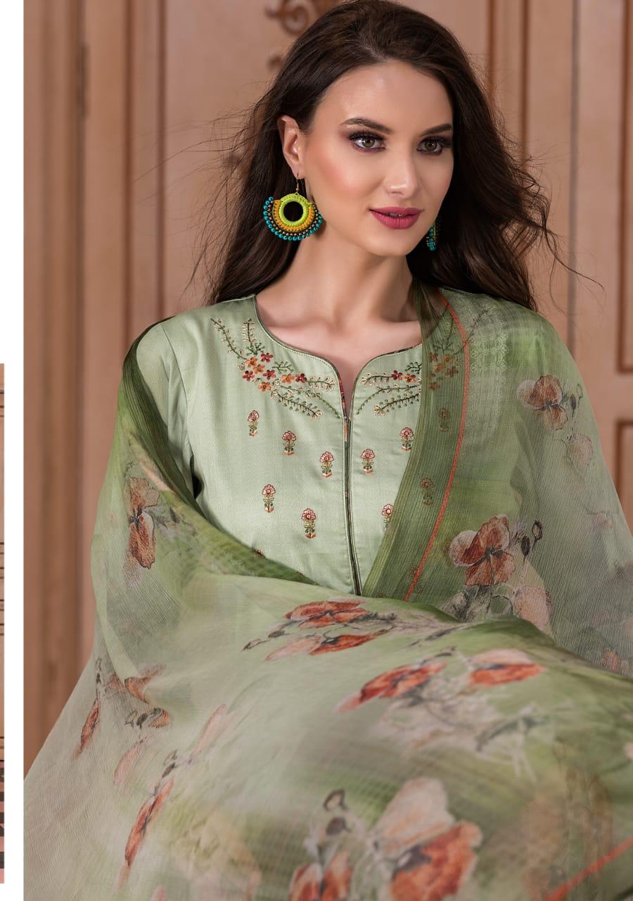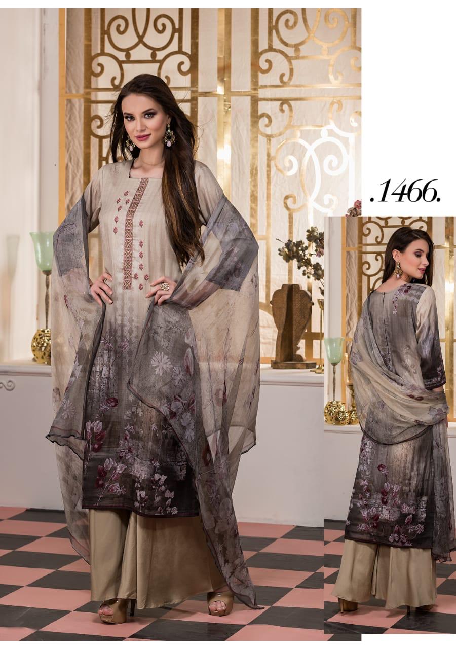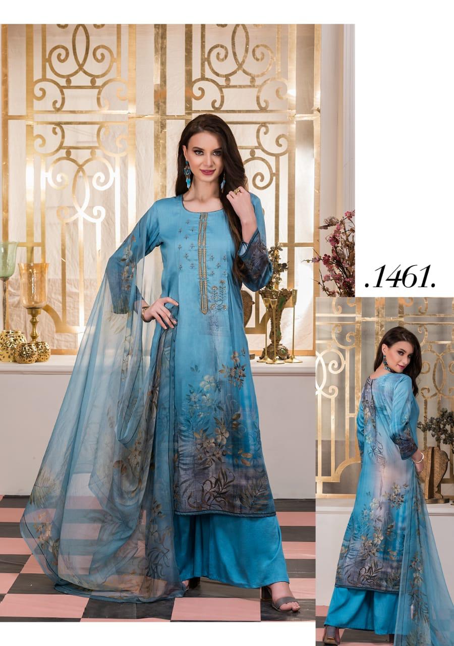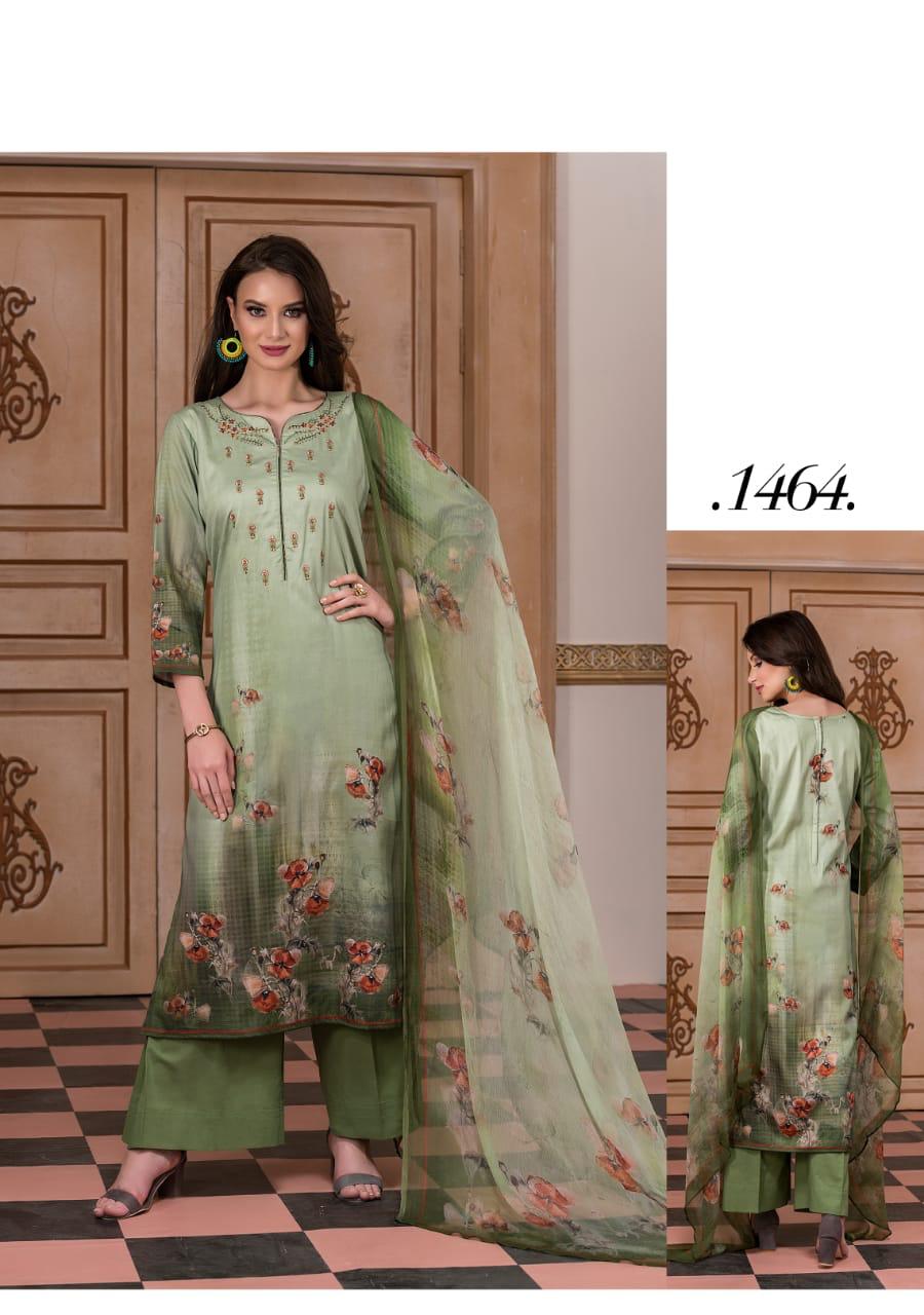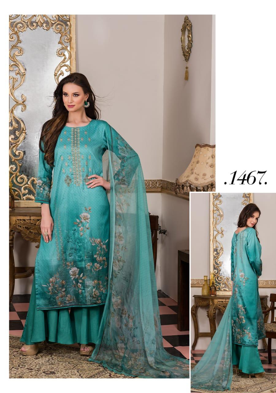 RIVAA Presents - SUMEDHA Top-Heavy jam satin digital print with fancy embroidery Bottom-Heavy jaam satin dyed Dupatta-Pure bemberg chiffon digital print Rate-1355₹ 5%Gst Applicable Set to set Delivery 2 Days |