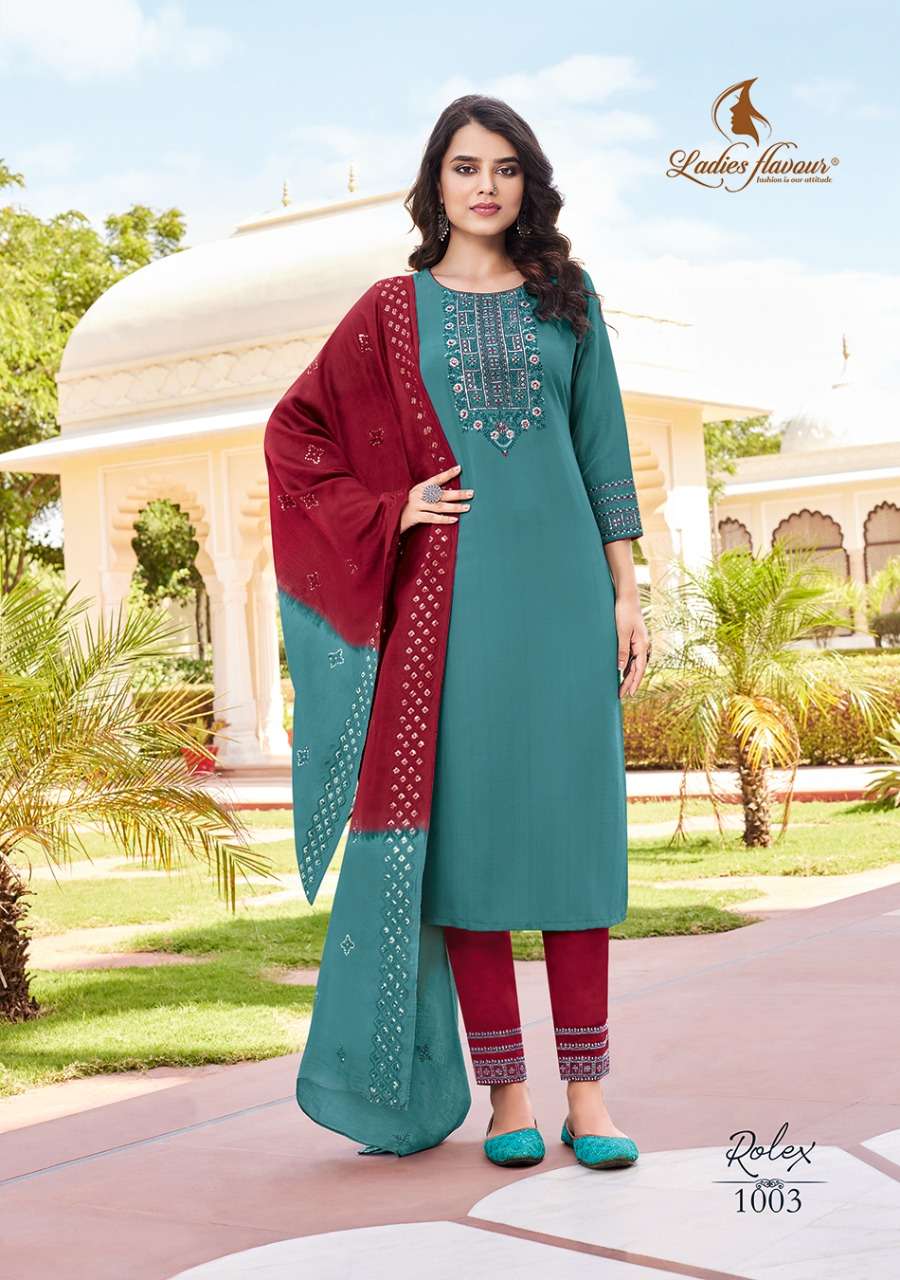 rolex by ladies flavour chinon work 3 piece readymade suits