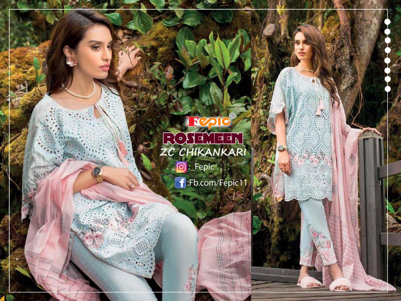 Rosemeen Zc Chikankaari By Fepic Pure Cotton Pakistani Suits Concept At Wholesale Rate