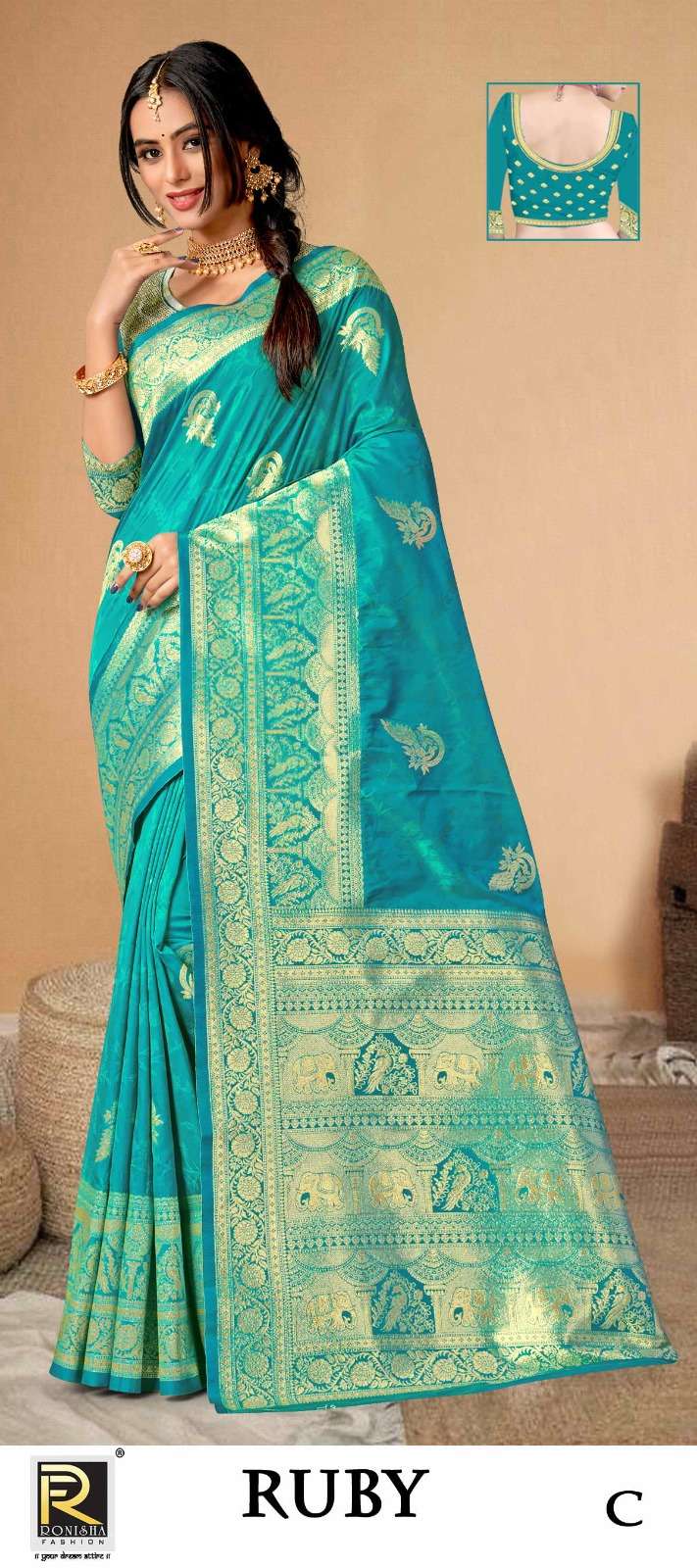 RUBY BY RANJNA SAREE FABRICS BANARASI SILK 50*600 FANCY DESIGNER SUPER HIT COLLECTION