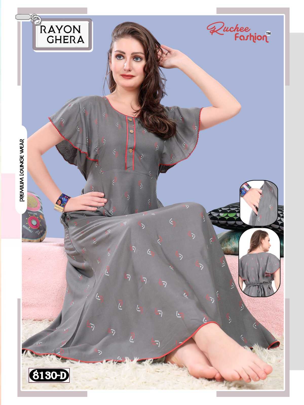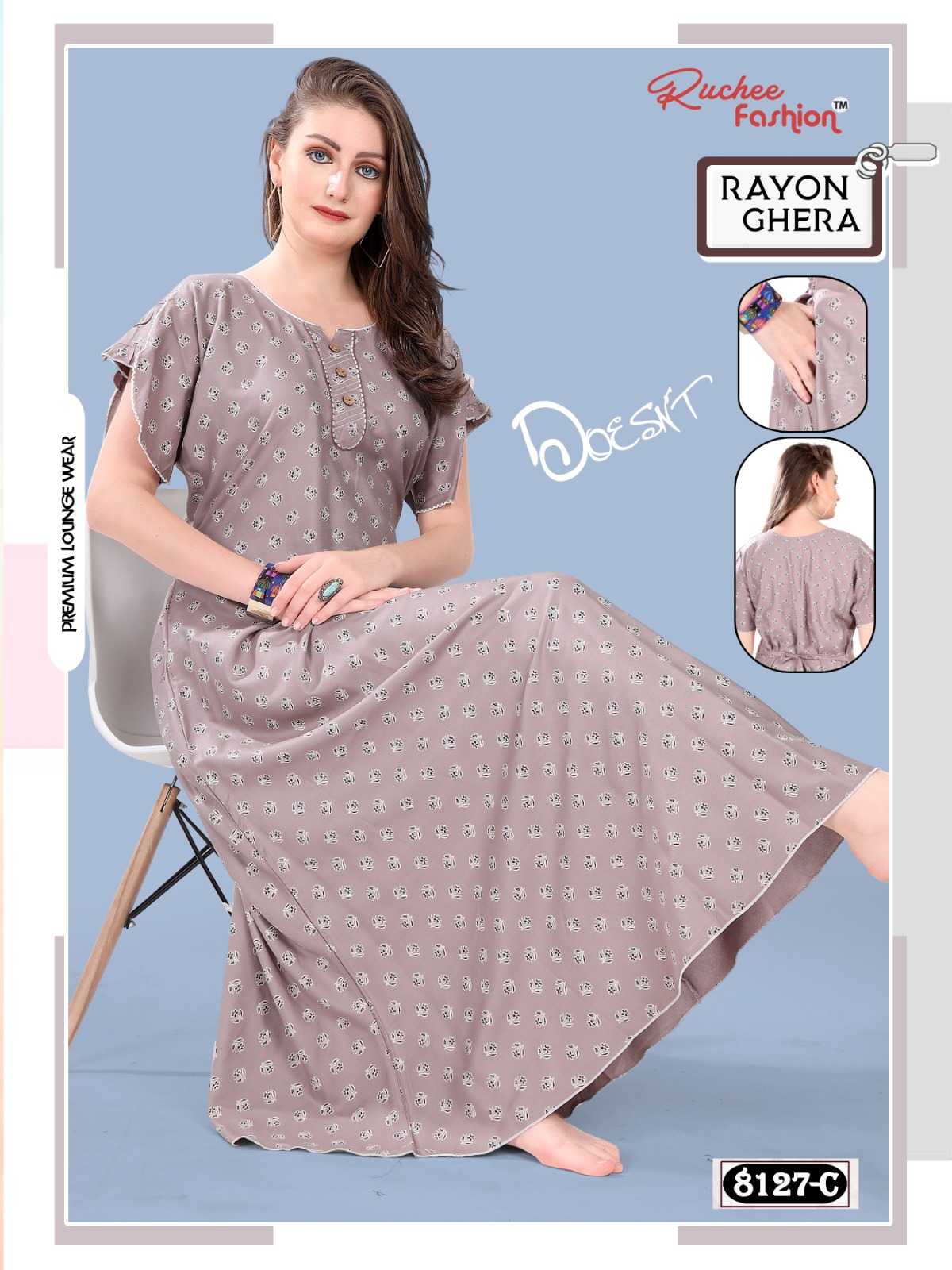 ruchee 8130 & 8127 readymade rayon ghera fancy night gown