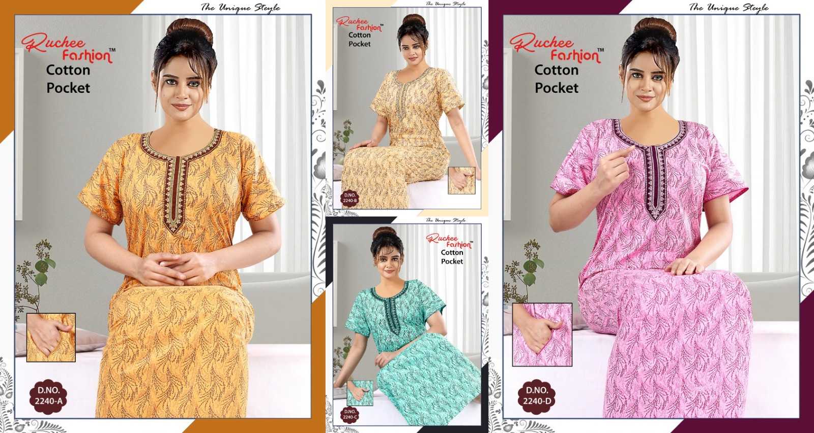 ruchee fashion cotton poket embroidery 2239-2240 fancy night gown