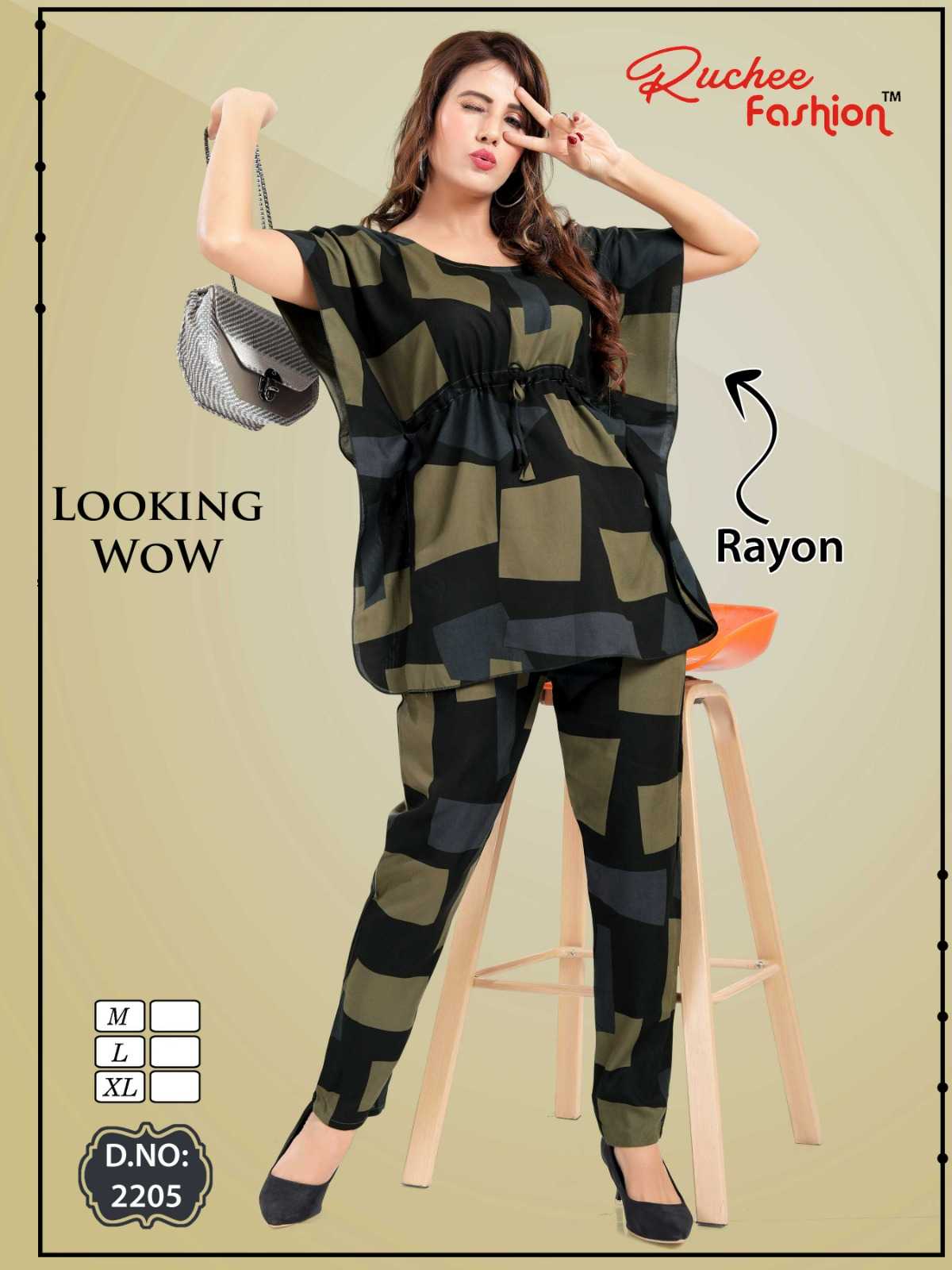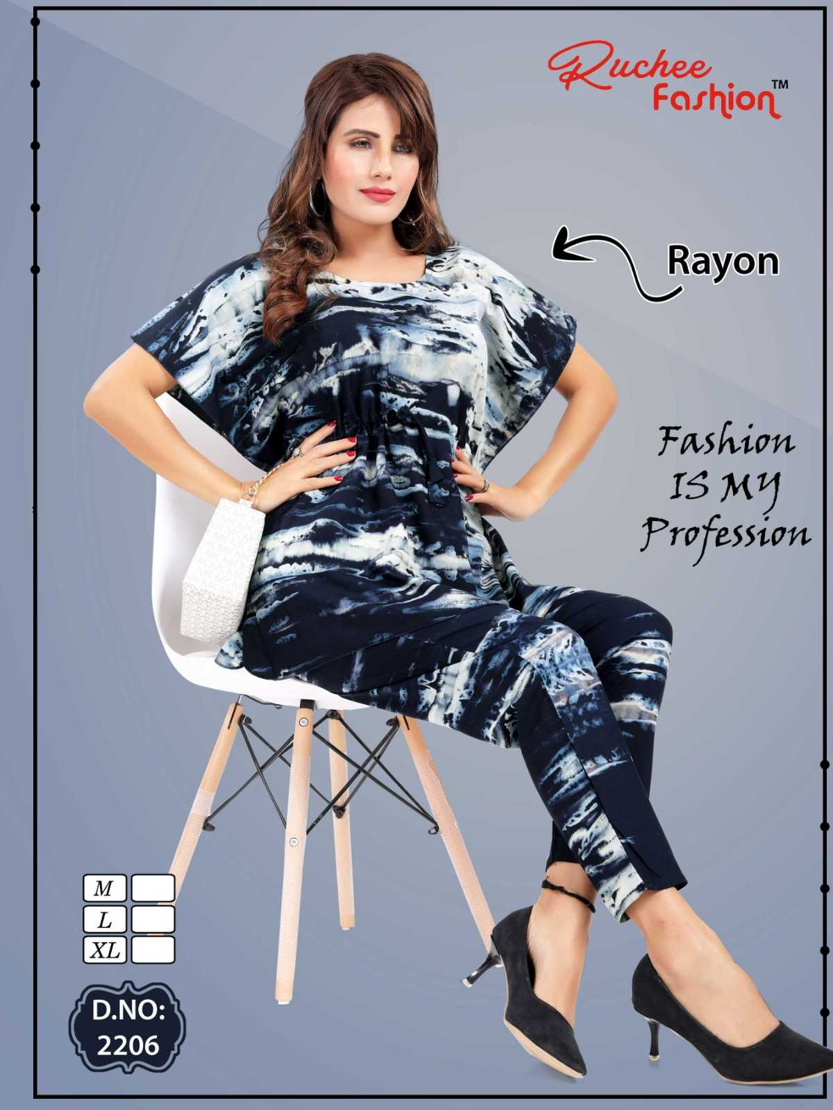 BOOK CATALOGUE RAYON KAFTAN CORD SET ON KRISHNA CREATION. CALL ON +91-8866778727.