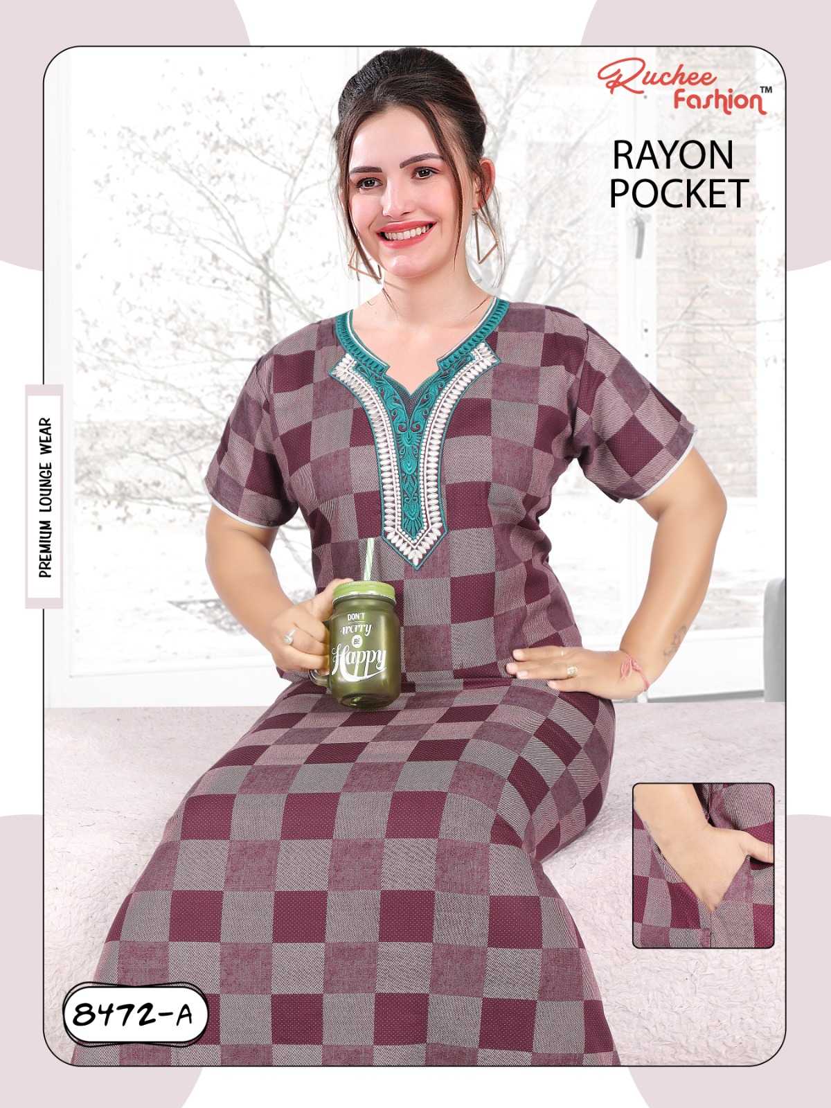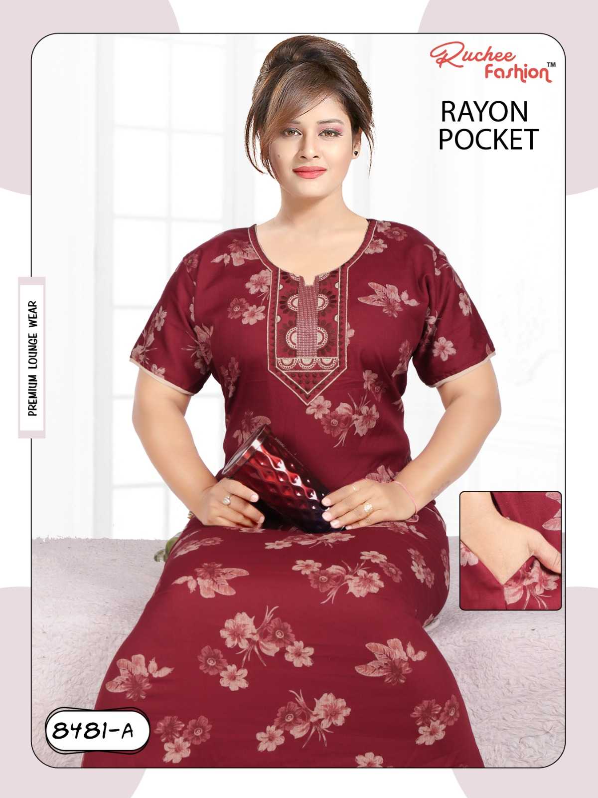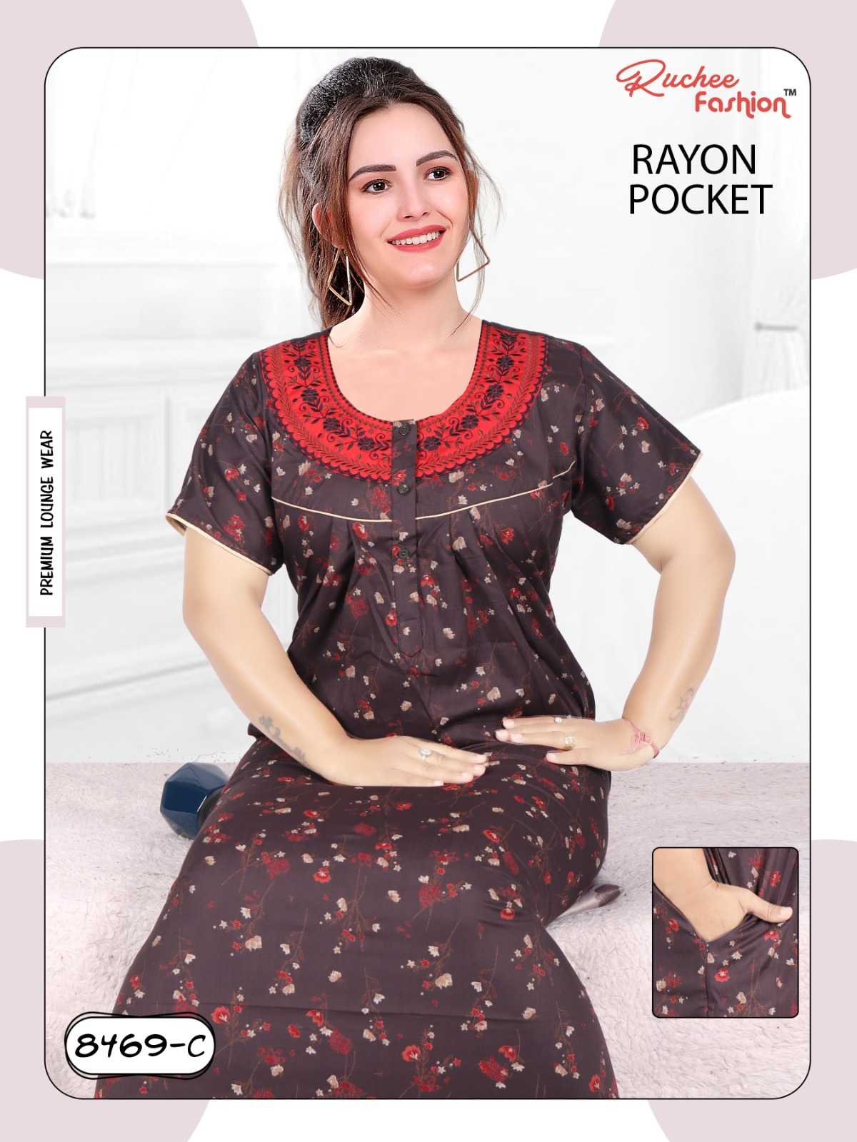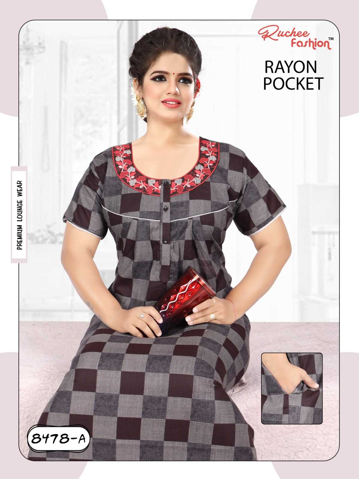 ruchee fashion rayon neck embroidery chunnat night wear gown