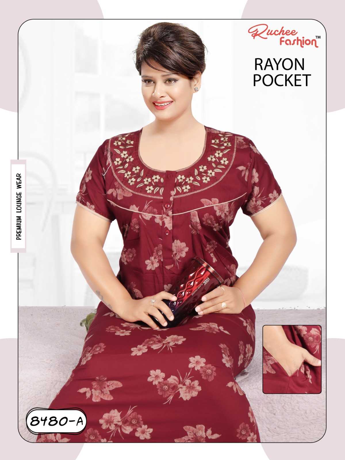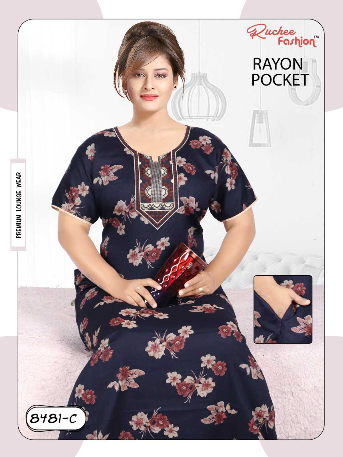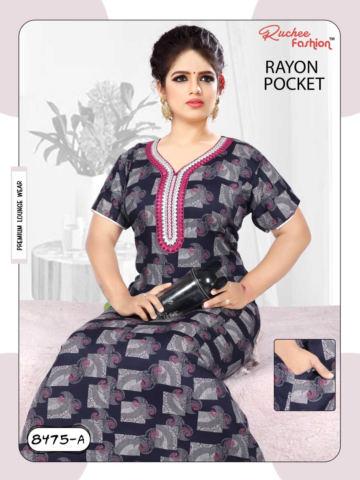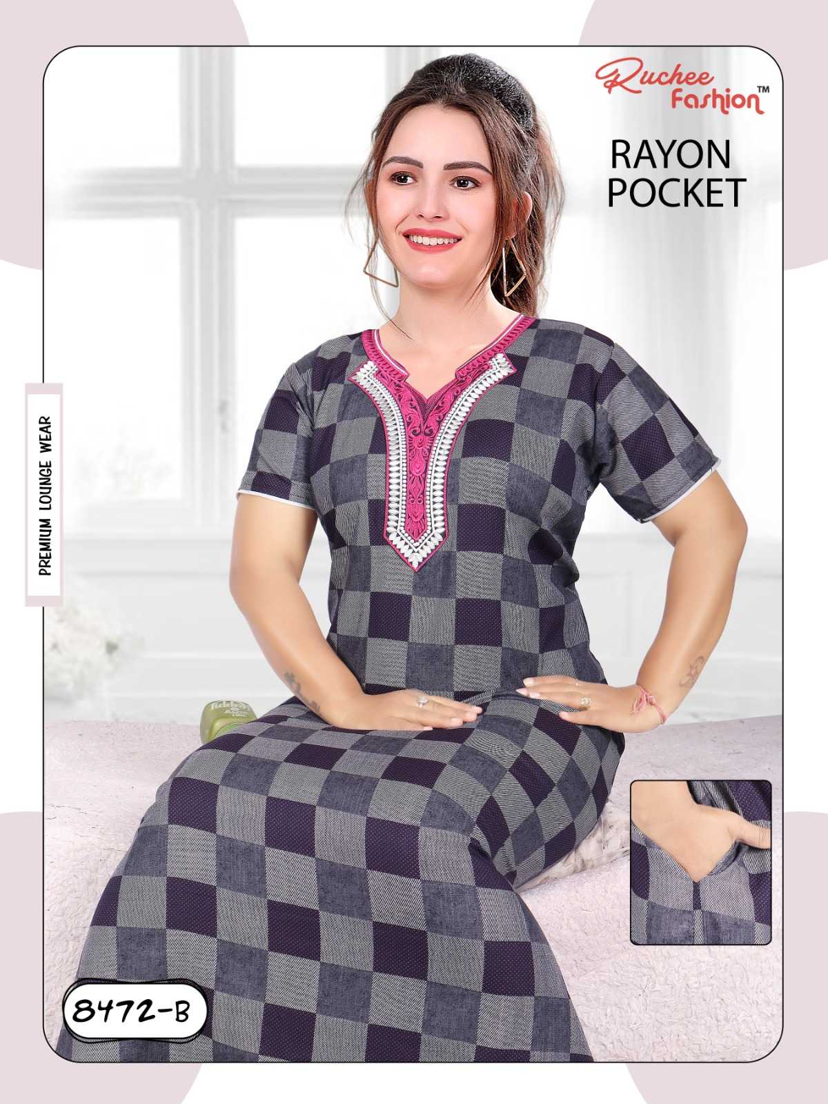 ruchee fashion rayon neck embroidery chunnat night wear gown