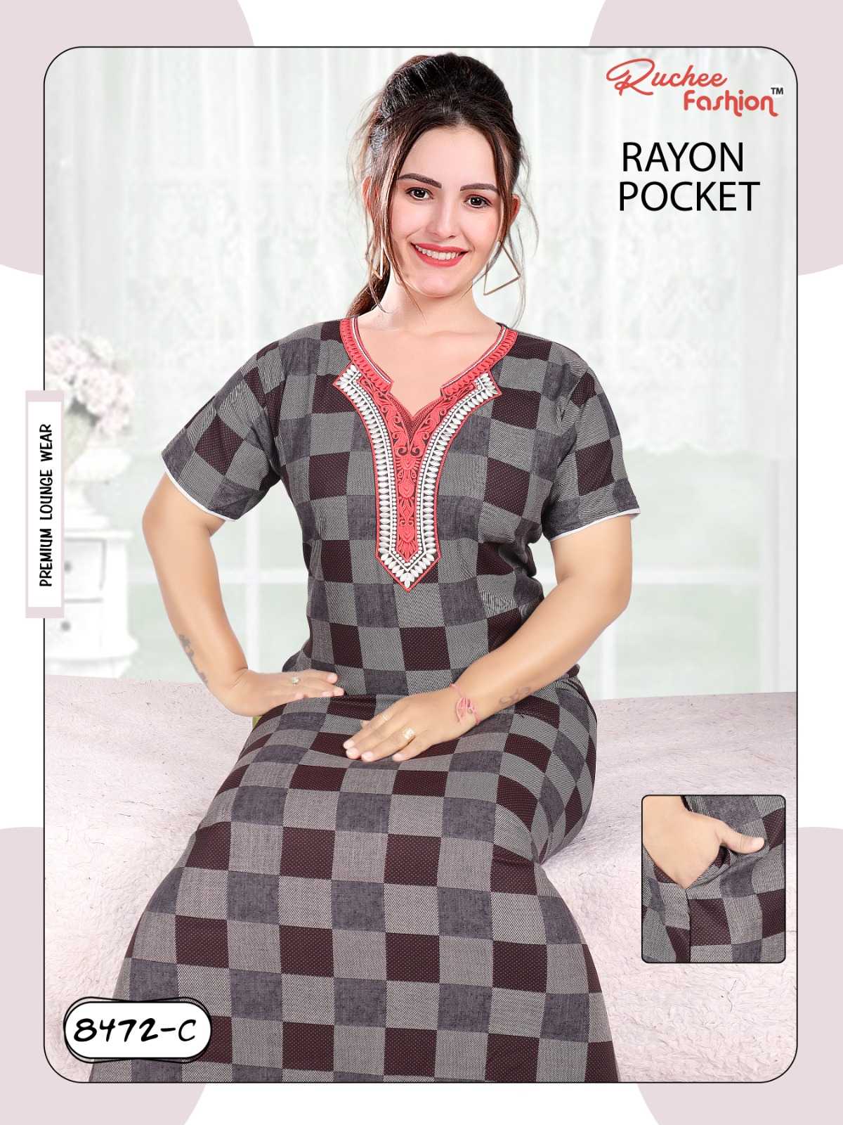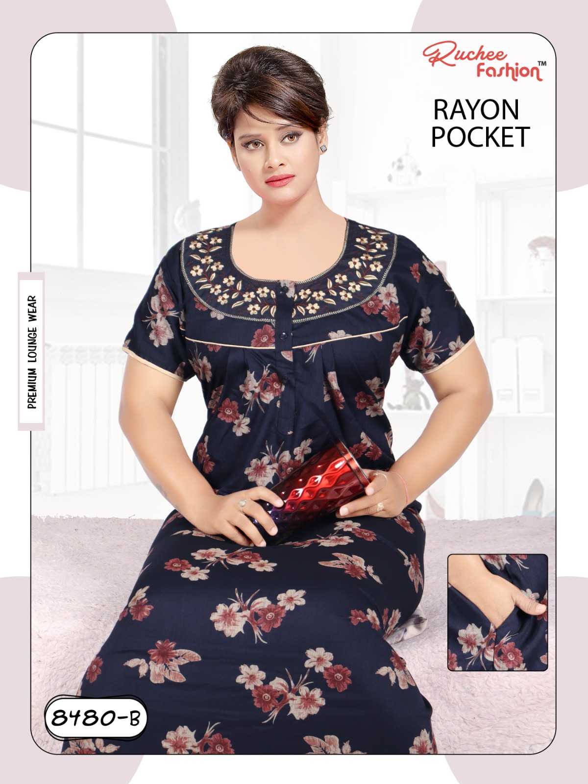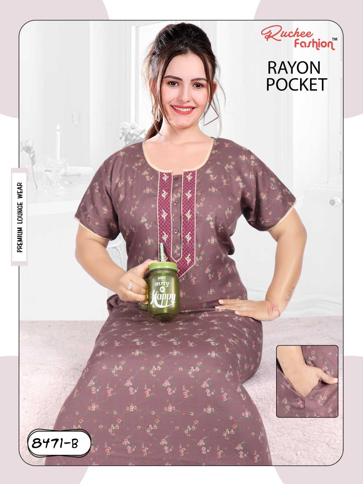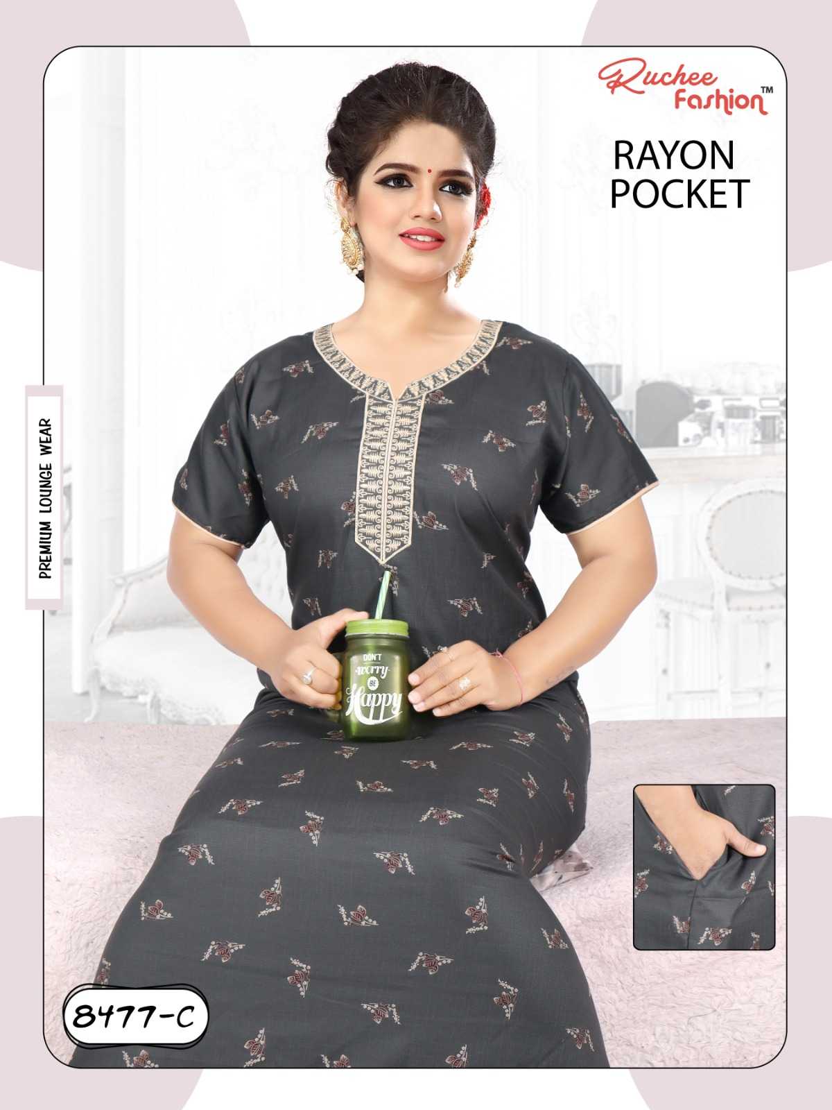 ruchee fashion rayon neck embroidery chunnat night wear gown