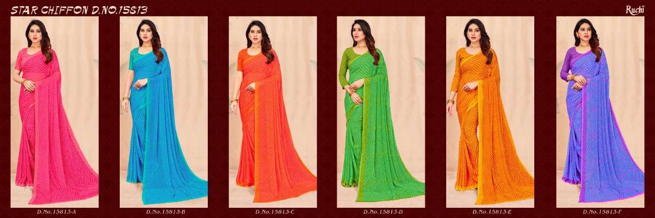 ruchi 15813 star chiffon printed lehriya special fancy sarees dealers in surat