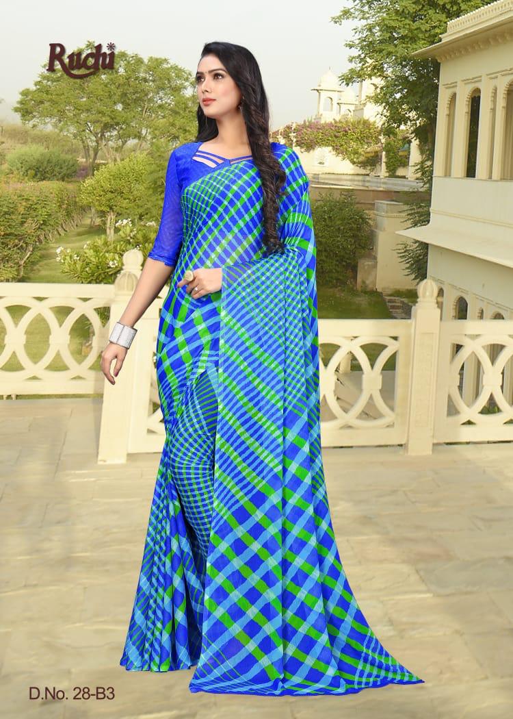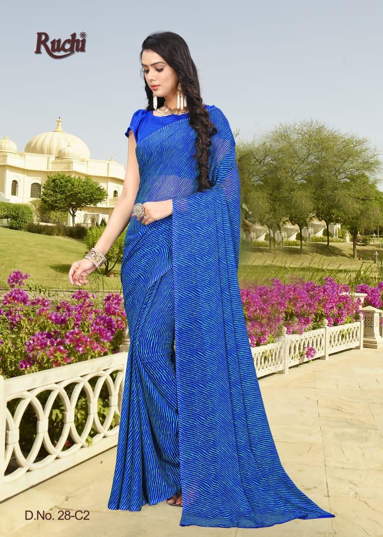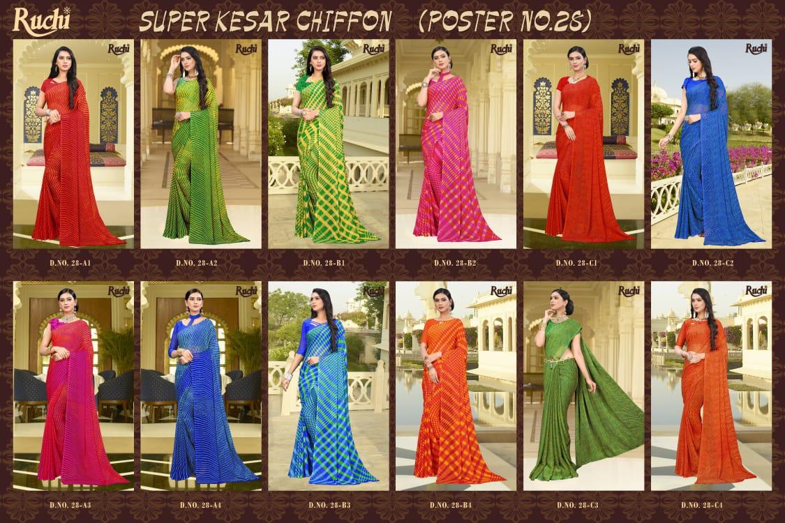 Ruchi Sarees. 1. Super Kesar Chiffon Poster No.28. (Lehriya) 2. No.of pcs. 12. Rate -360 per Pcs . GST 5 Percent Extra. Fabric- Chiffon . Delivery from 25/11/2019 |