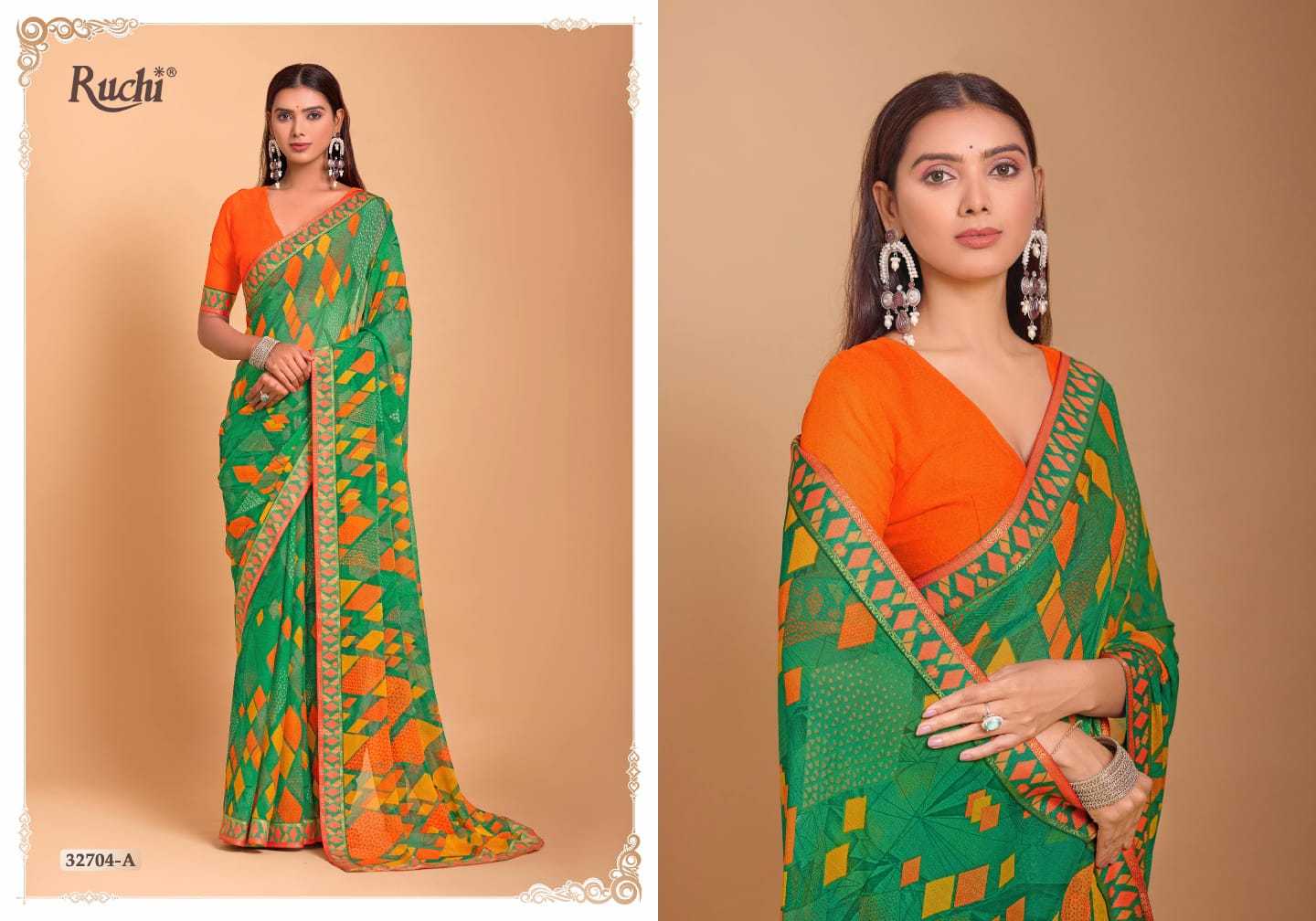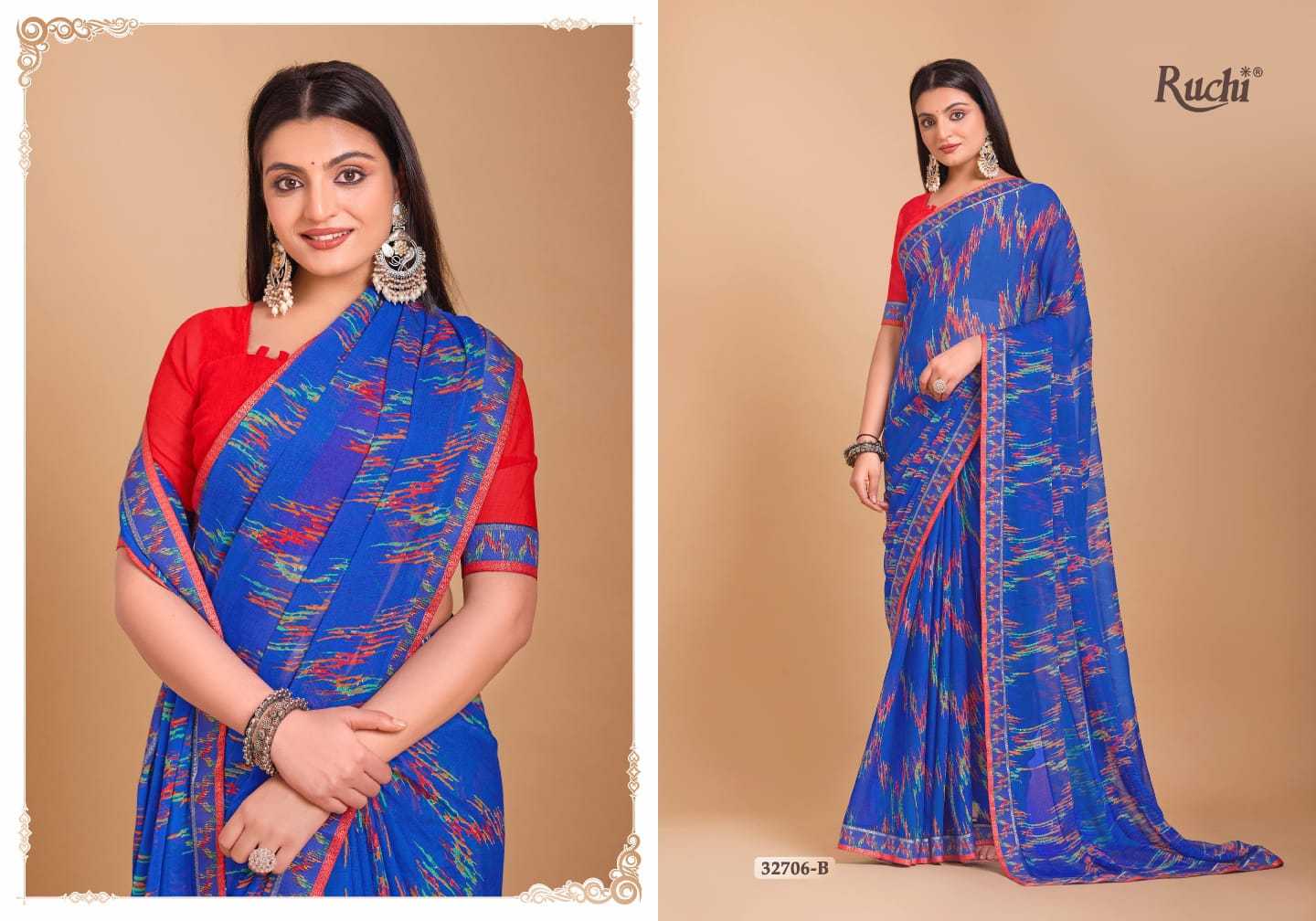 ruchi presents vanilla ragular use fancy chiffon digital print saree with blouse