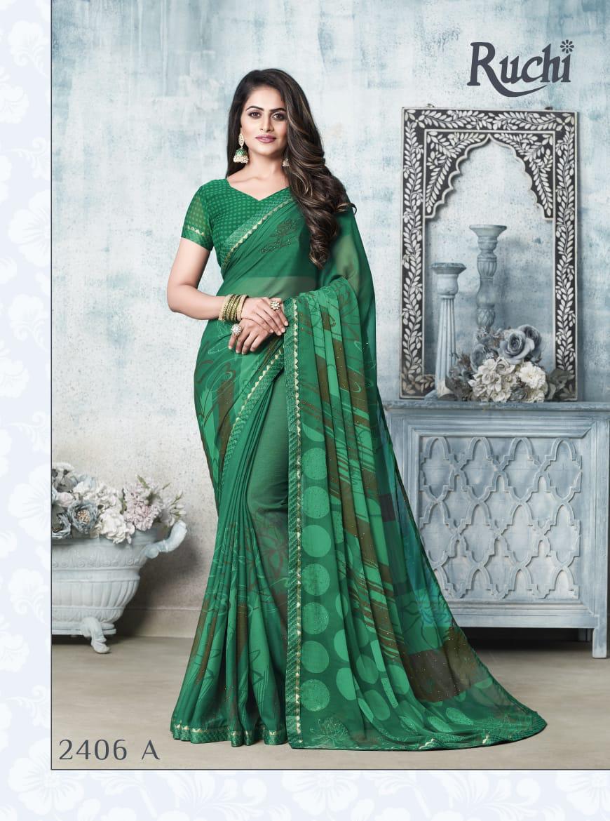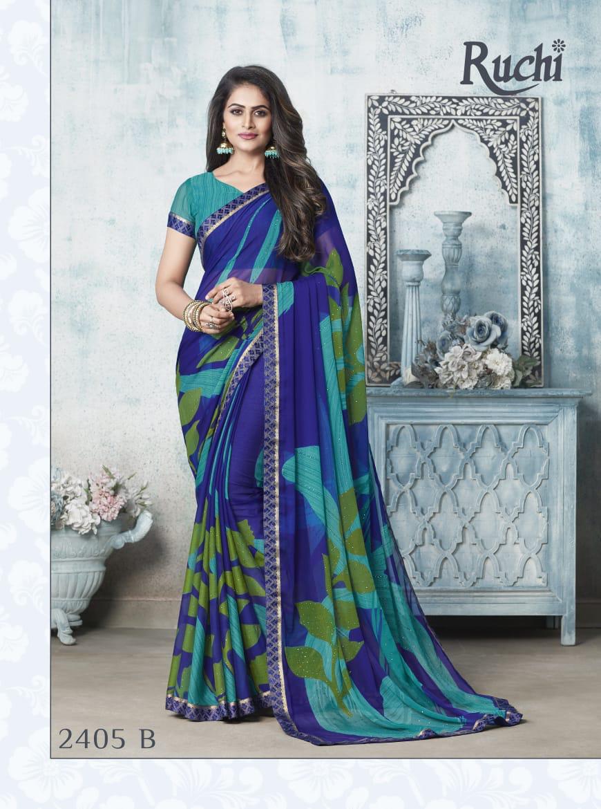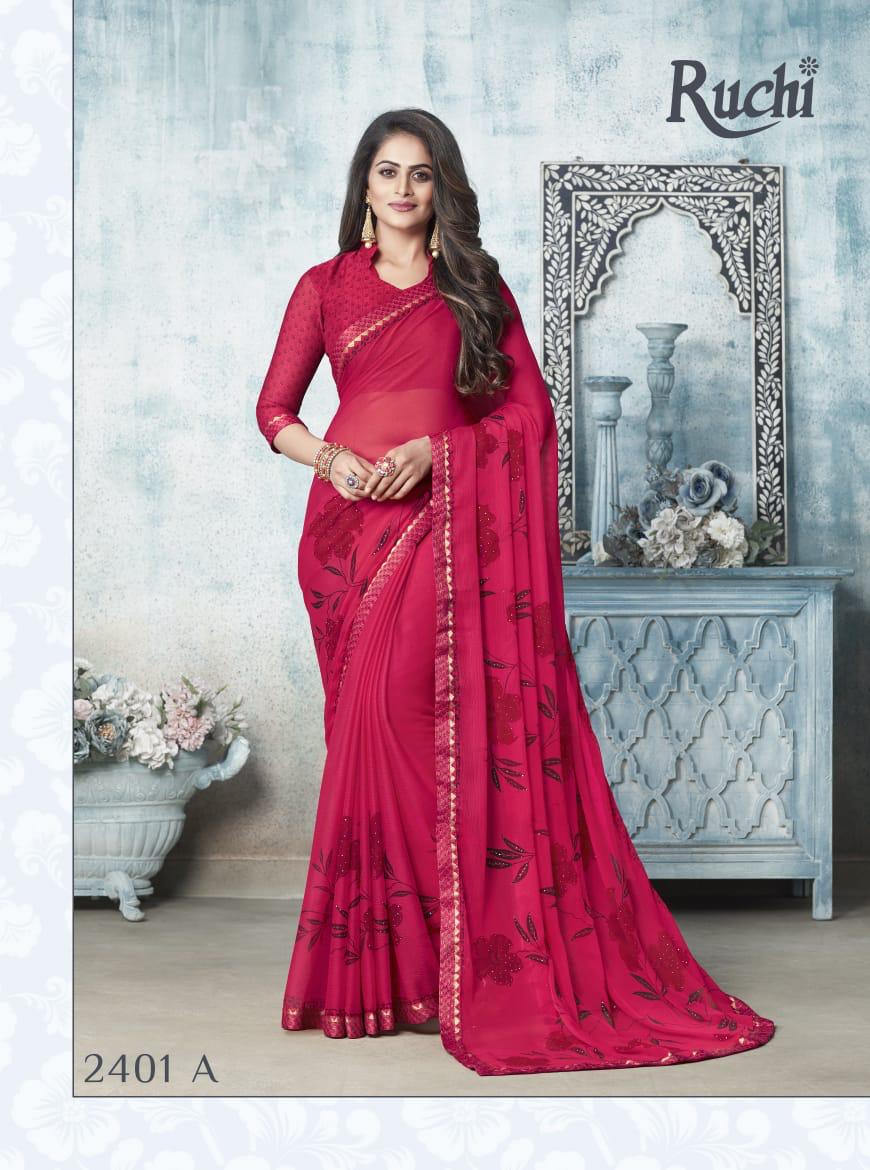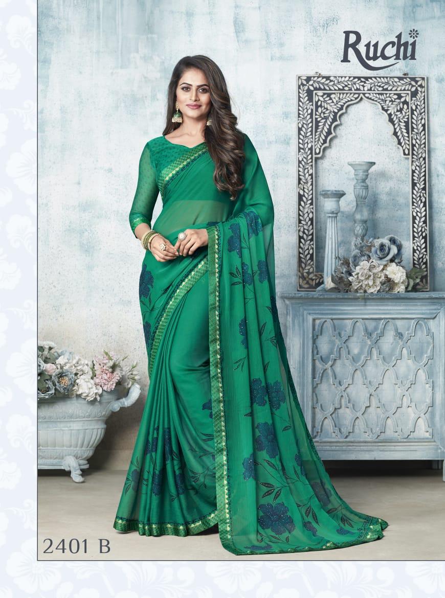 Ruchi Rainbow Chiffon With Diamond Work Printed Colourful Saree
