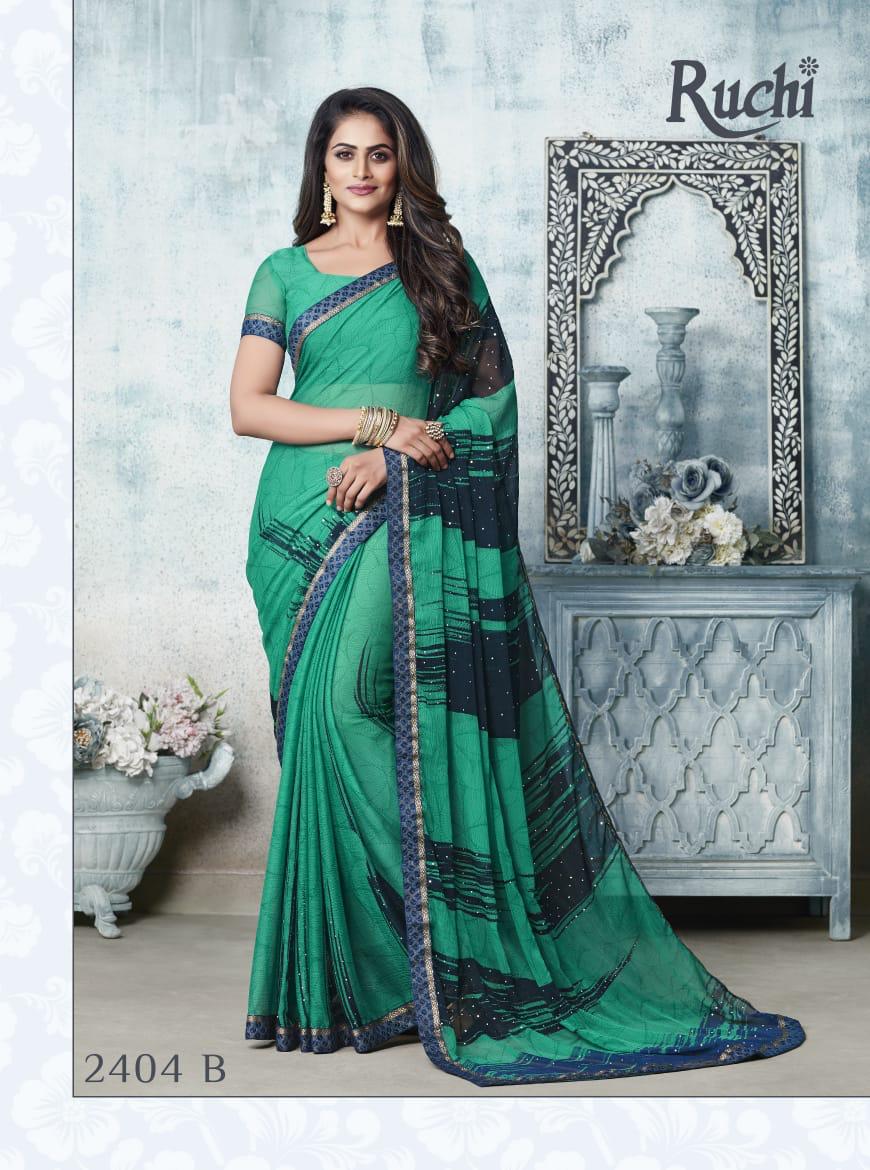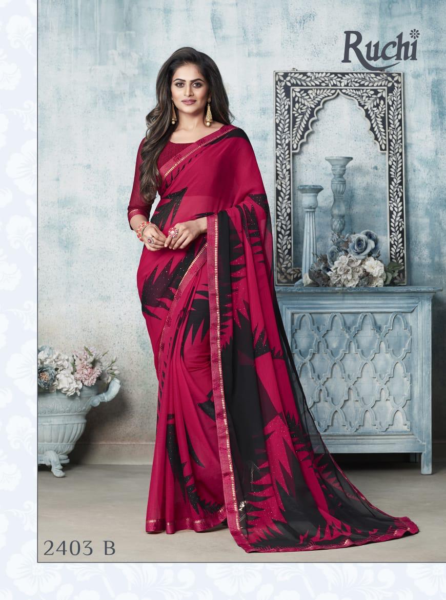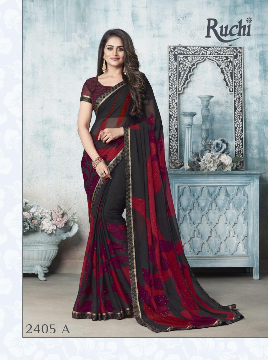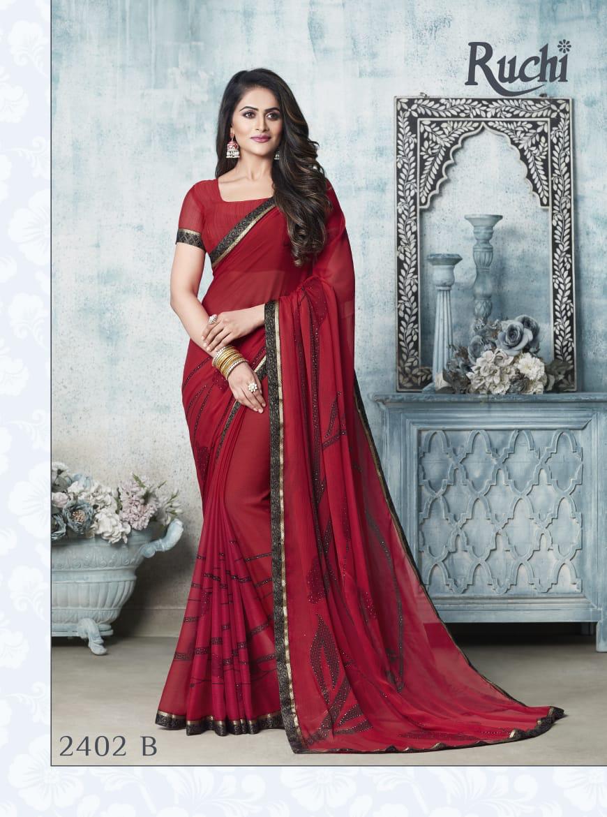 Ruchi Rainbow Chiffon With Diamond Work Printed Colourful Saree