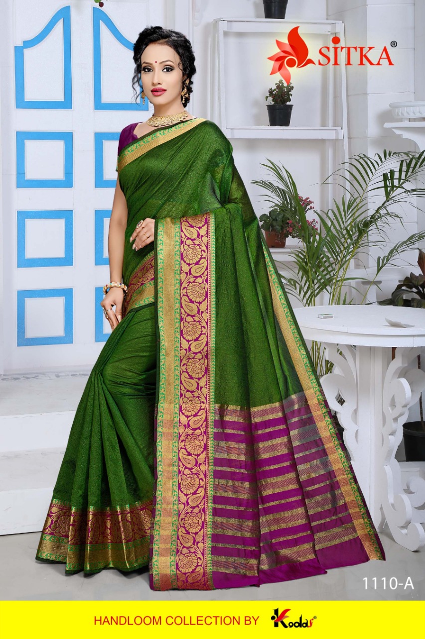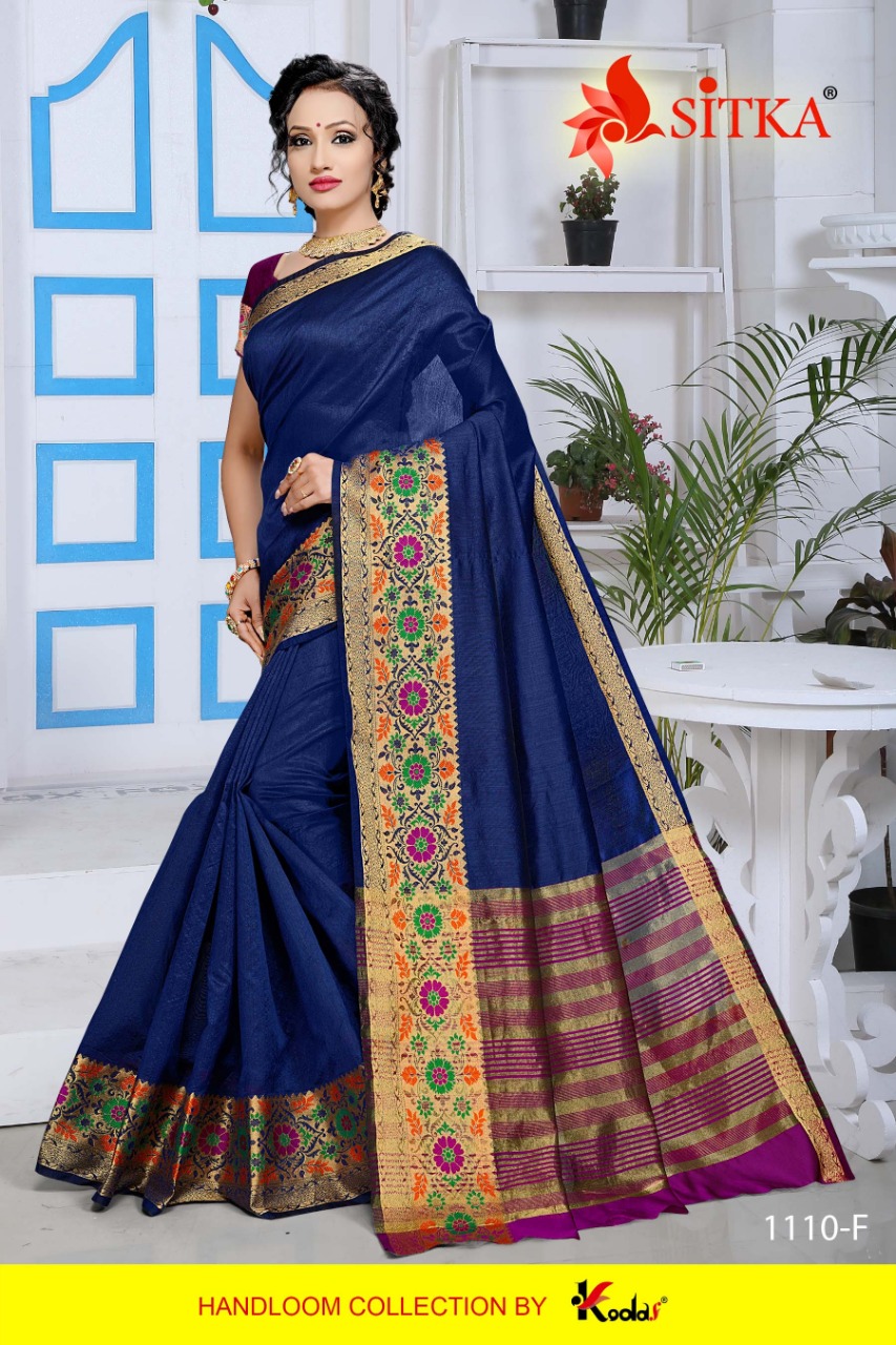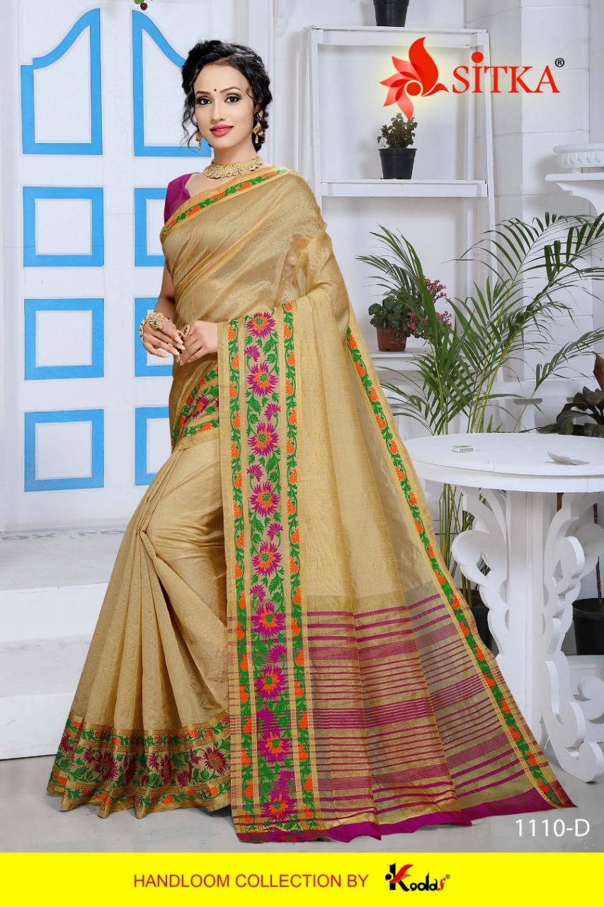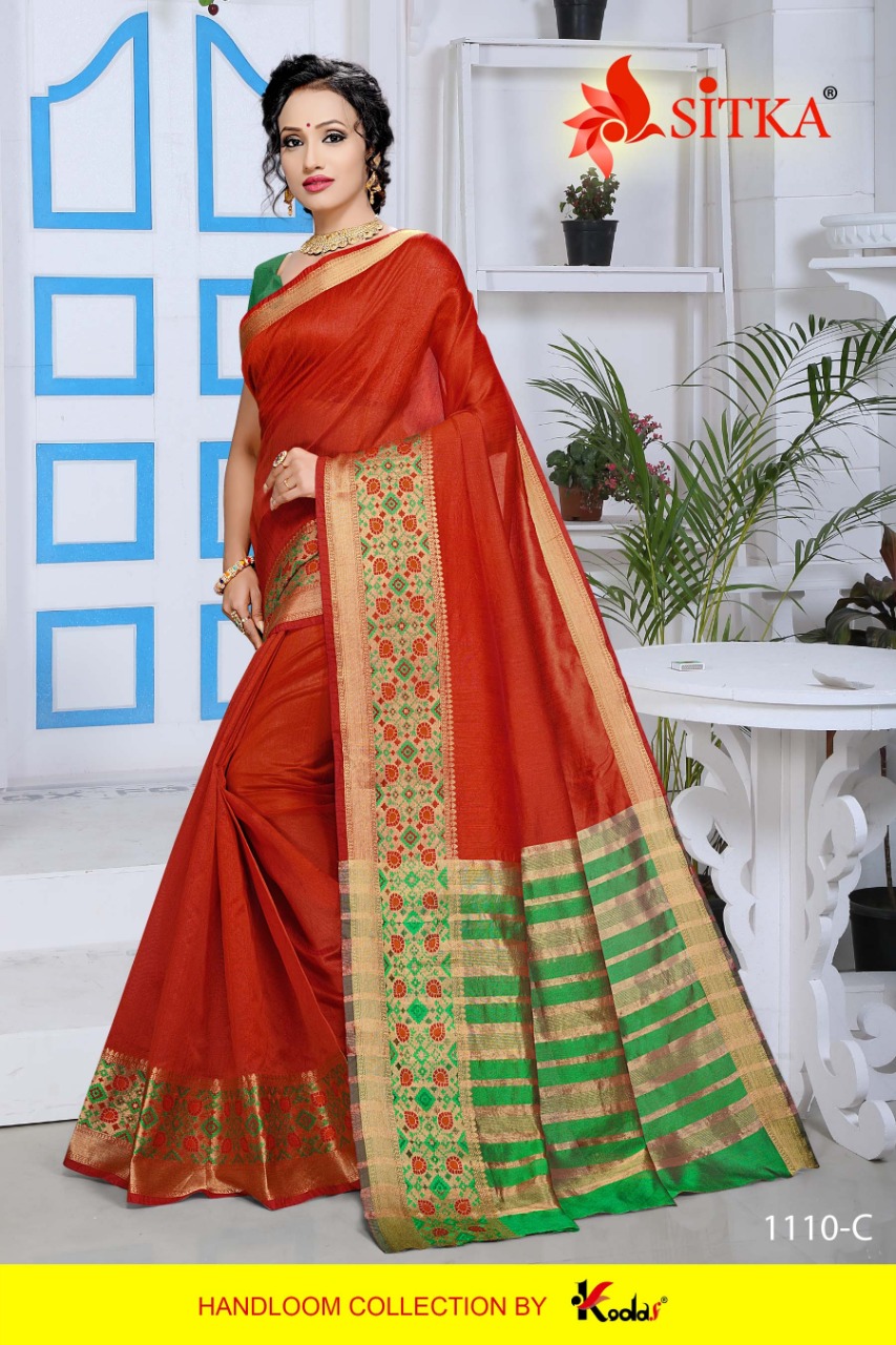 SITKA Brand Launched New Saree catalog Catalog Name : RUHAAB-1110 Brand - SITKA Fabric : COTTON SILK DESIGNER SAREE MOQ - 8 Box Rate : 465/- +5% GST With Out Box Rate : 445/- +5% GST Length : 6.3 mtr Only full set |