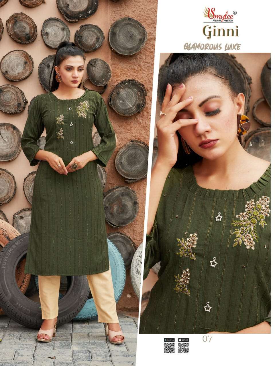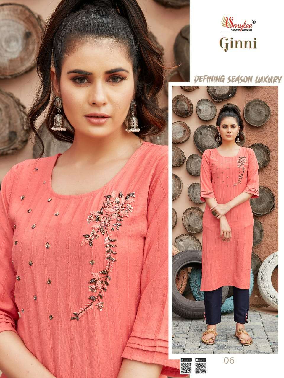 | Other Details | GINNI WITH PAINT  CATLOG By Rung . * Kurti with Pant catlog * FEBRIC.                TOP.. Heavy WIVING VALVET  LINING  riyon  WITH  HEAVY  HAND  WORK PC's. 8 Size. M. L. XL. XXXL Rate Wholsale rate 735 Per PC’s . Set to set. GST 5 Percent Extra, |