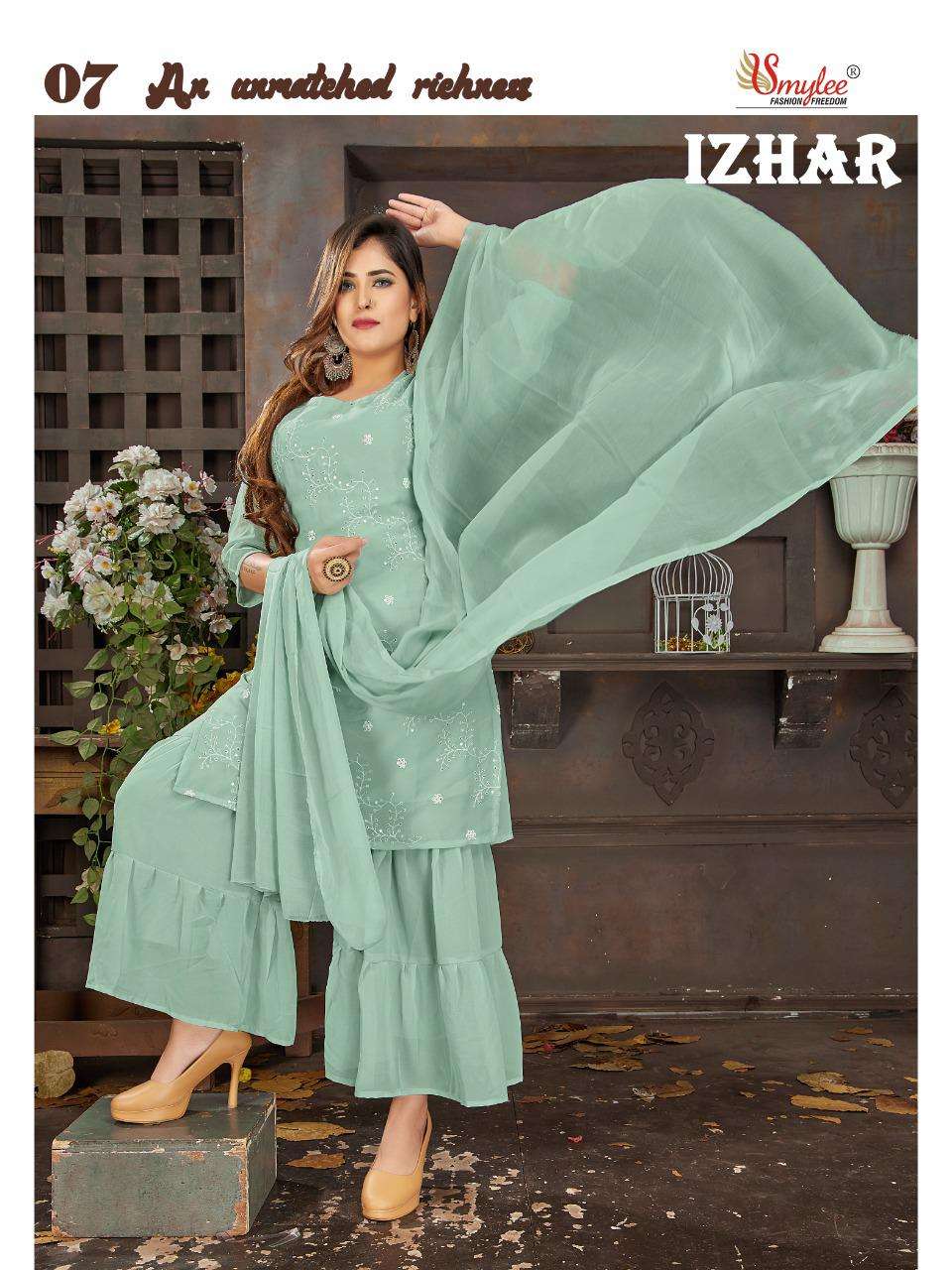 Rung izhar fancy kurti with sharara & dupatta available at lower price