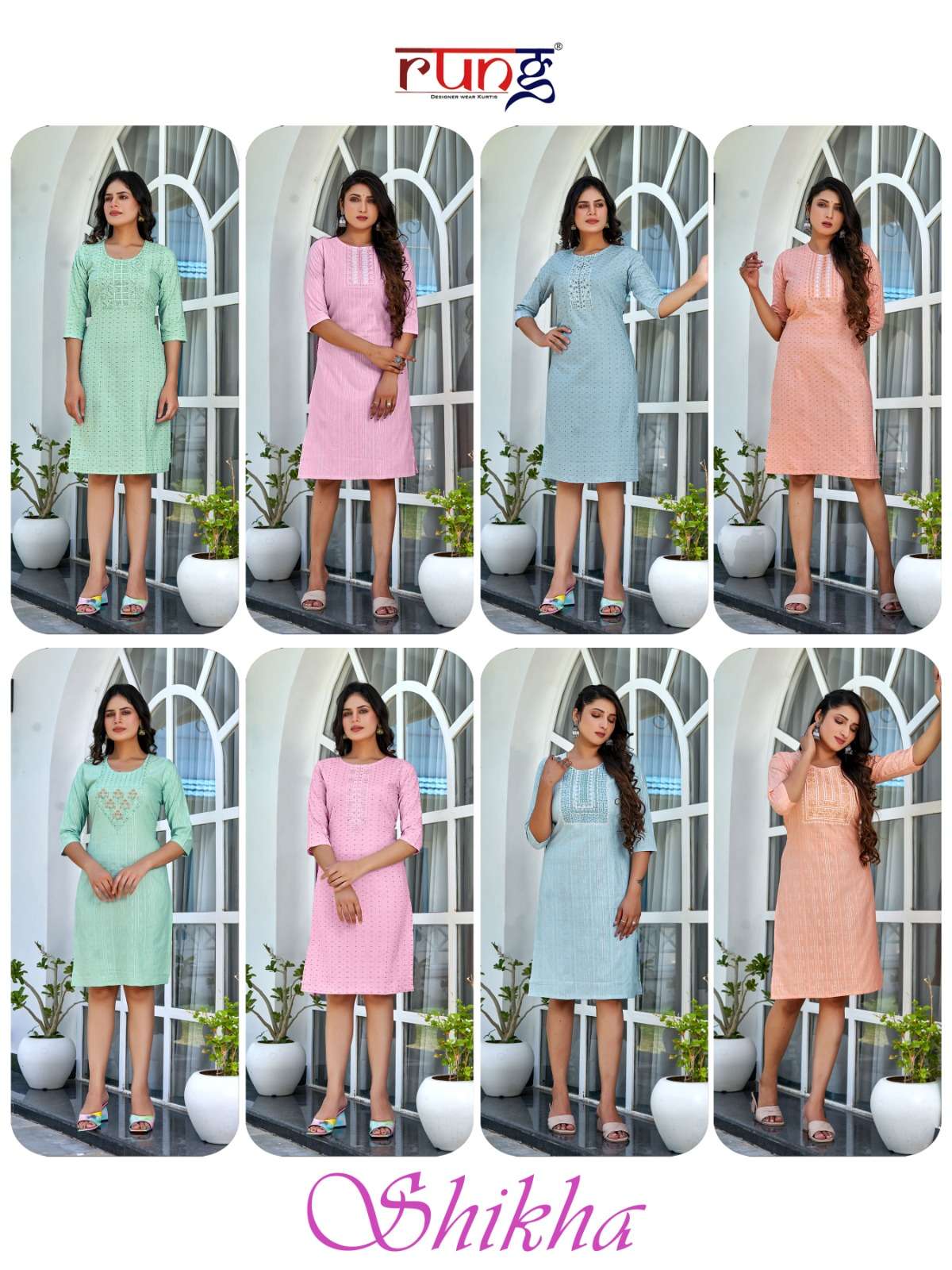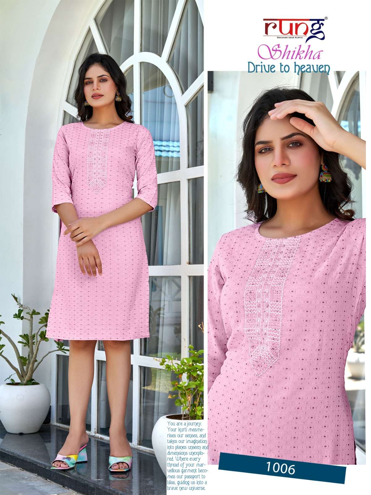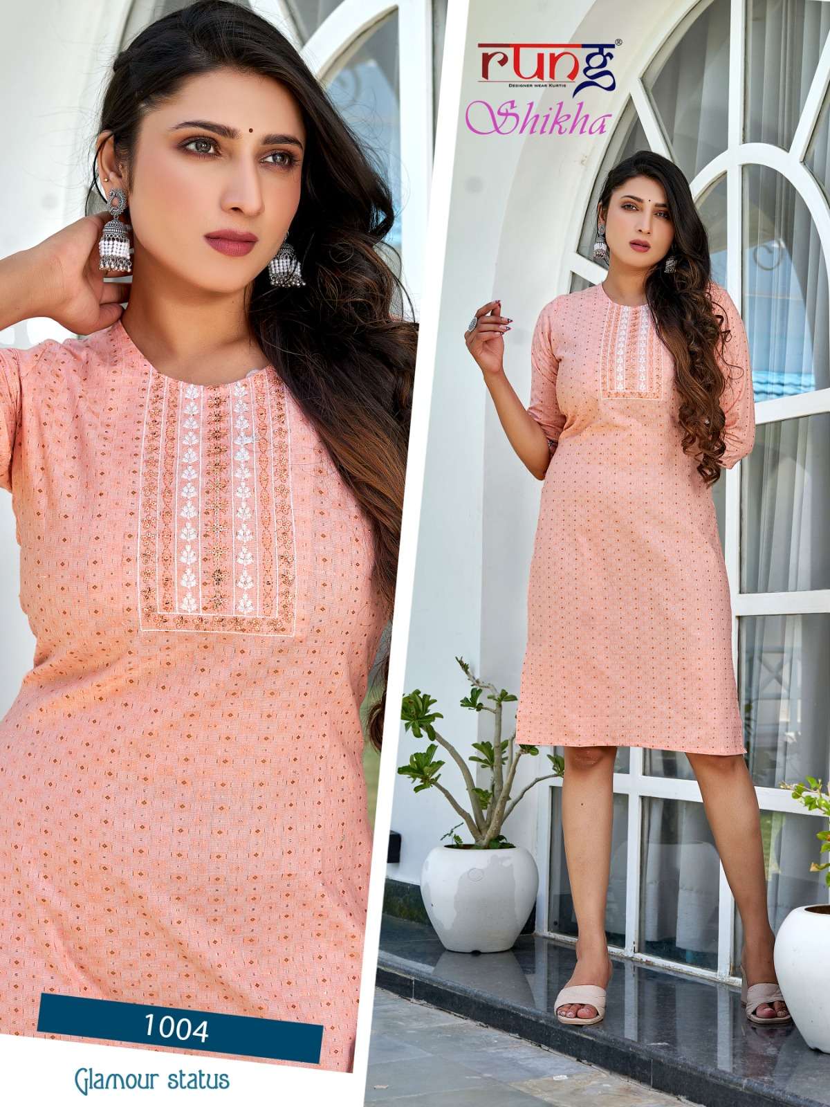 rung launch shikha fancy neck work cotton readymade kurtis online supplier